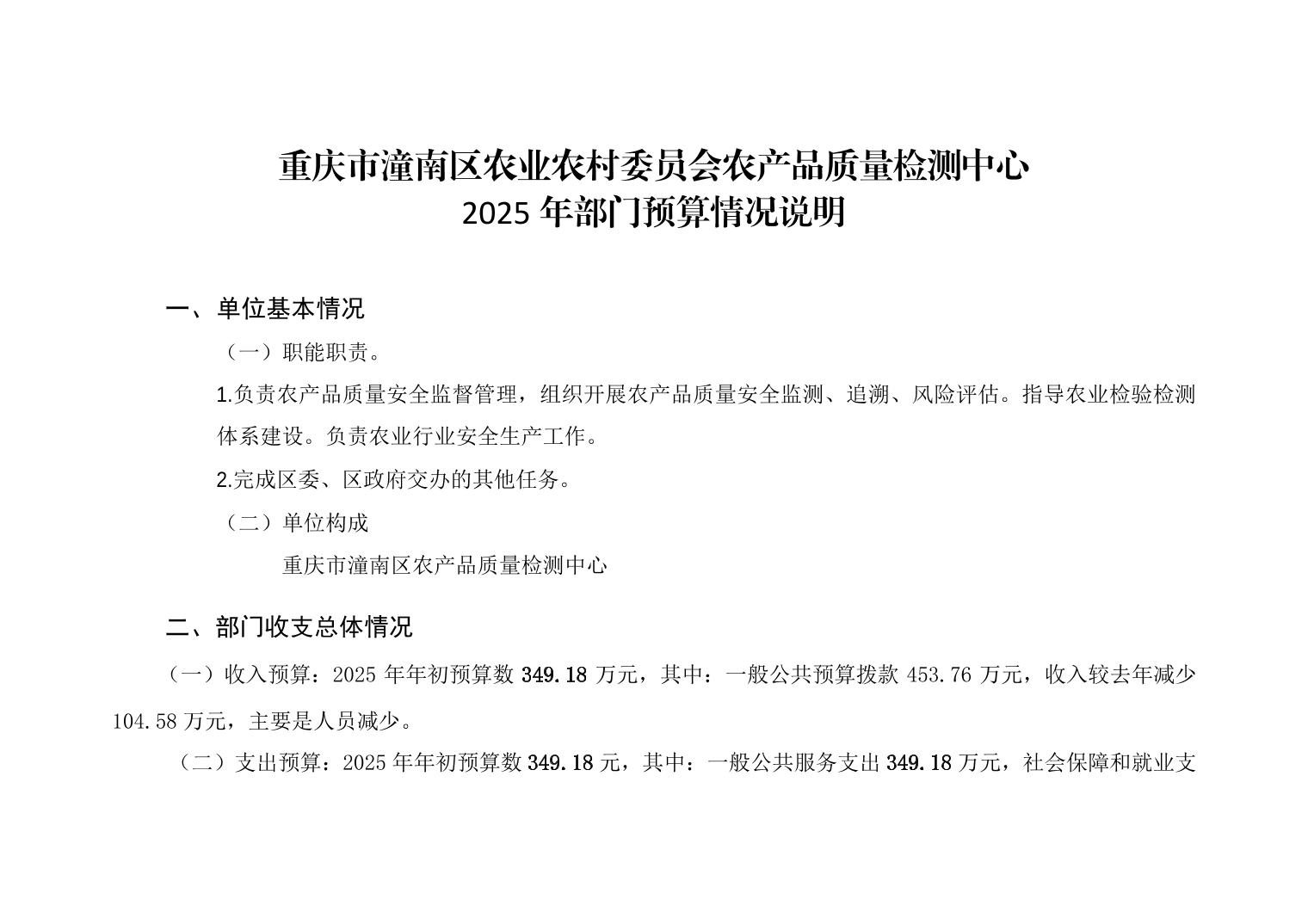 重庆市潼南区农业农村委员会农产品质量检测中心2025年部门预算情况说明