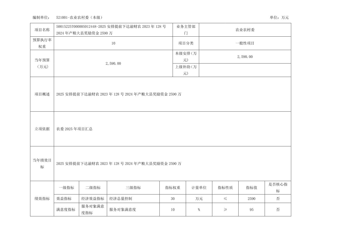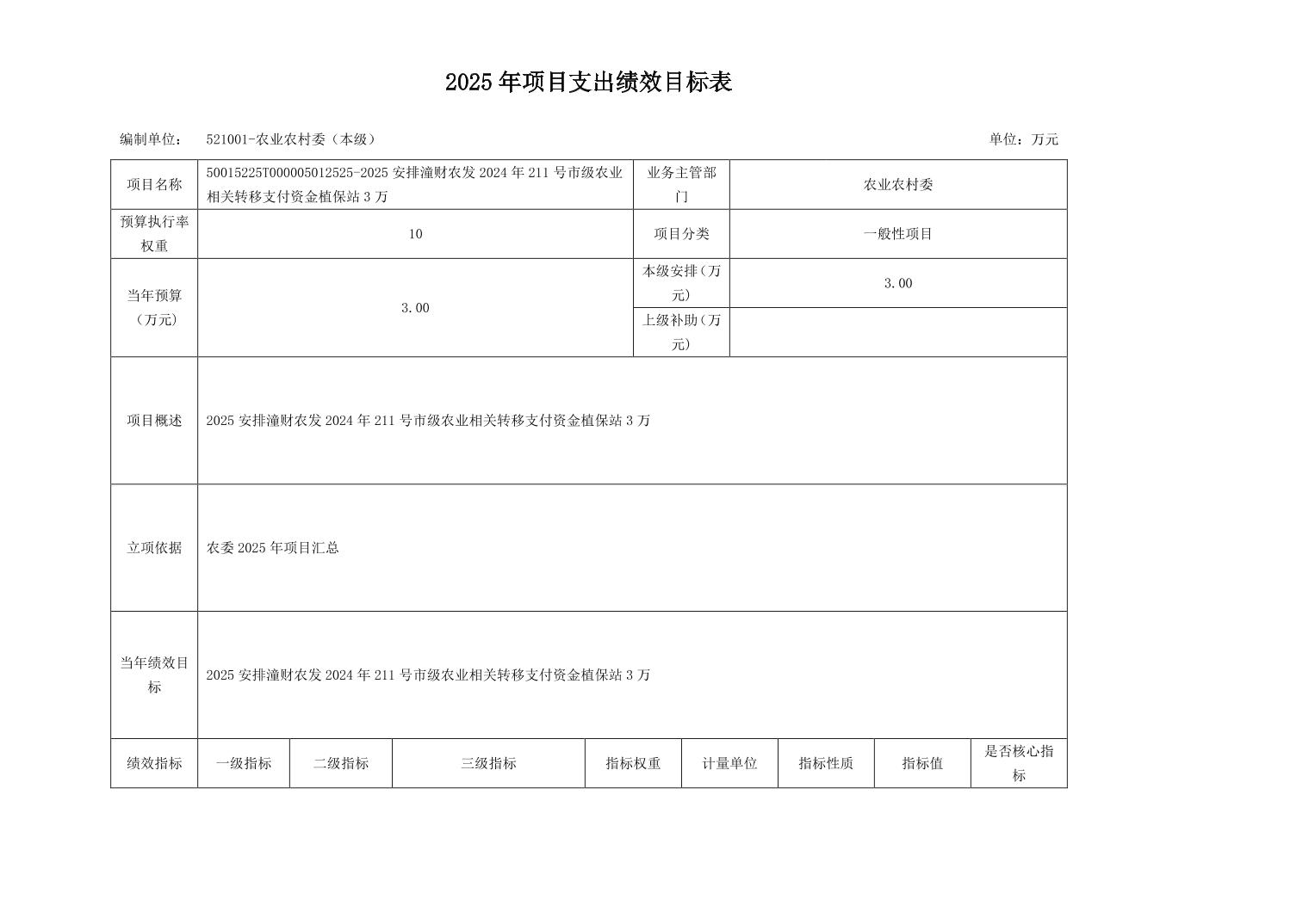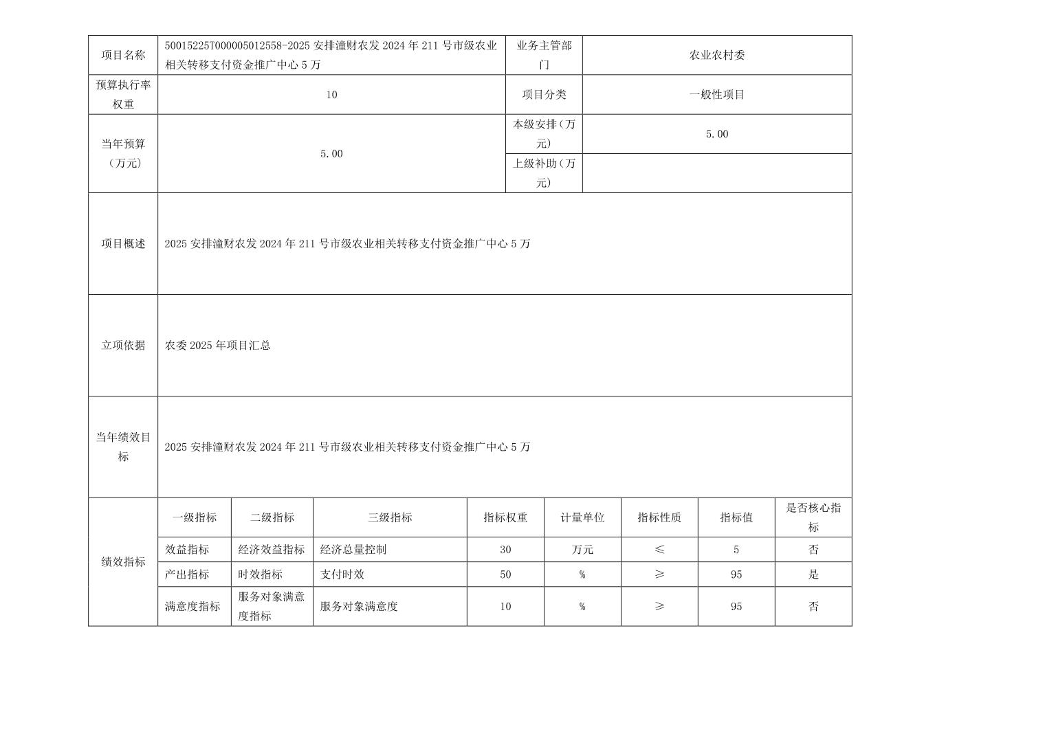 重庆市潼南区农业农村委员会农委本级2025年部门预算情况说明