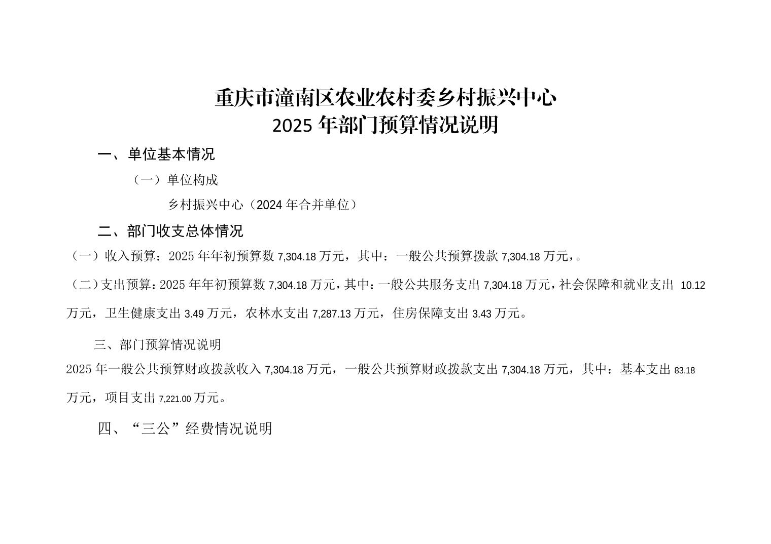 重庆市潼南区农业农村委员会乡村振兴中心2025年部门预算情况说明