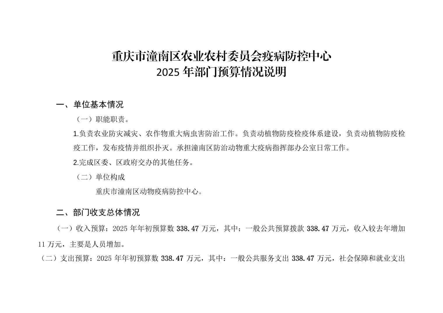 重庆市潼南区农业农村委员会疫病防控中心2025年部门预算情况说明