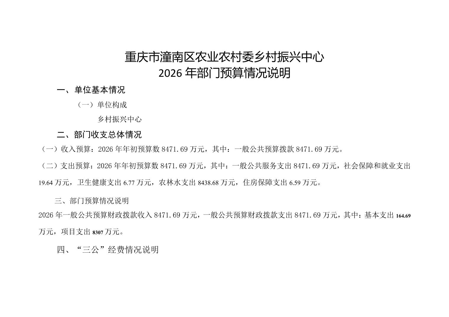 重庆市潼南区农业农村委员会乡村振兴中心2026年部门预算情况说明.xlsx
