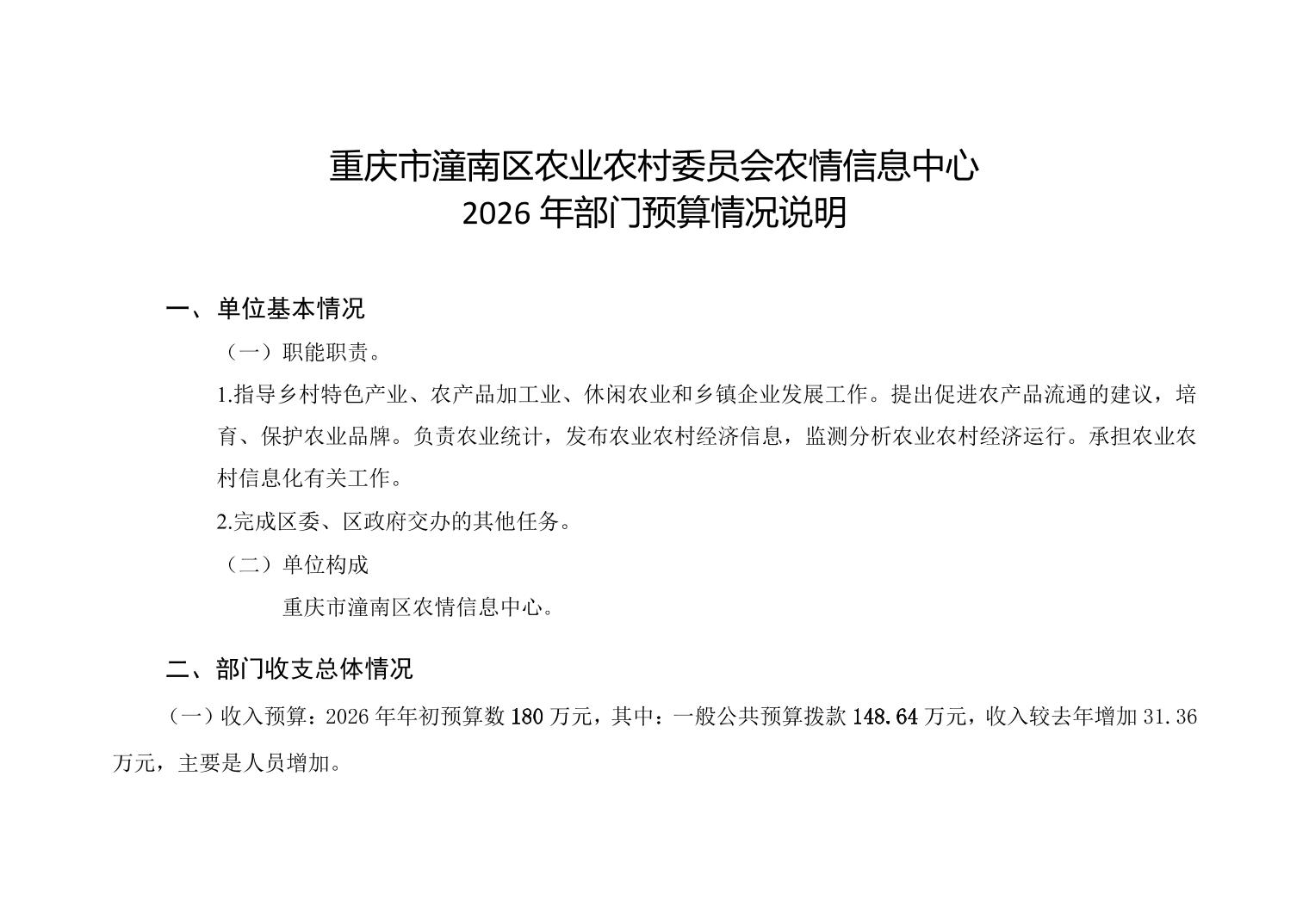 重庆市潼南区农业农村委员会农情信息中心2026年部门预算情况说明.xlsx