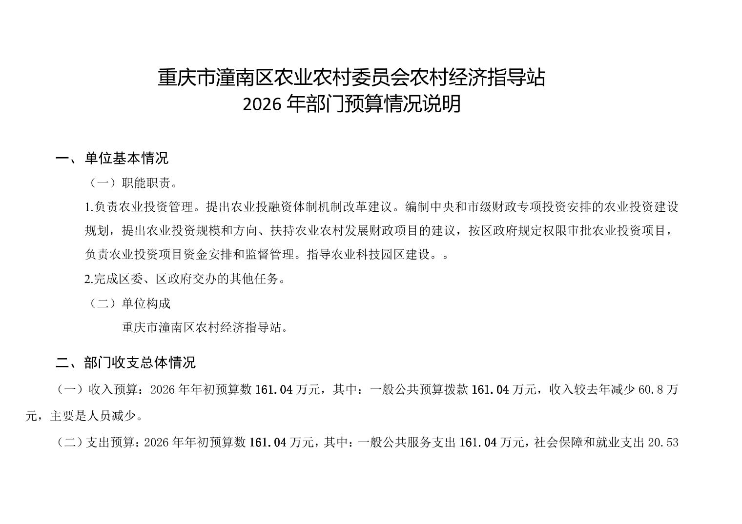 重庆市潼南区农业农村委员会农村经济指导站2026年部门预算情况说明.xlsx