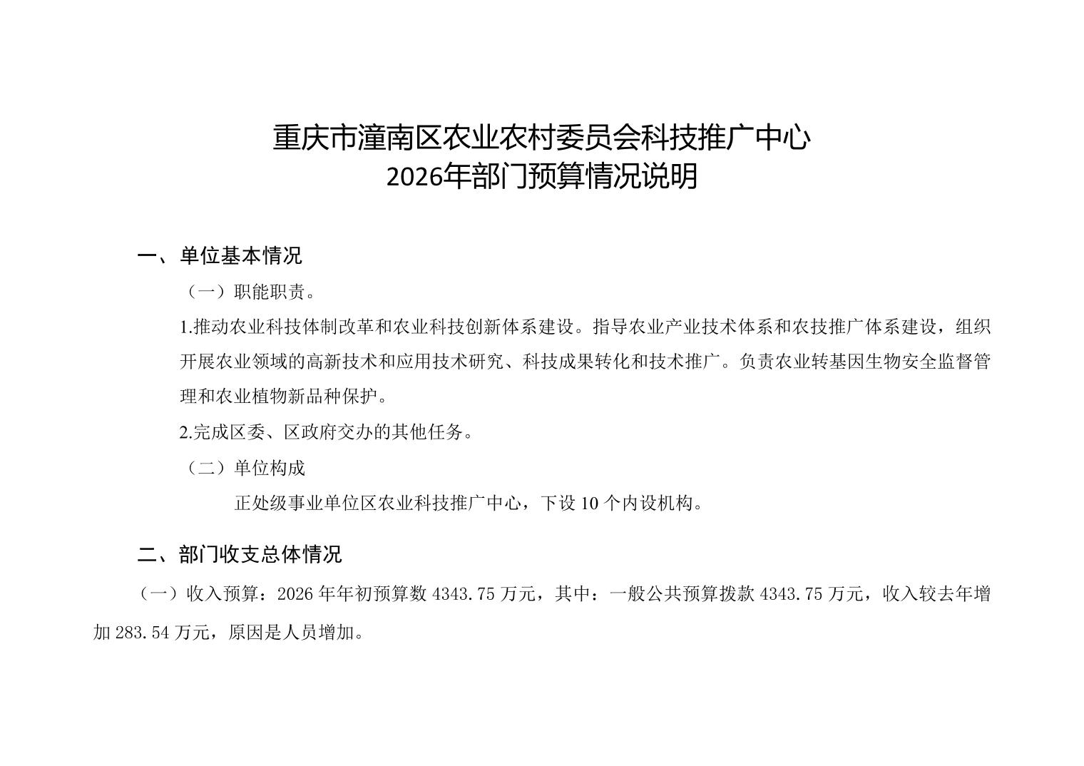 附件:重庆市潼南区农业农村委员会科技推广中心2026年部门预算情况说明附件