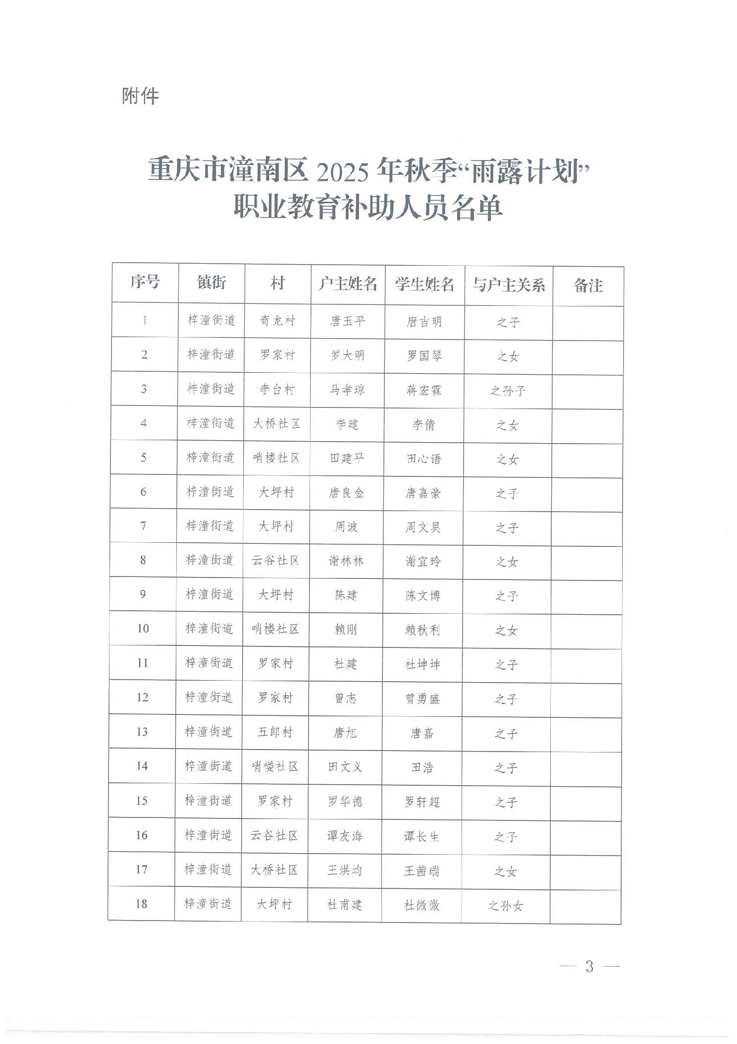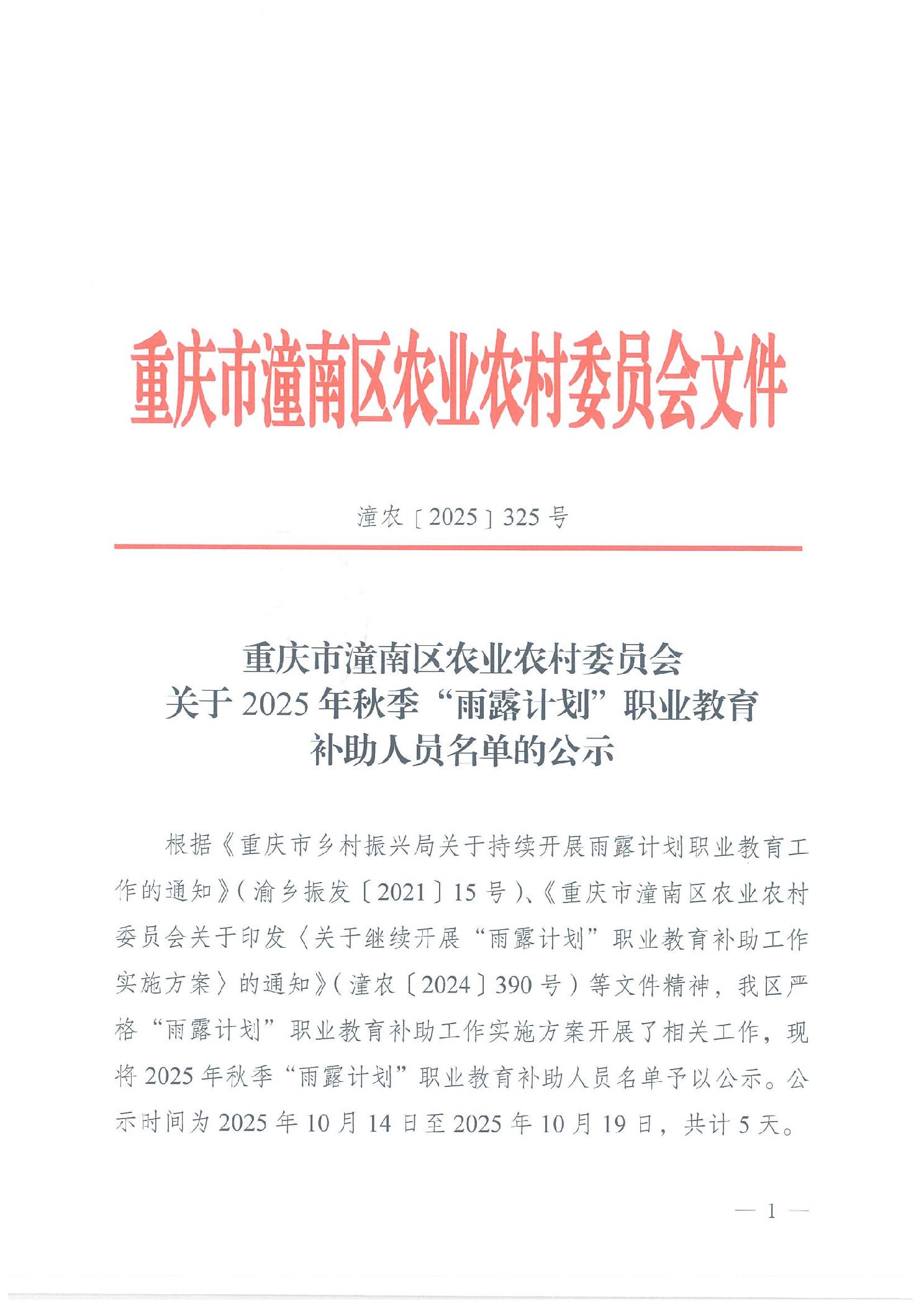 潼农〔2025〕325号关于2025年秋季“雨露计划”职业教育补助人员名单的公示.pdf