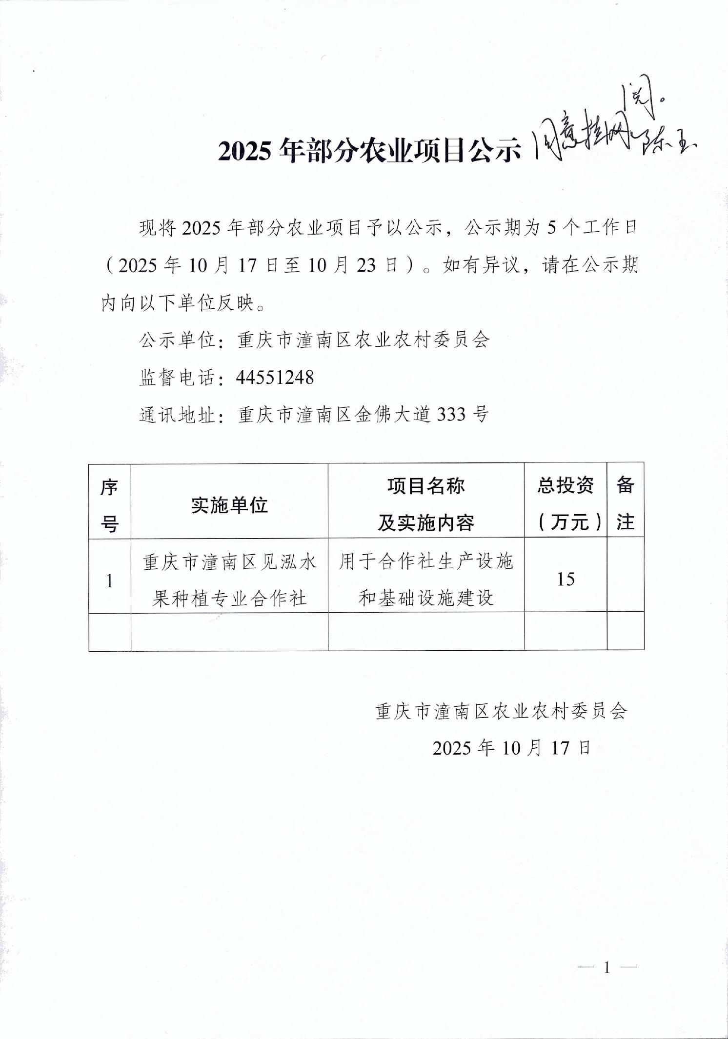 2025年部分农业项目公示