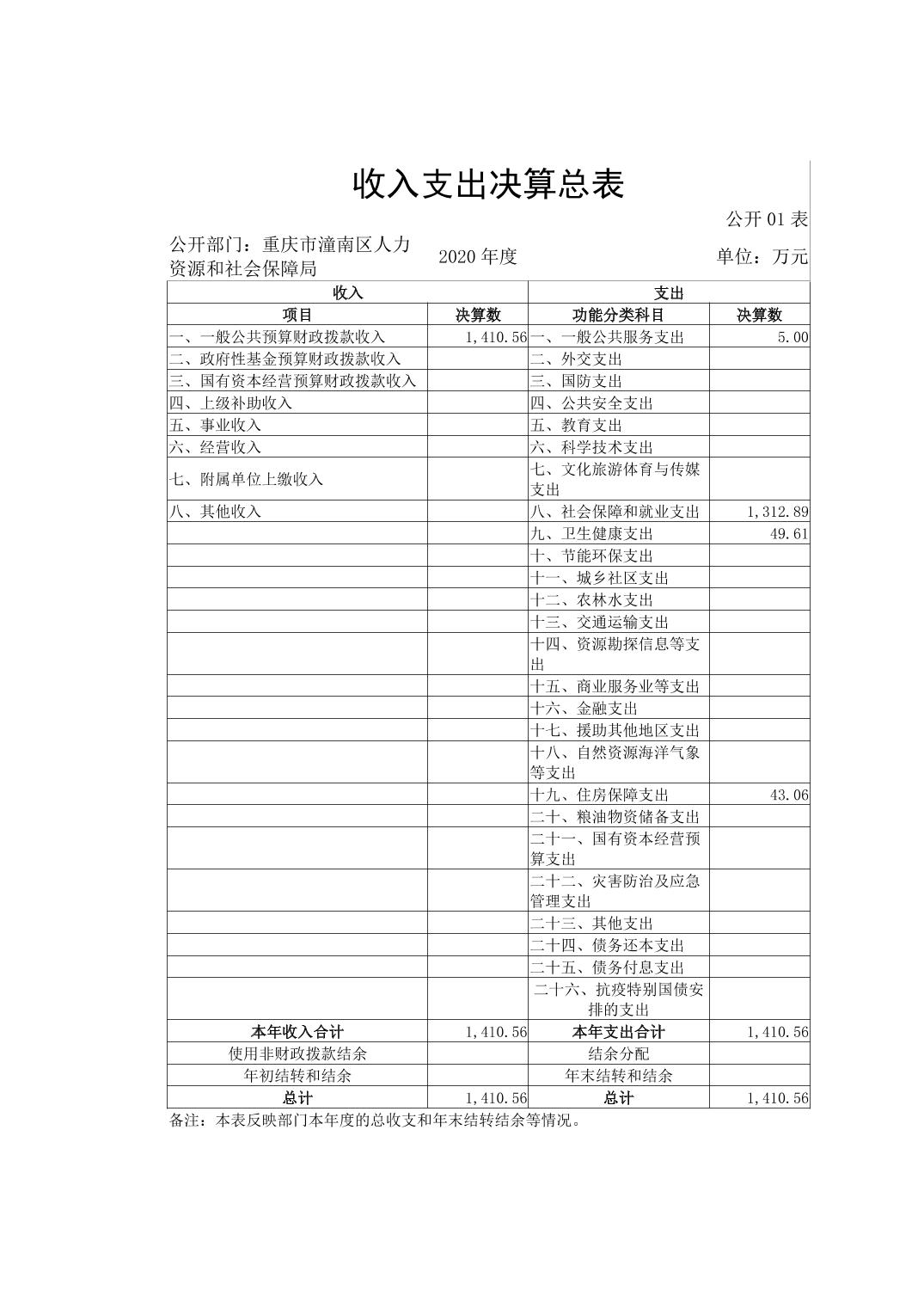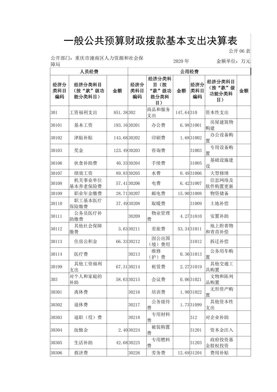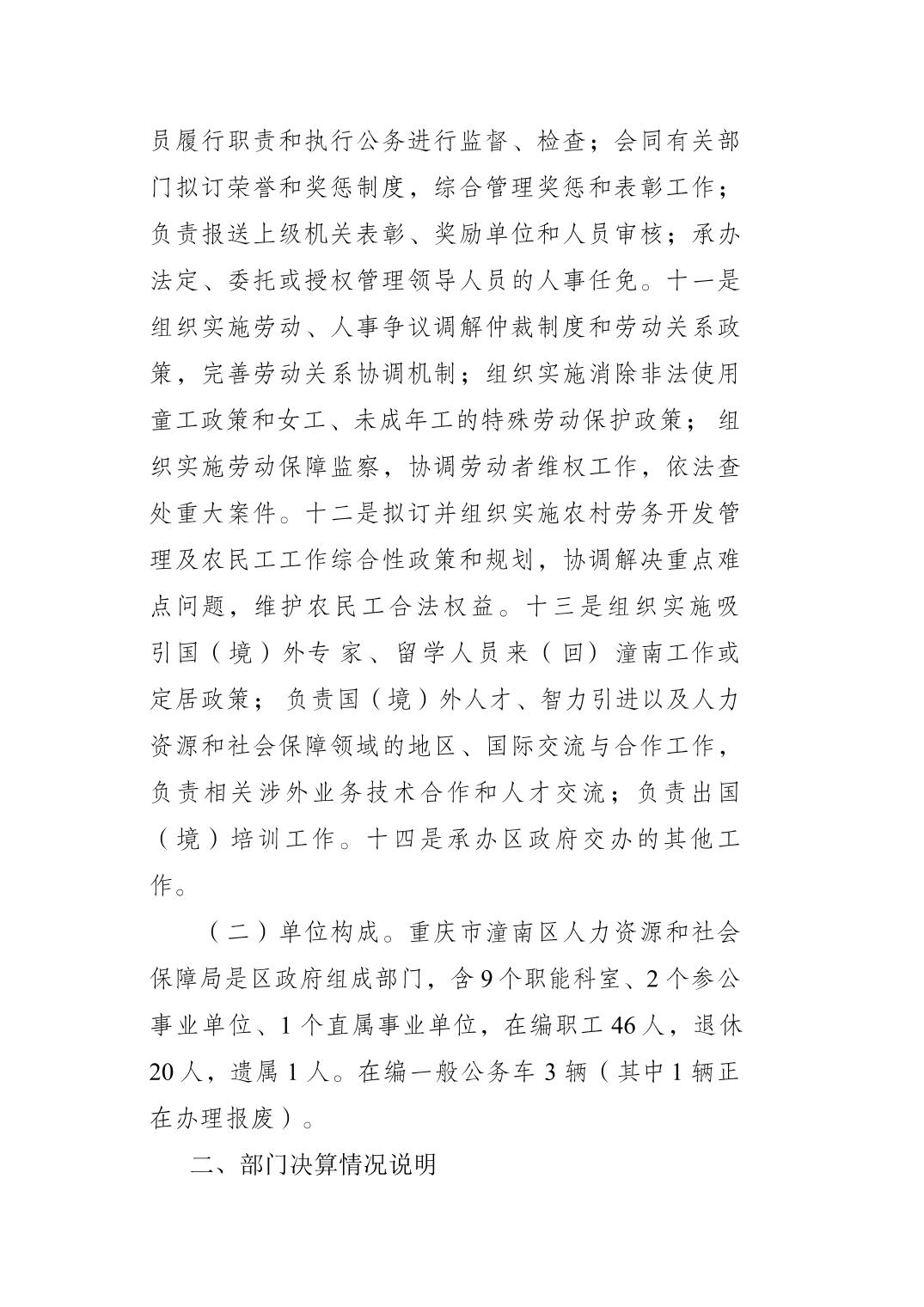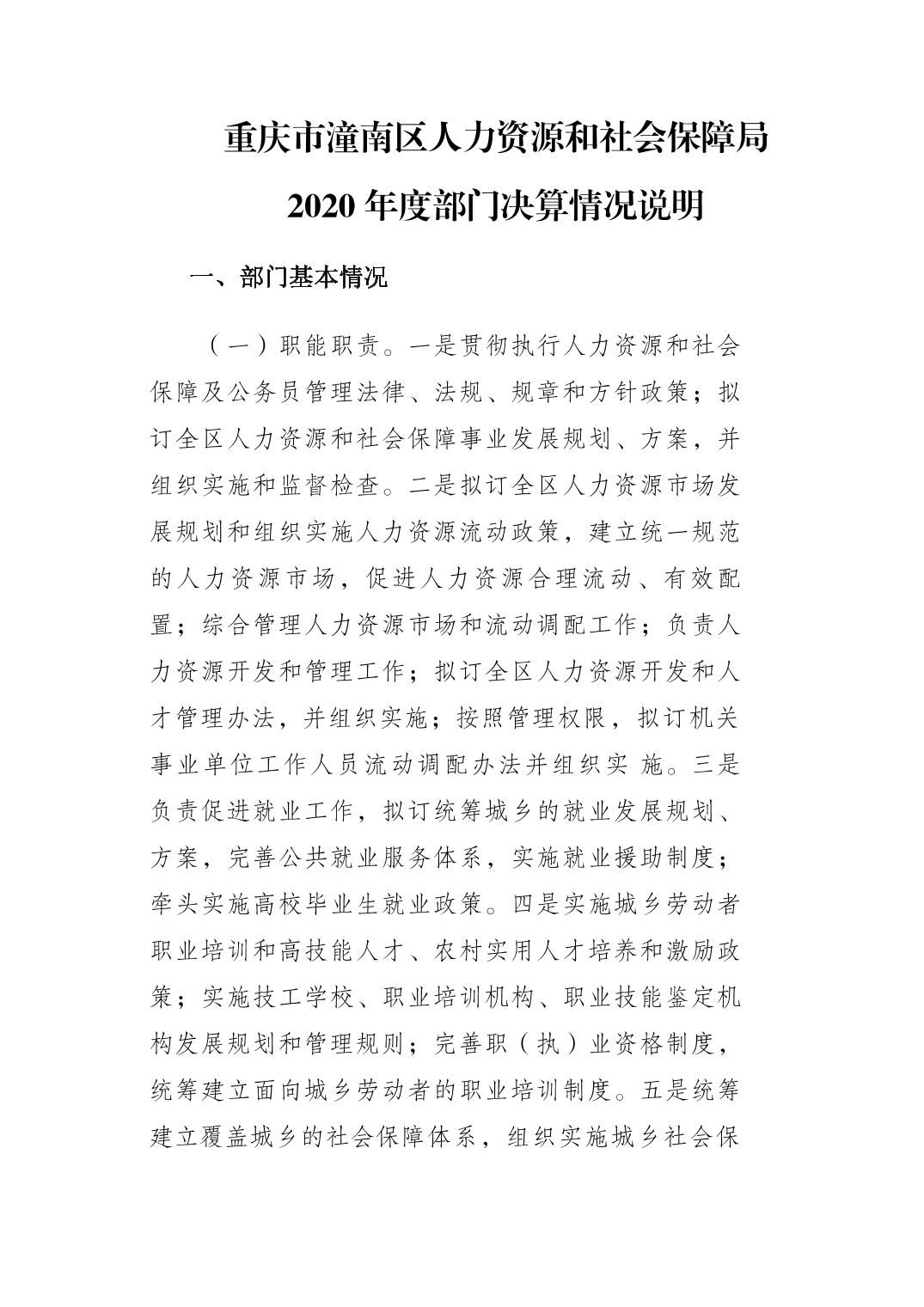 重庆市潼南区人力资源和社会保障局2020年部门决算公开