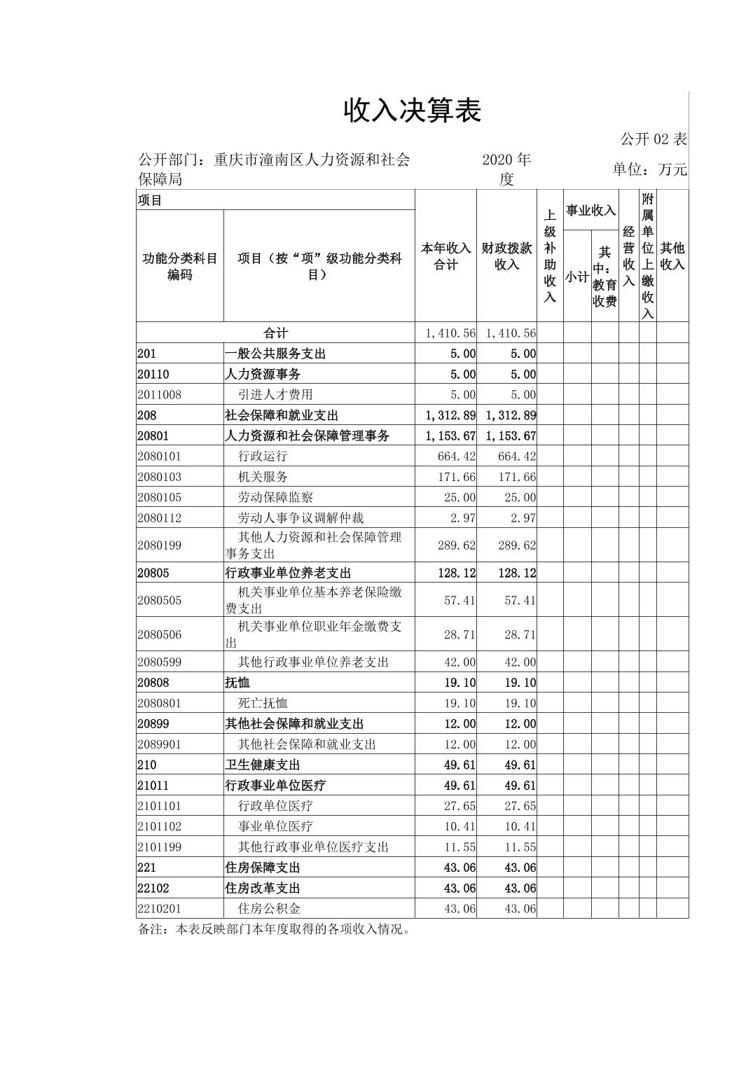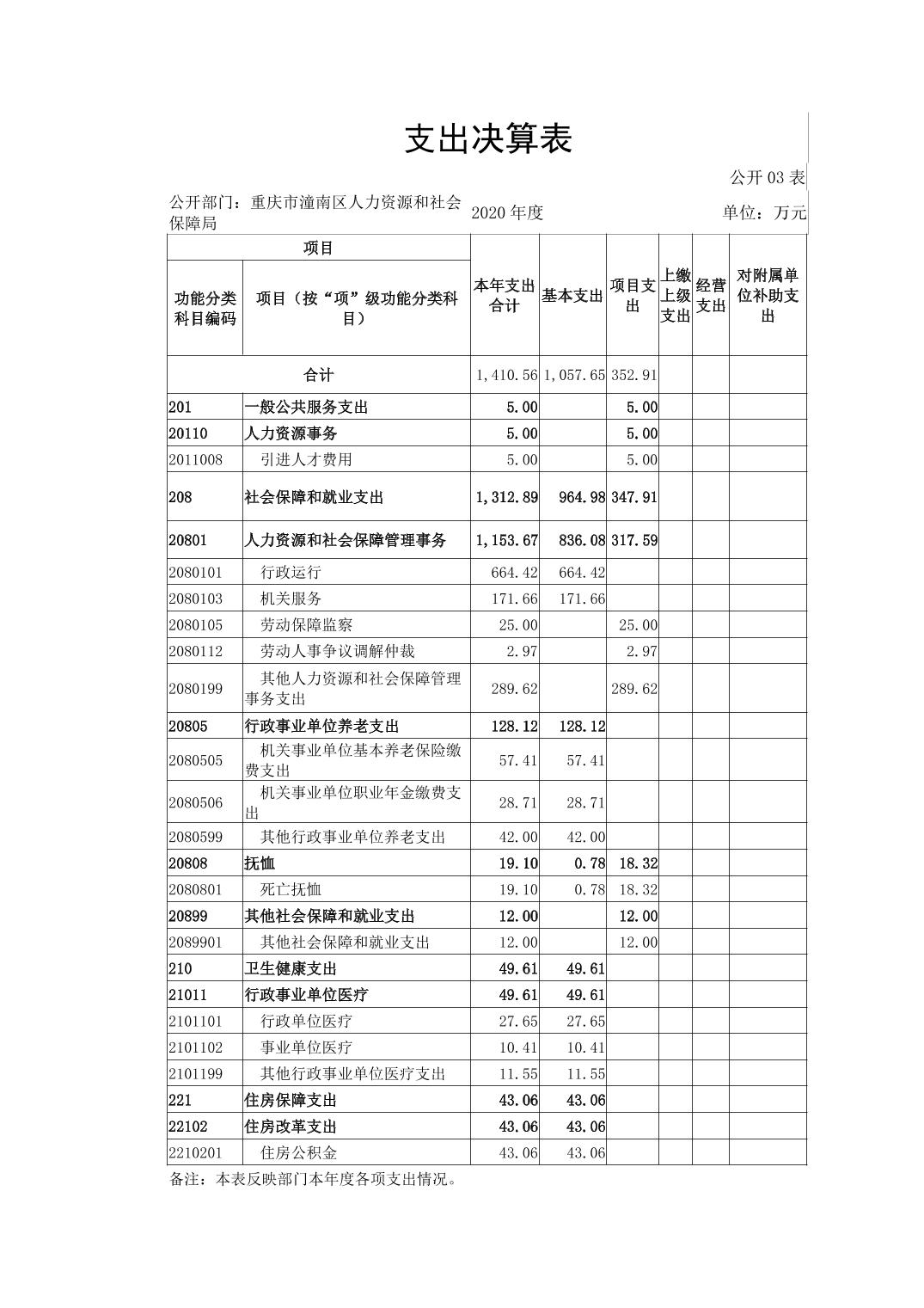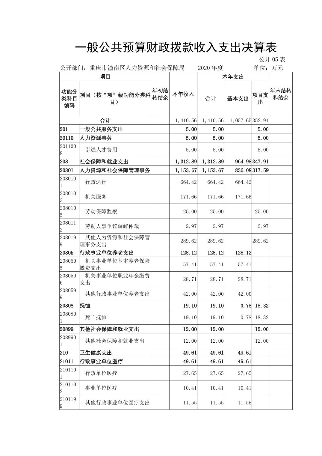 重庆市潼南区人力资源和社会保障局2020年部门决算公开