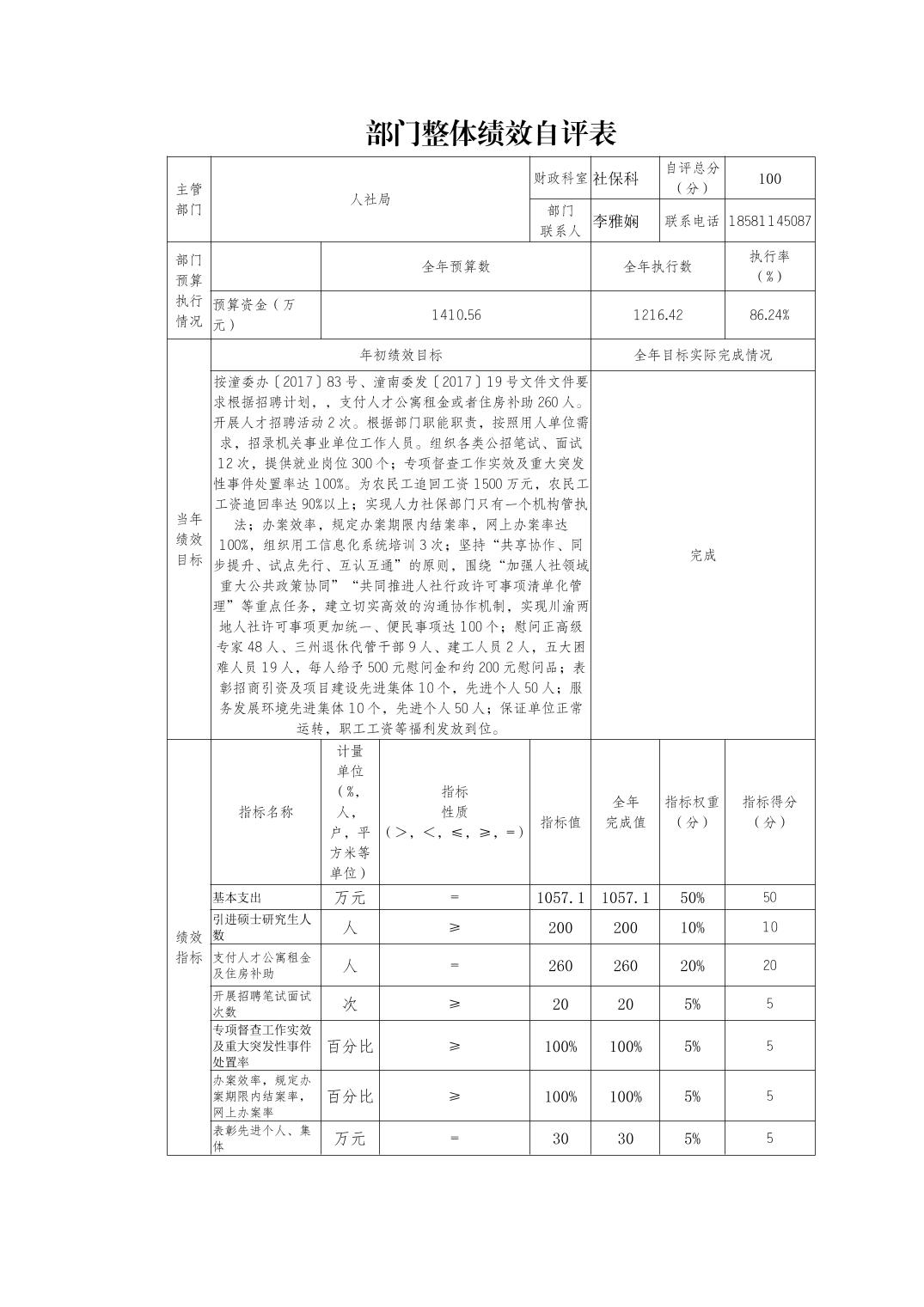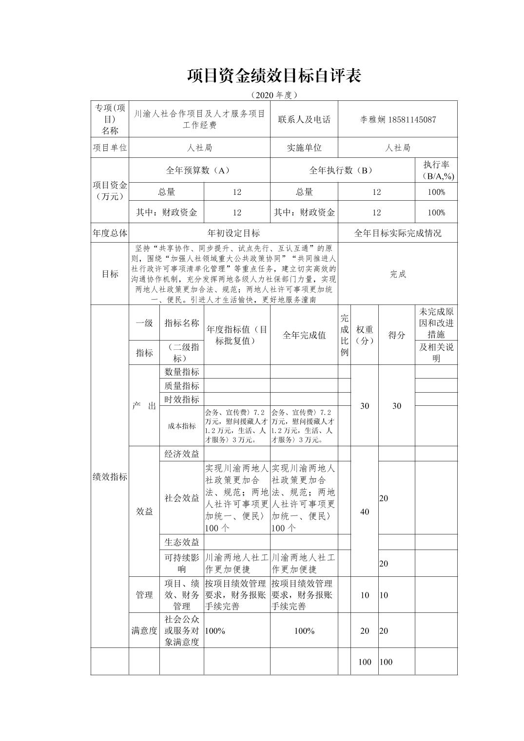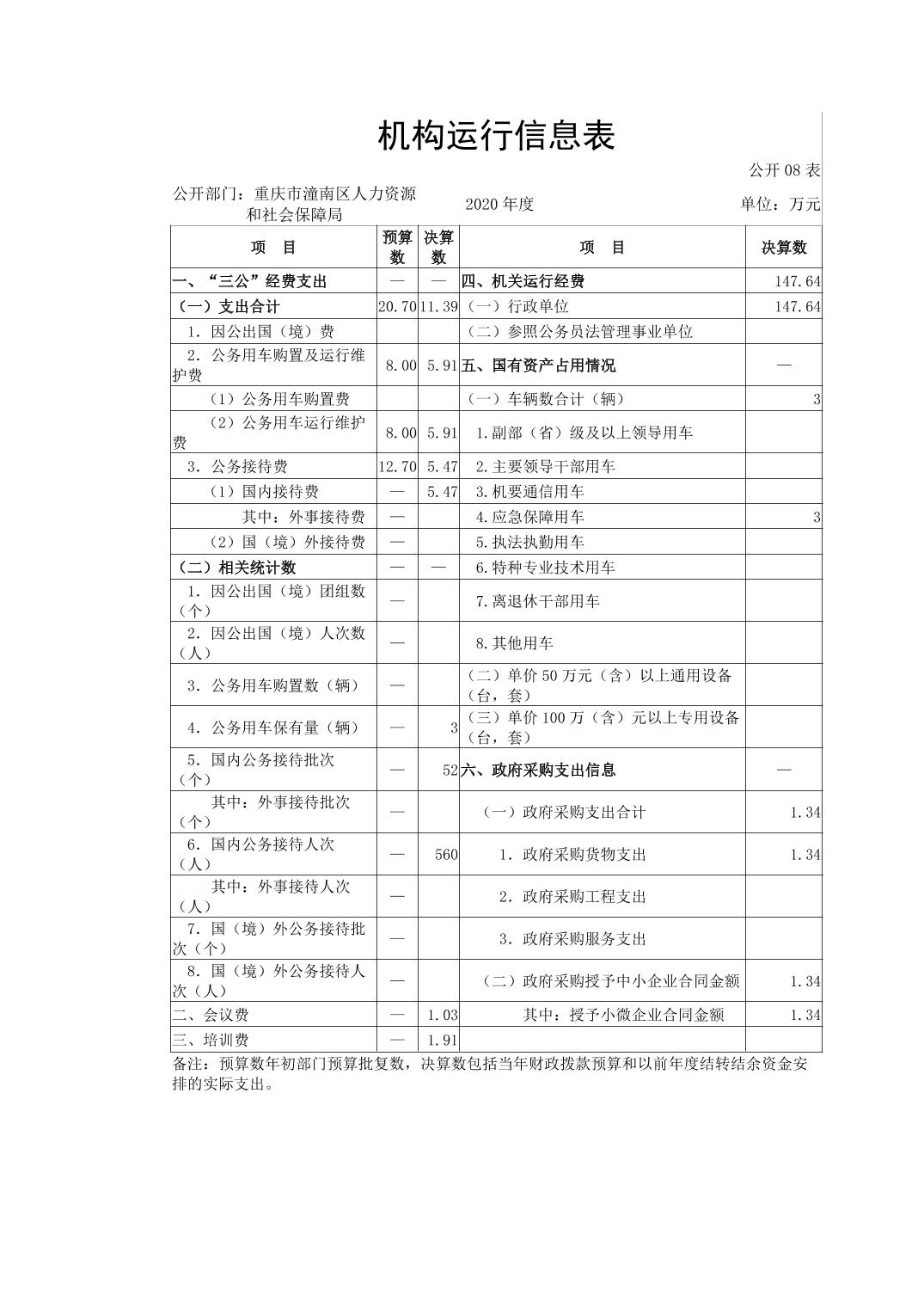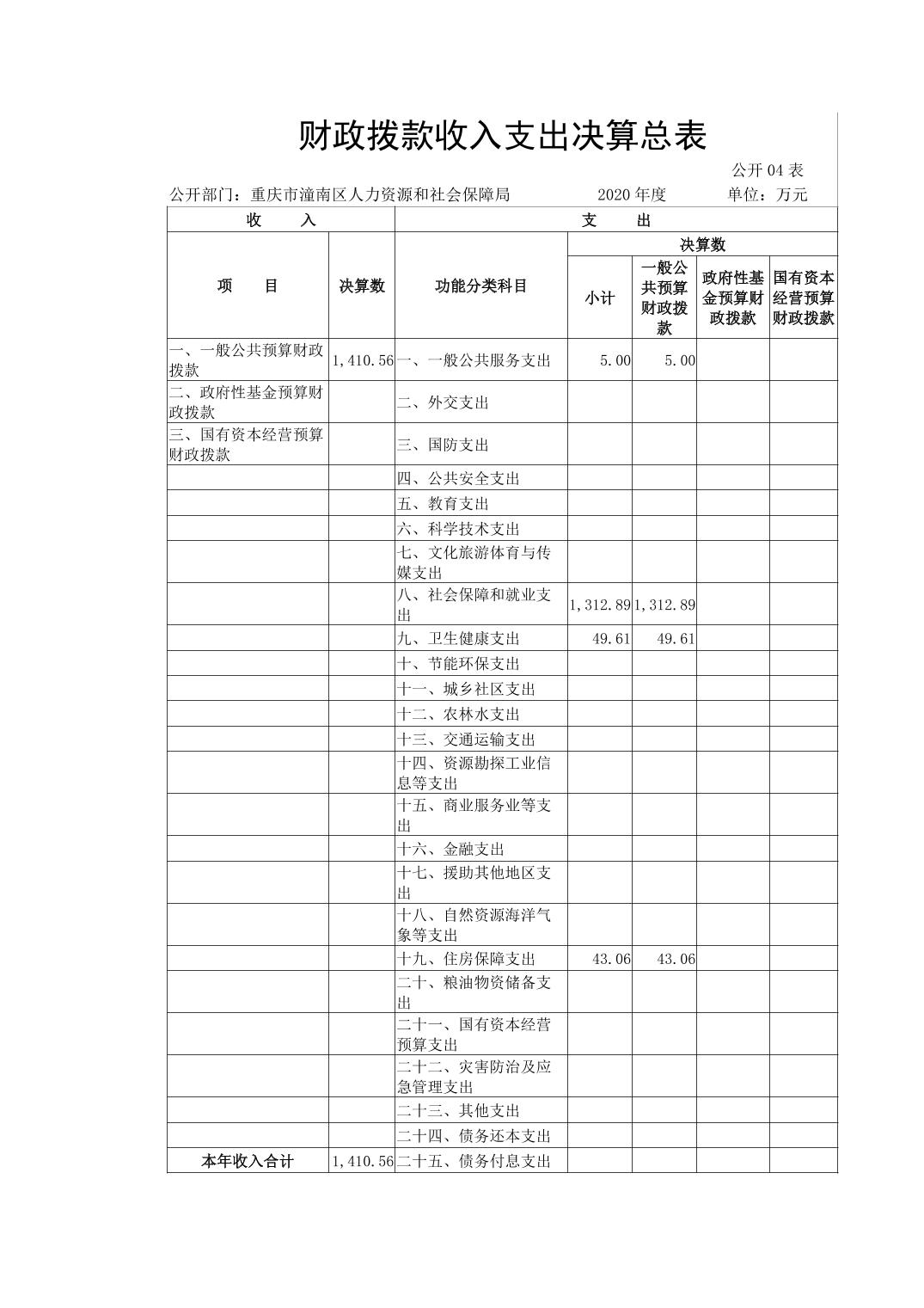 重庆市潼南区人力资源和社会保障局2020年部门决算公开