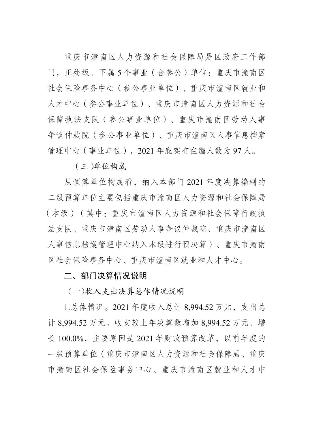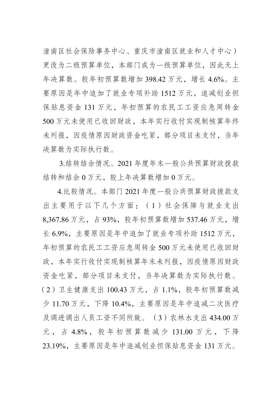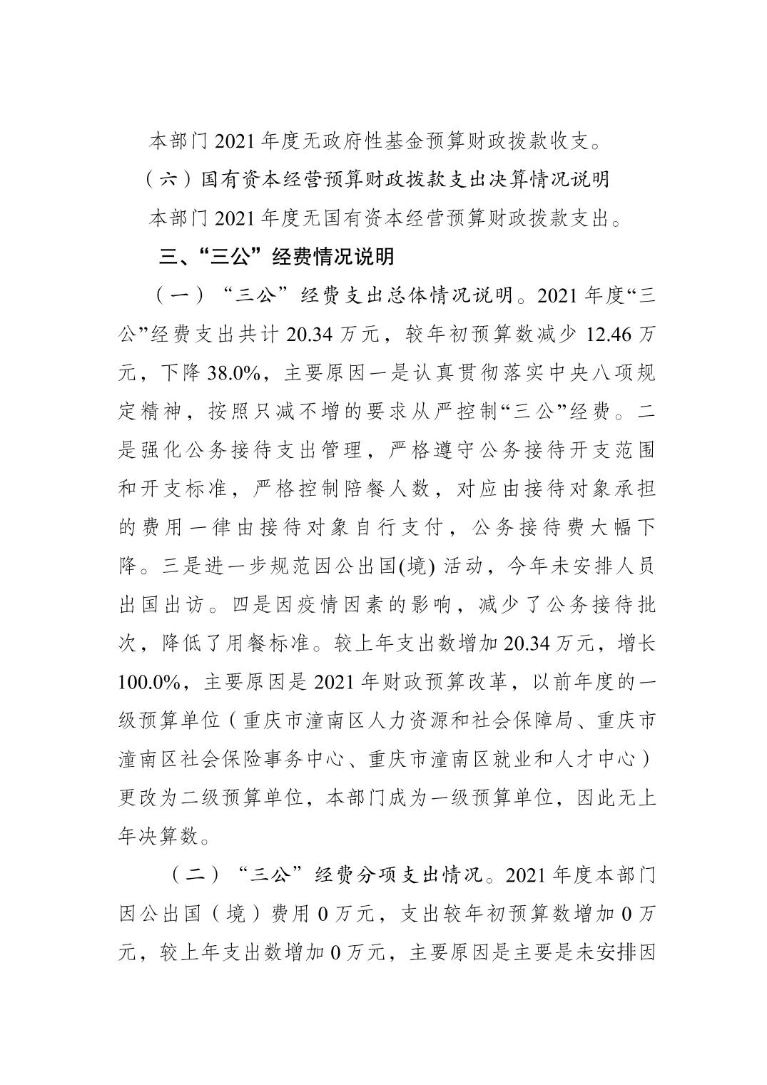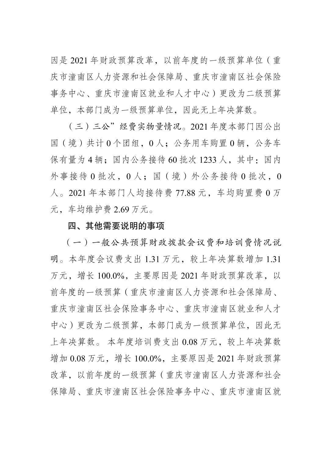 重庆市潼南区人力资源和社会保障局2021年度部门决算公开