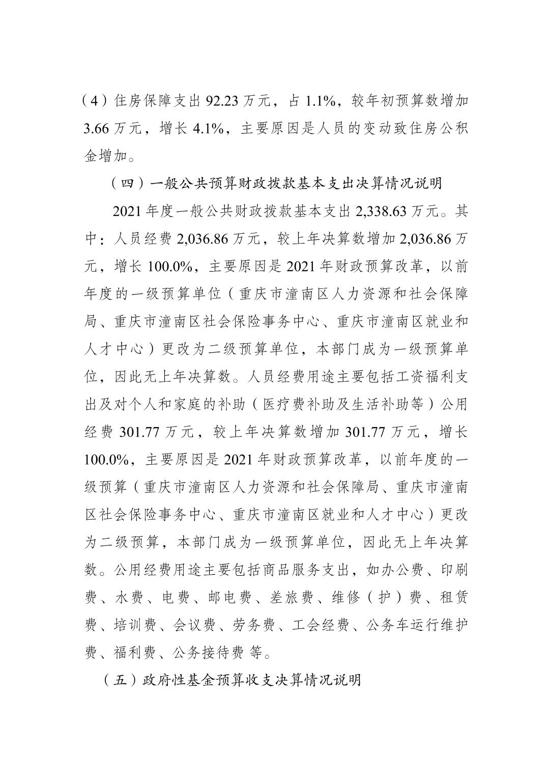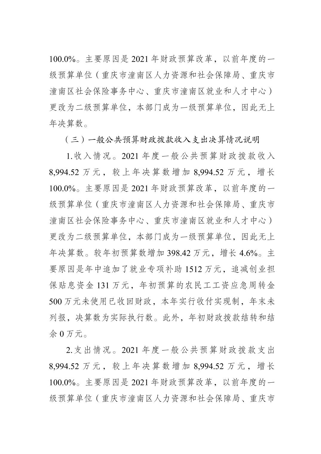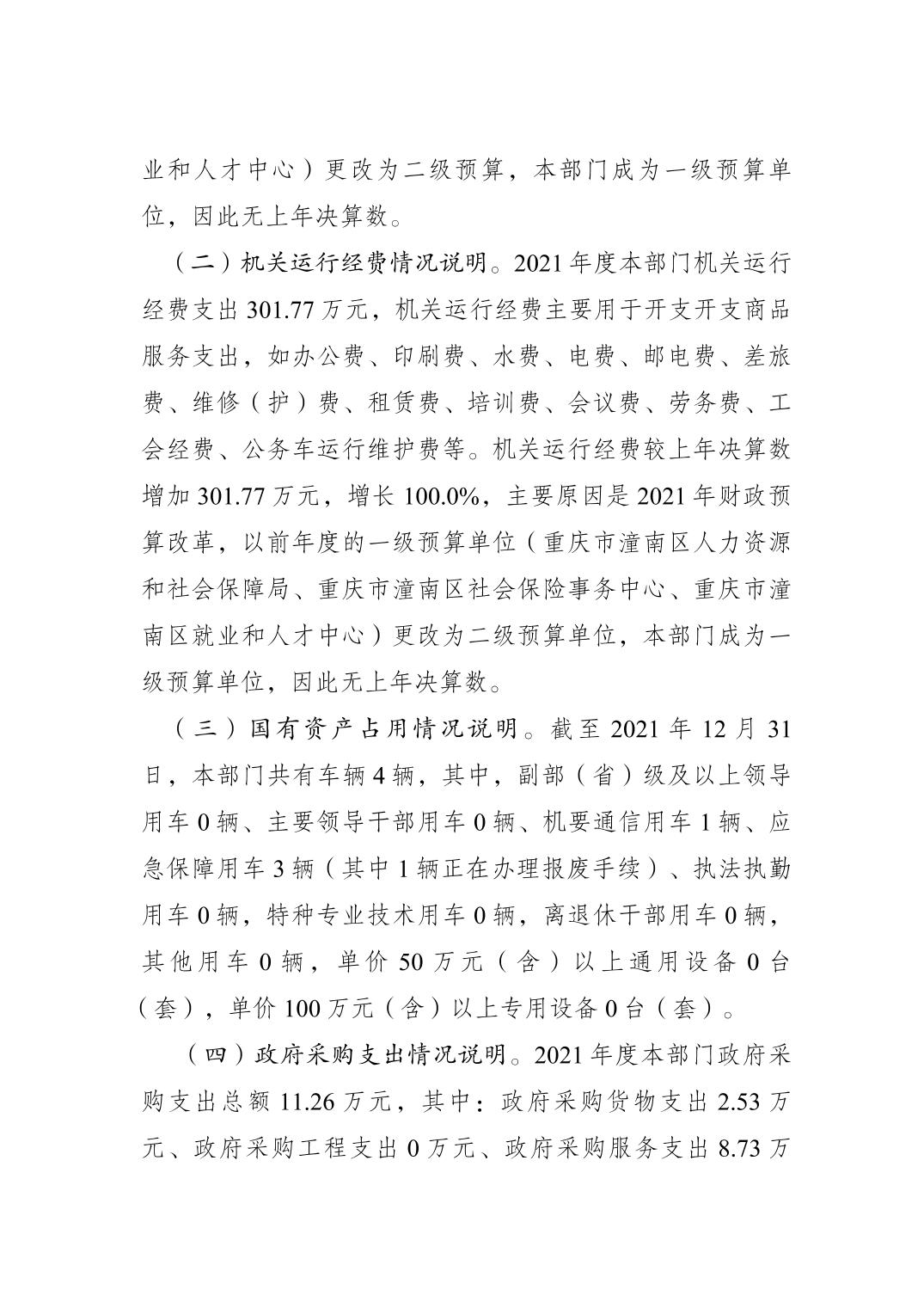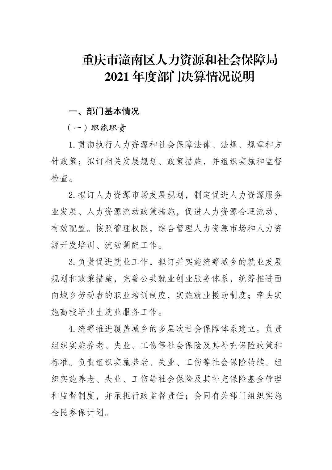 重庆市潼南区人力资源和社会保障局2021年度部门决算公开
