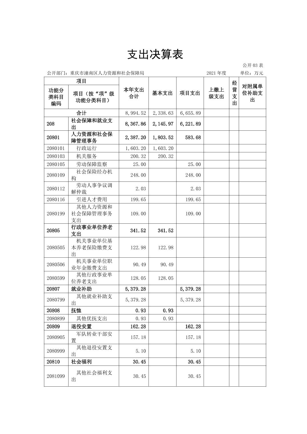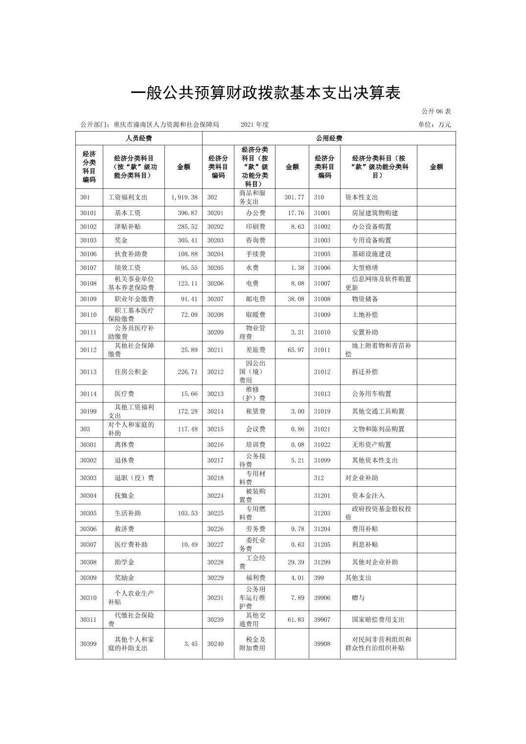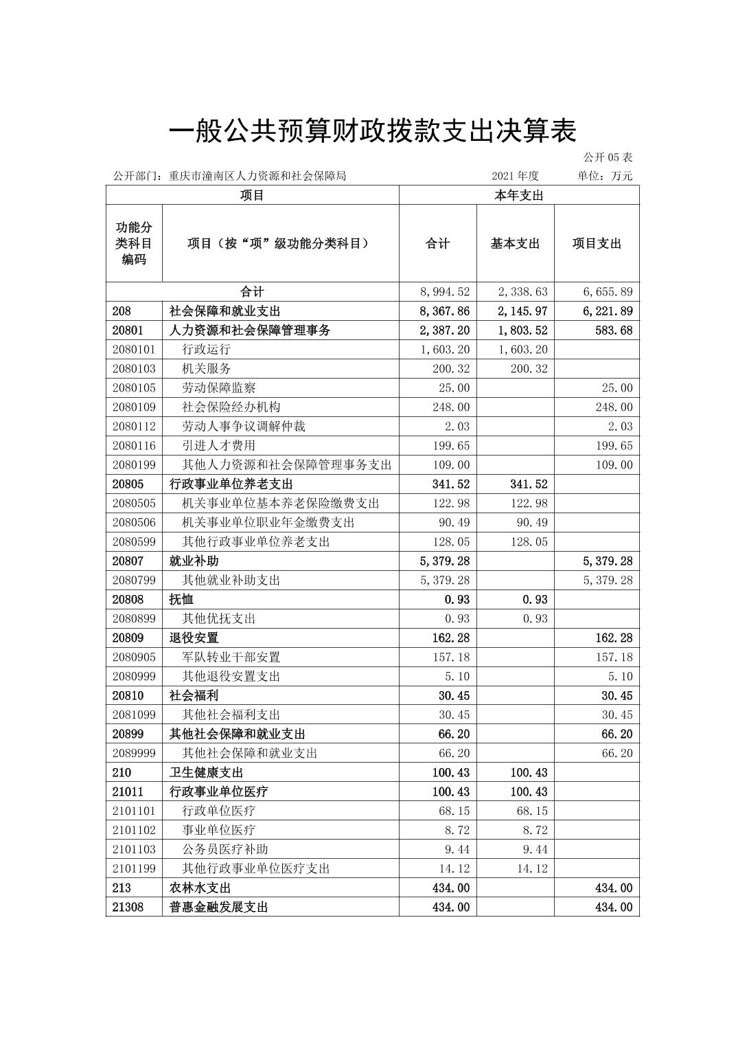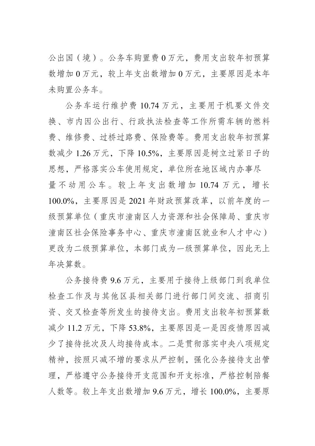 重庆市潼南区人力资源和社会保障局2021年度部门决算公开