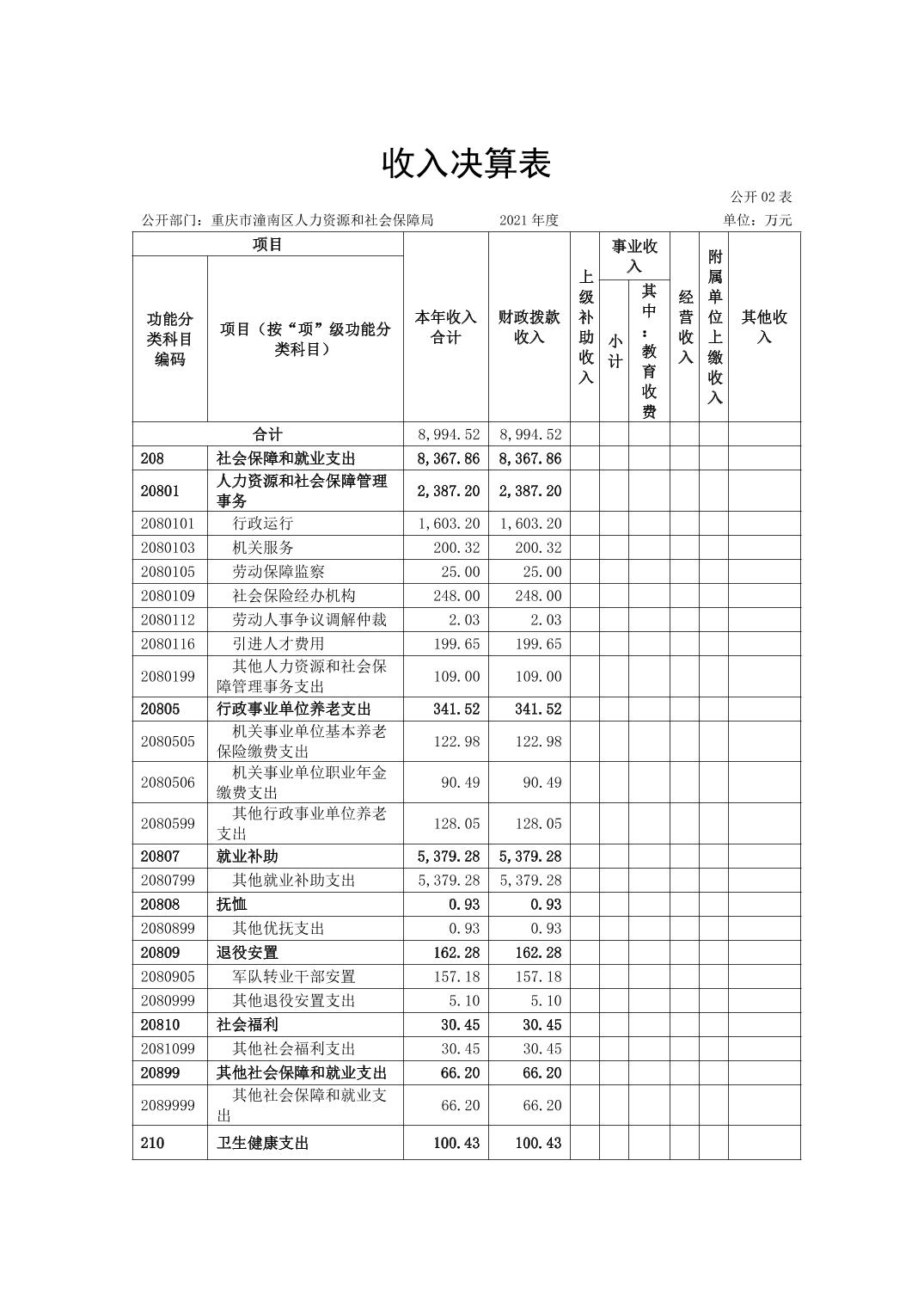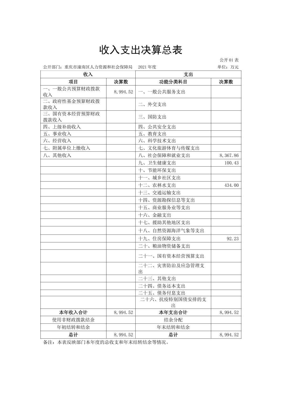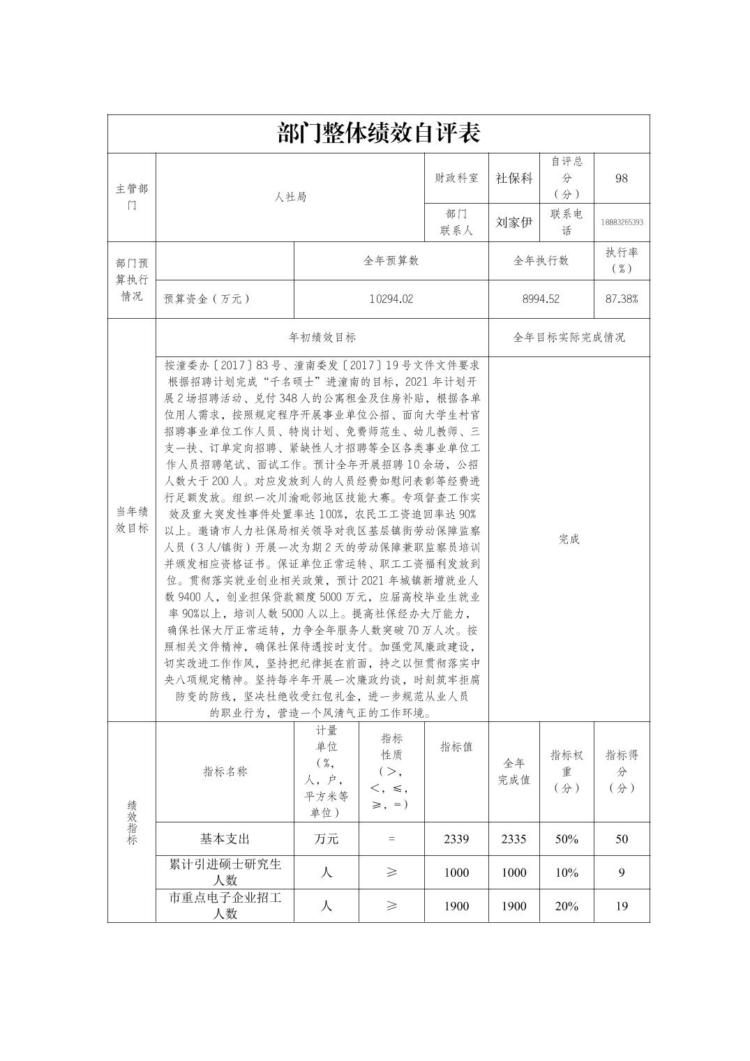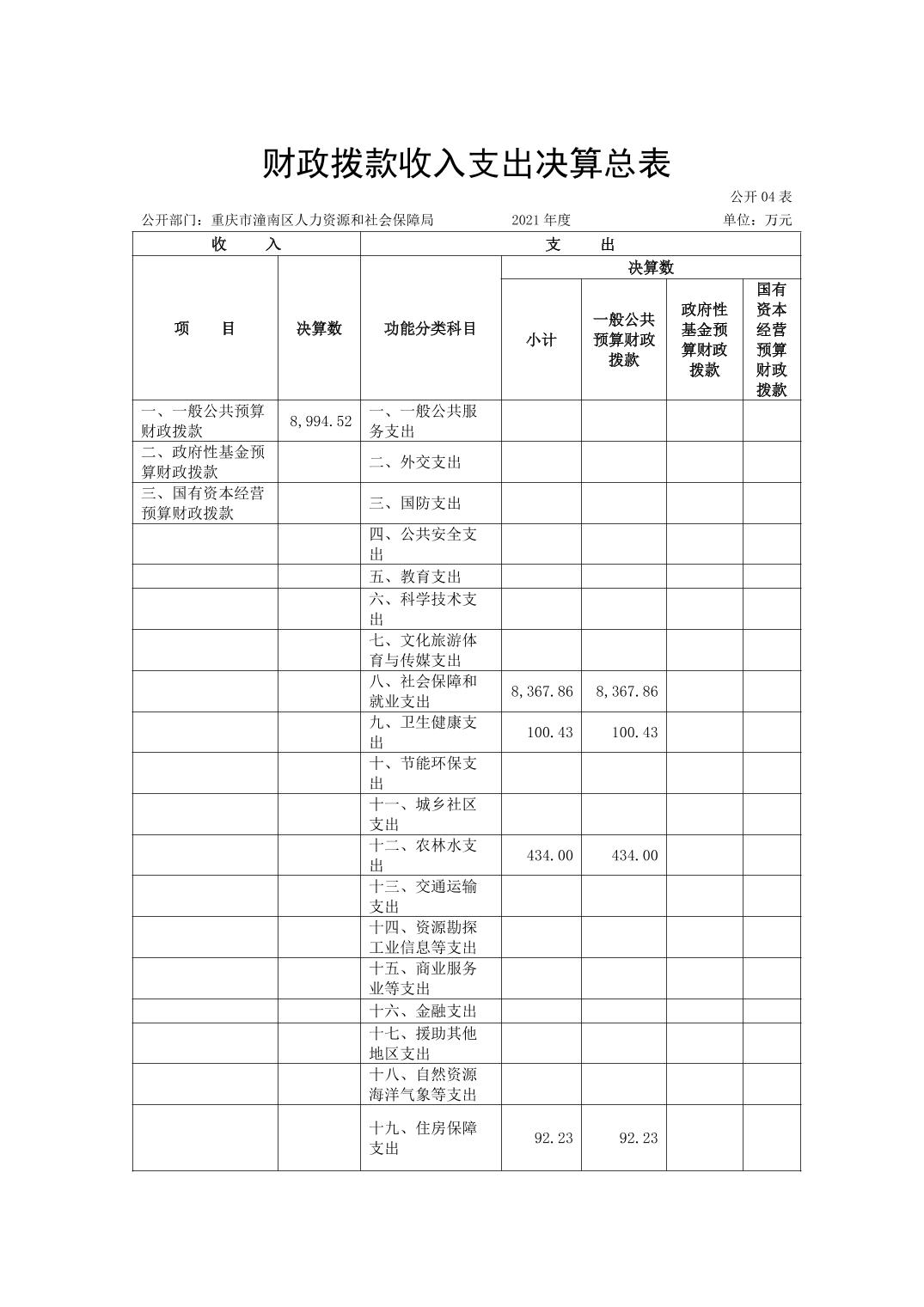 重庆市潼南区人力资源和社会保障局2021年度部门决算公开
