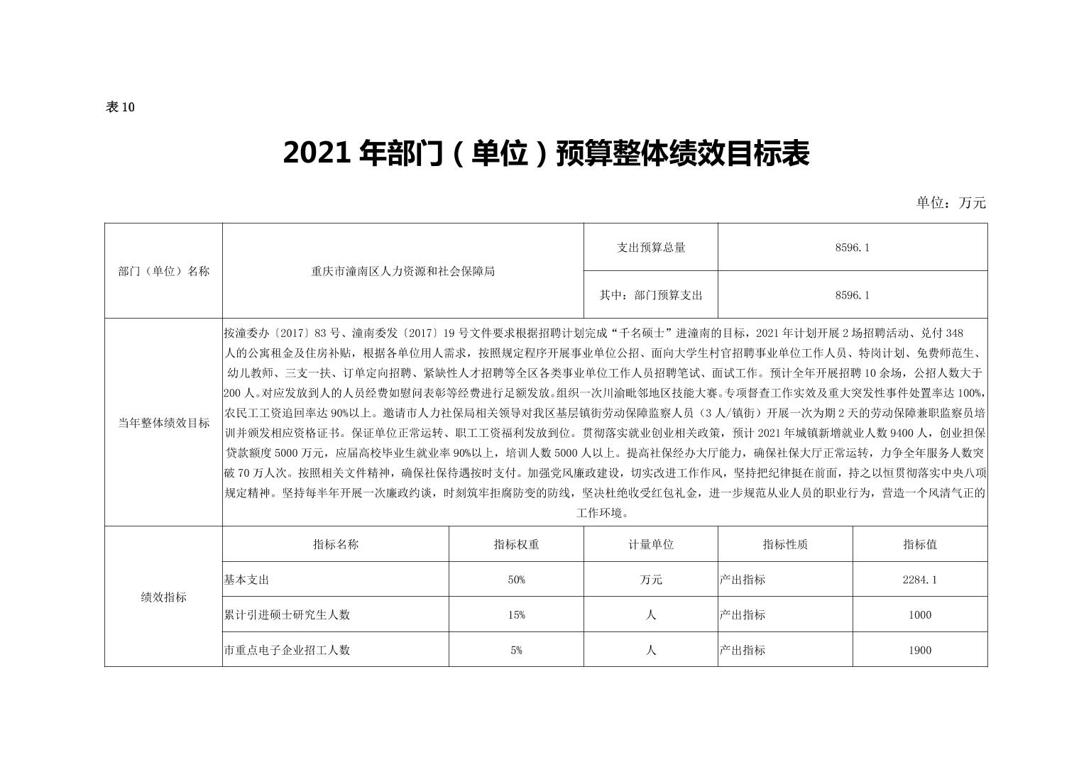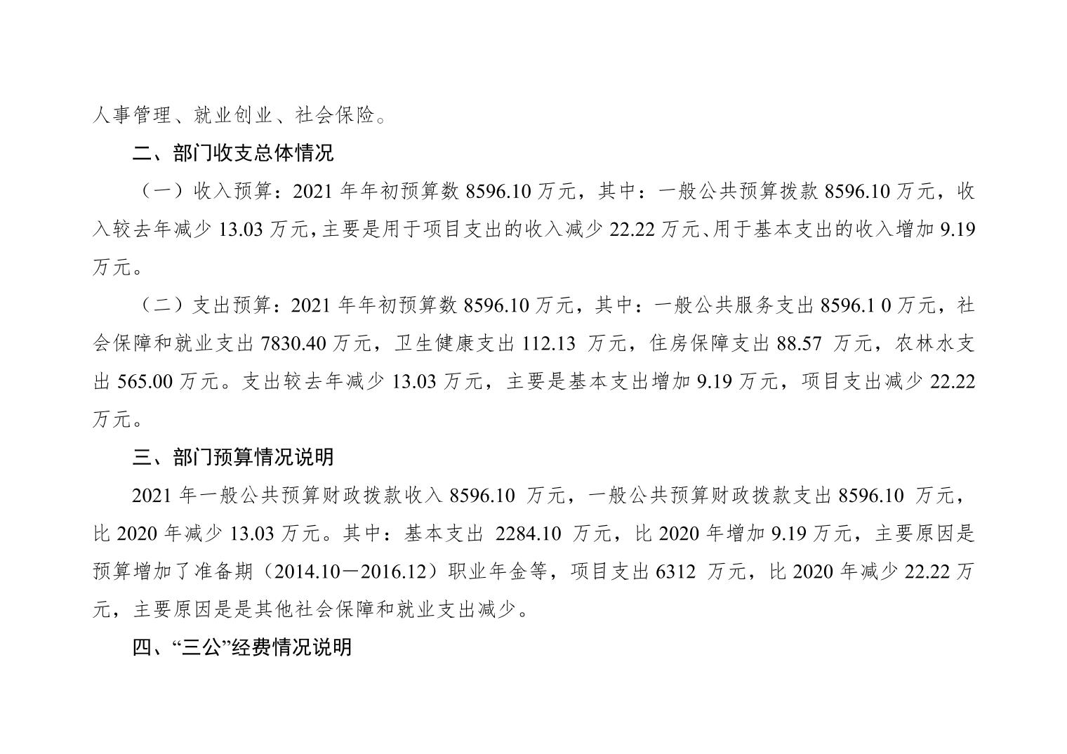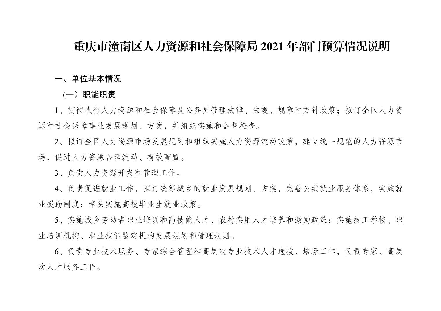 重庆市潼南区人力资源和社会保障局2021年部门预算公开