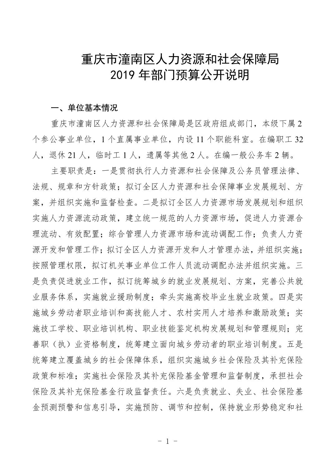 重庆市潼南区人力资源和社会保障局2019年部门预算公开