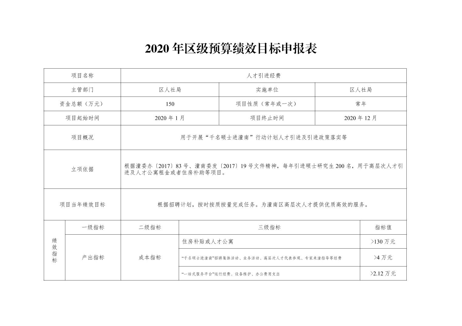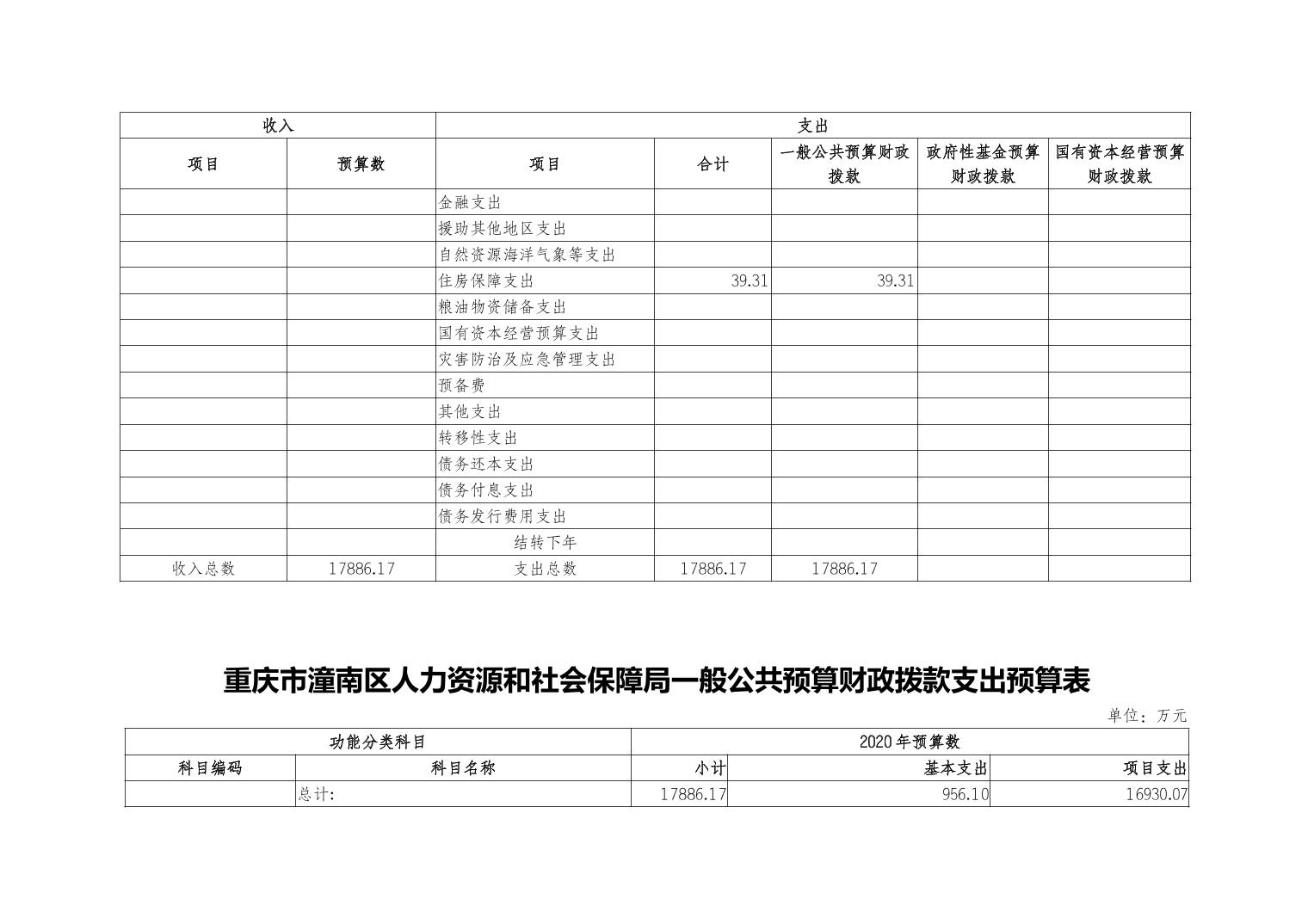 重庆市潼南区人力资源和社会保障局2020年部门预算公开