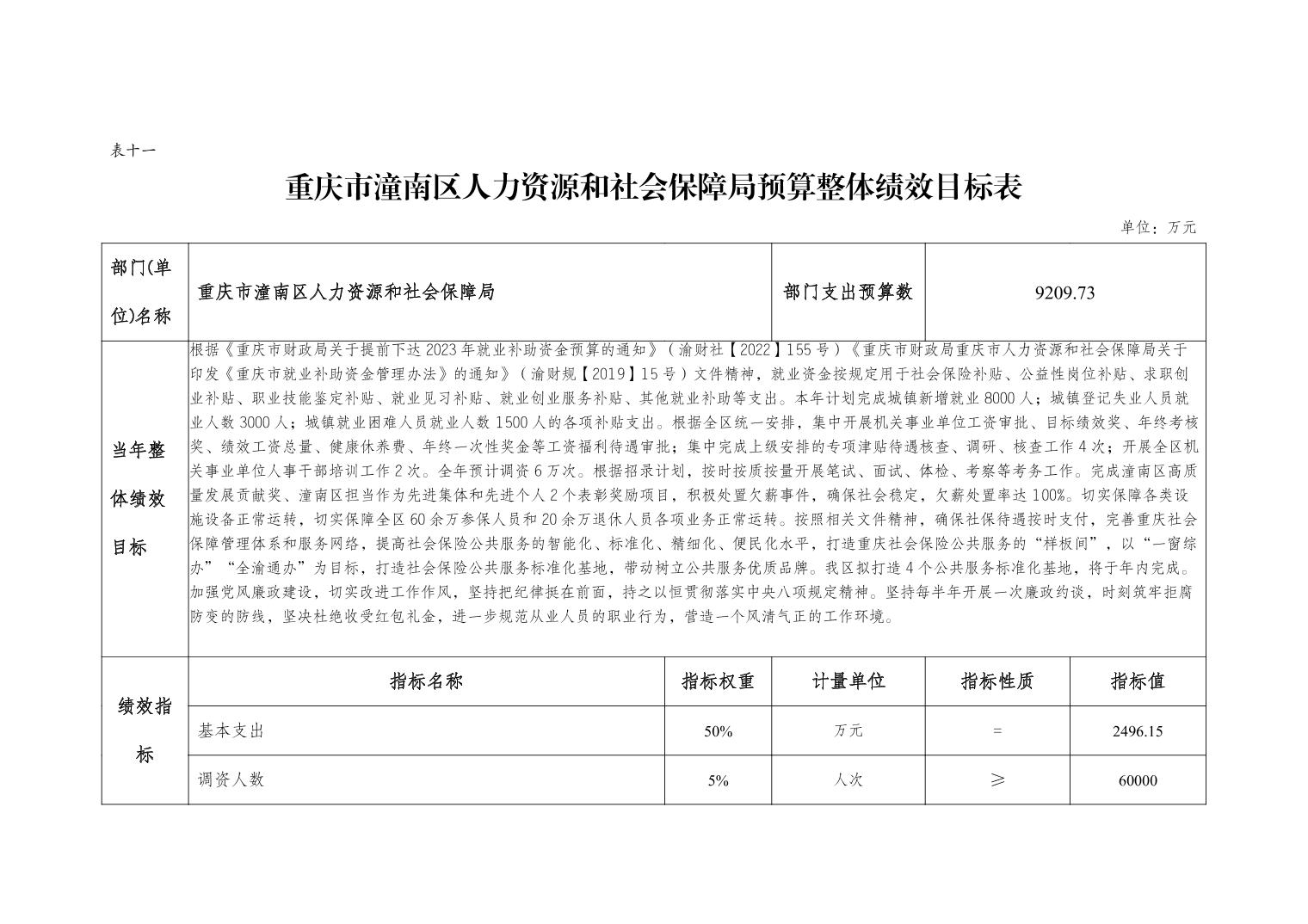重庆市潼南区人力资源和社会保障局2023年部门预算情况说明