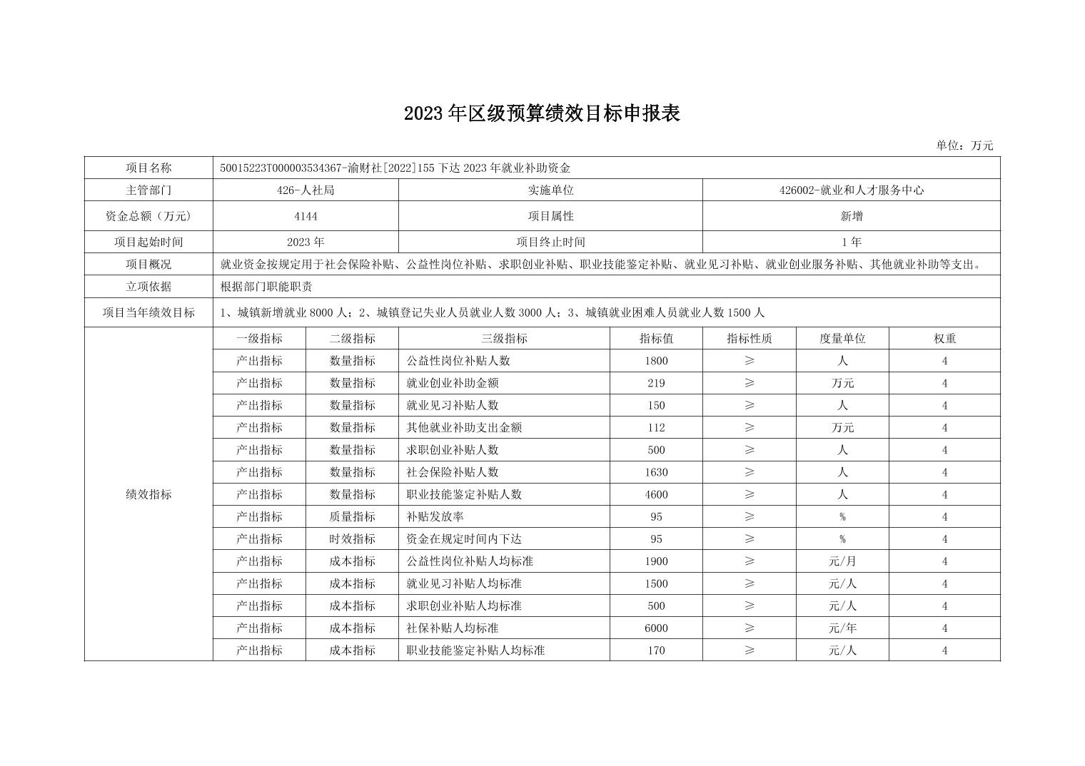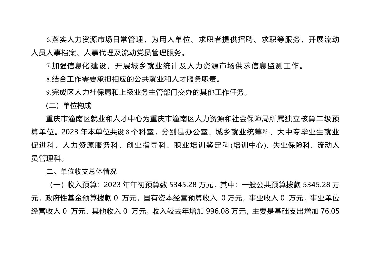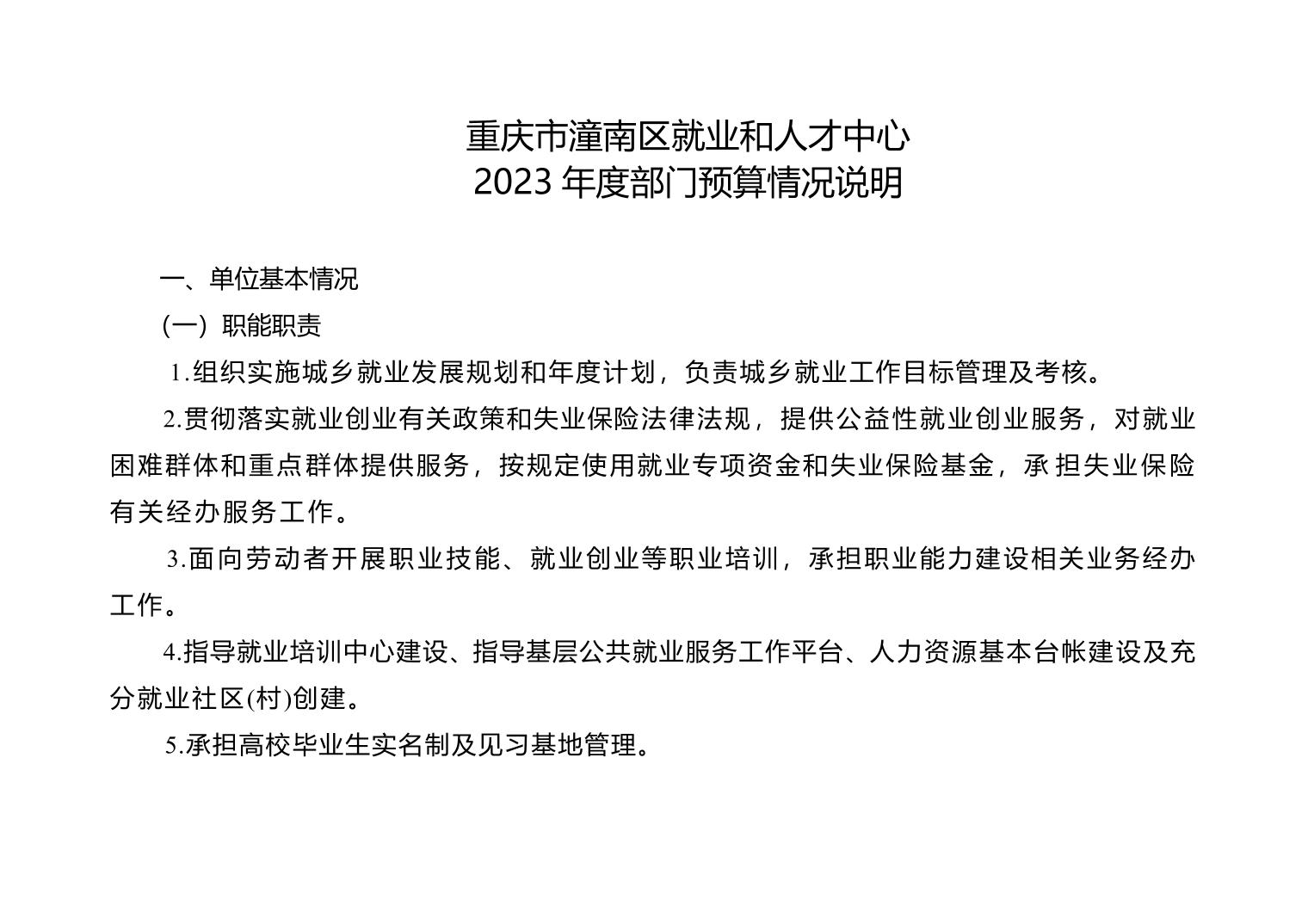 重庆市潼南区就业和人才中心2023年度部门预算情况说明