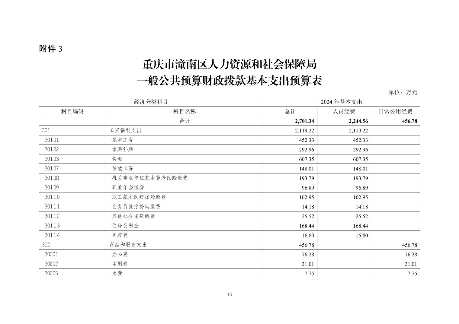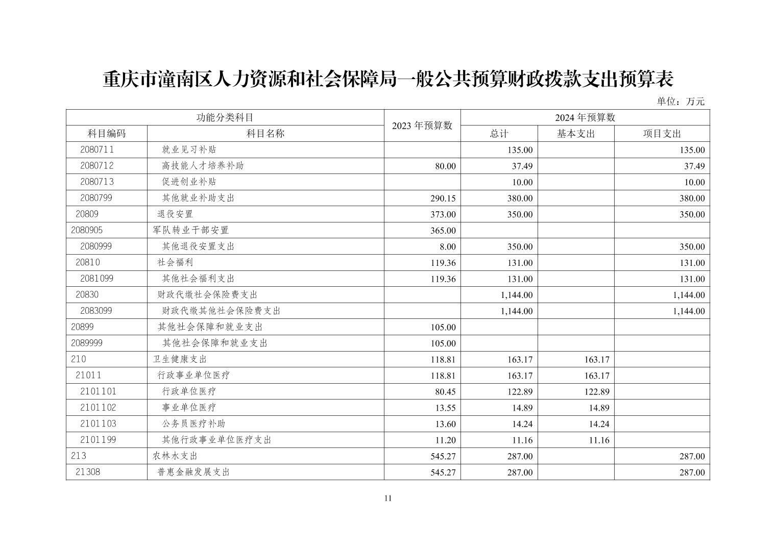 重庆市潼南区人力资源和社会保障局2024年度部门预算情况说明