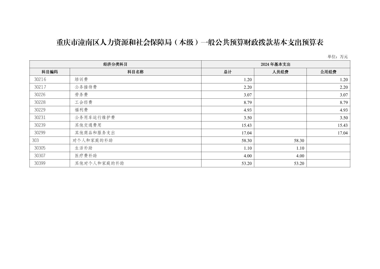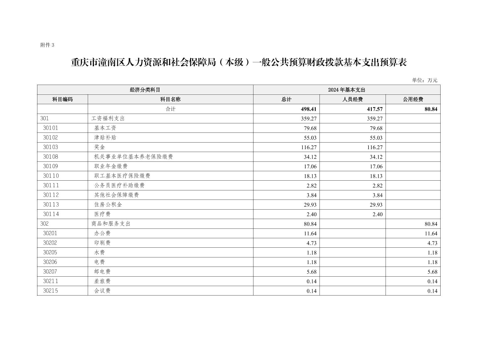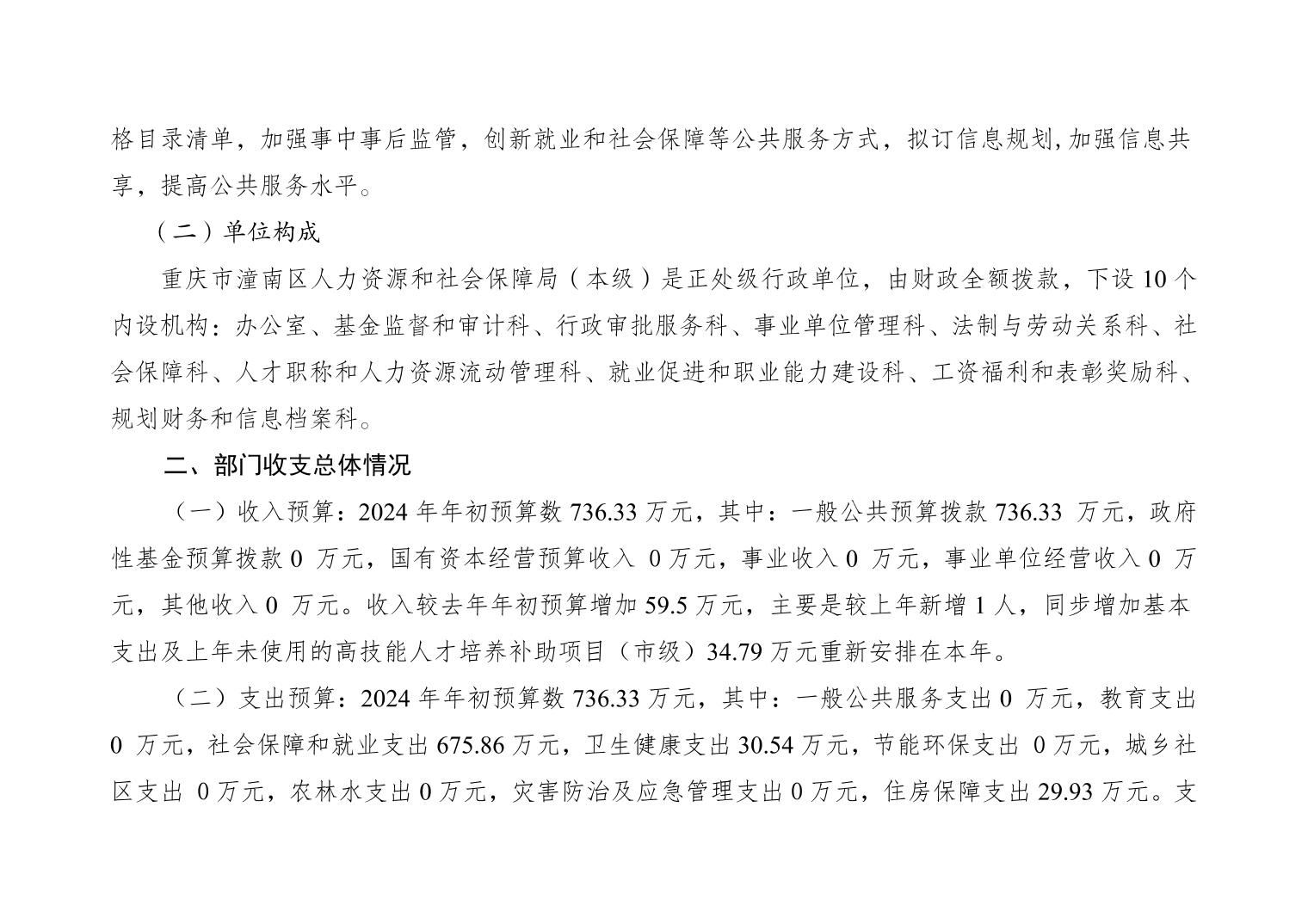 重庆市潼南区人力资源和社会保障局(本级)2024年度部门预算情况说明