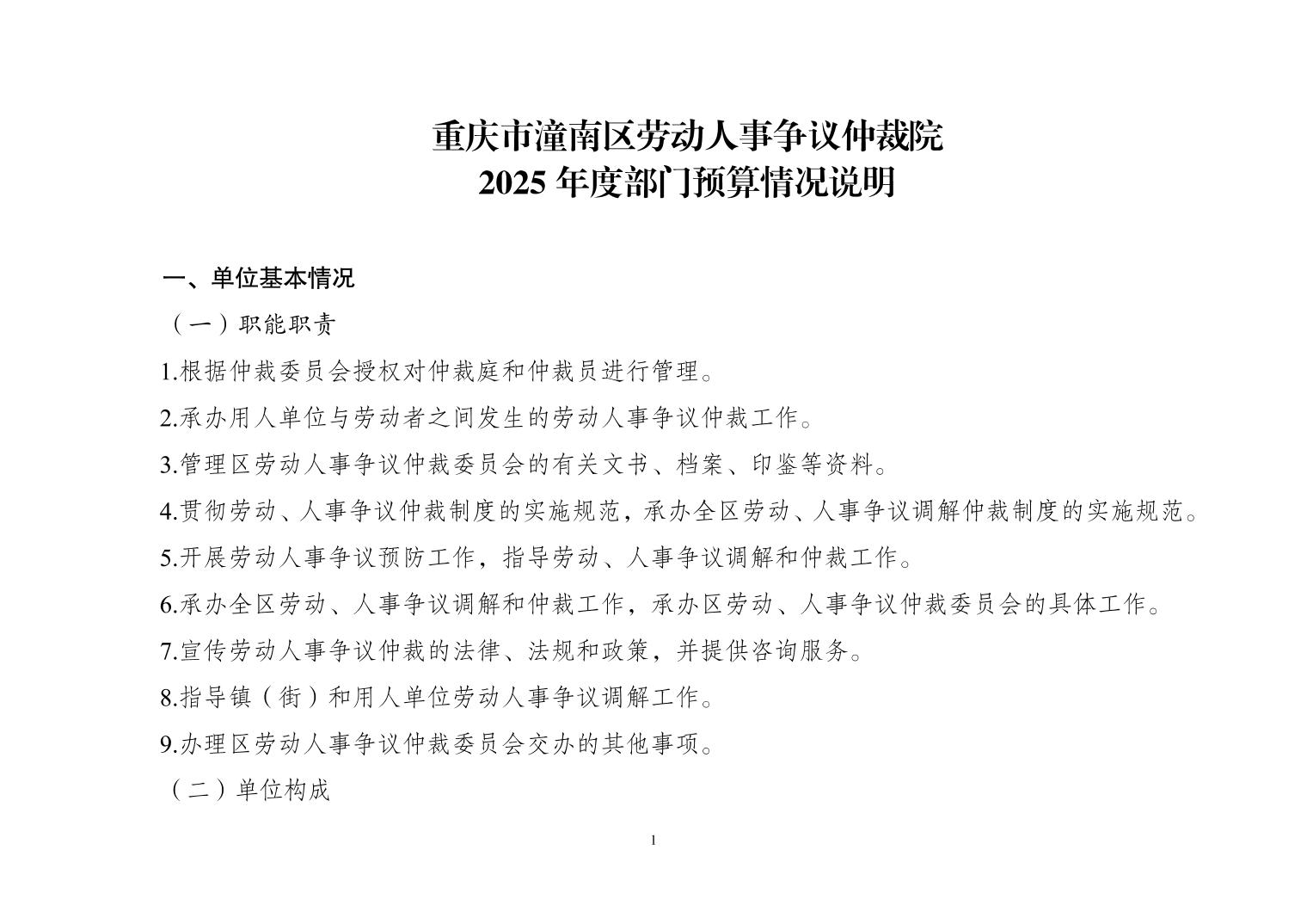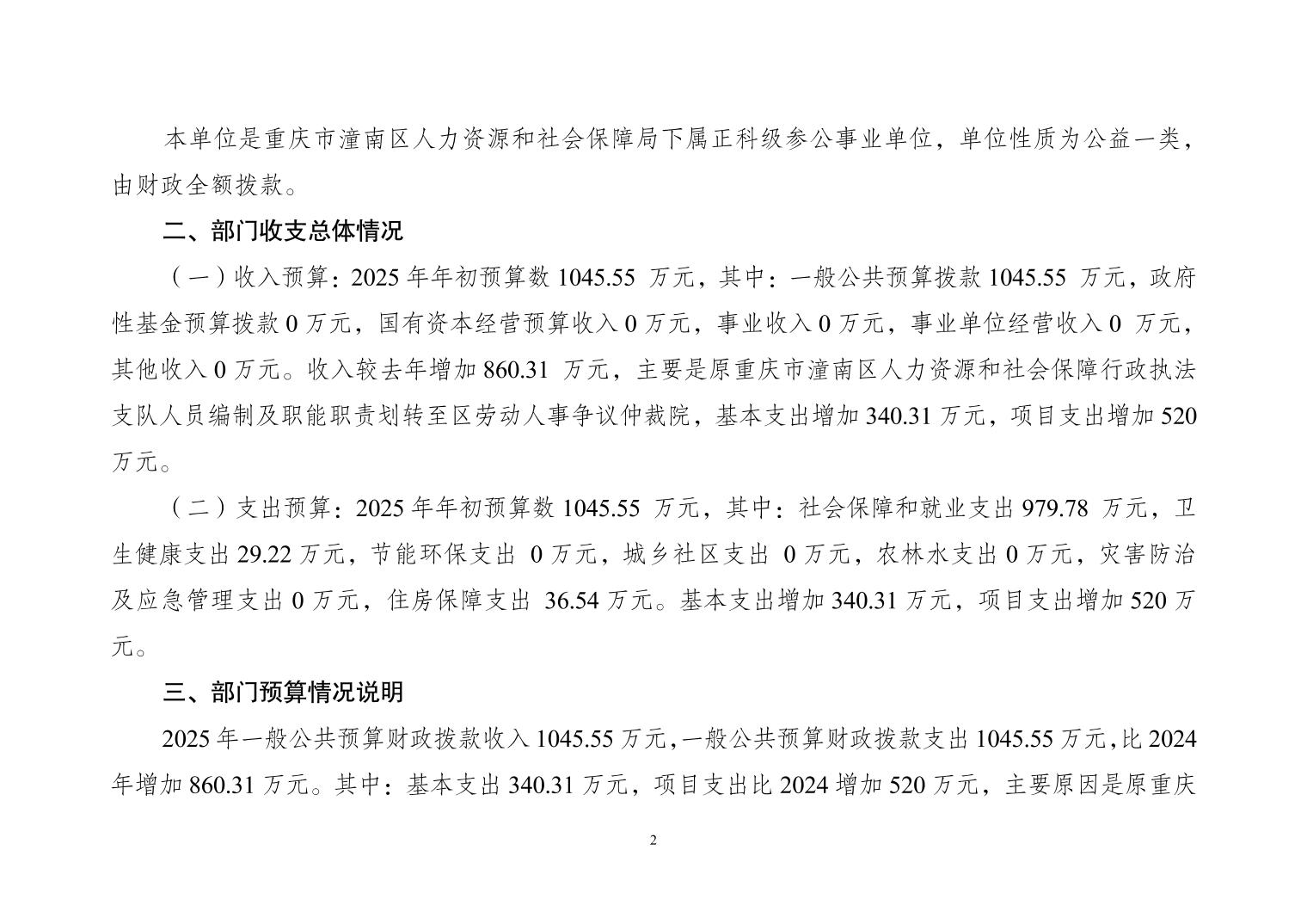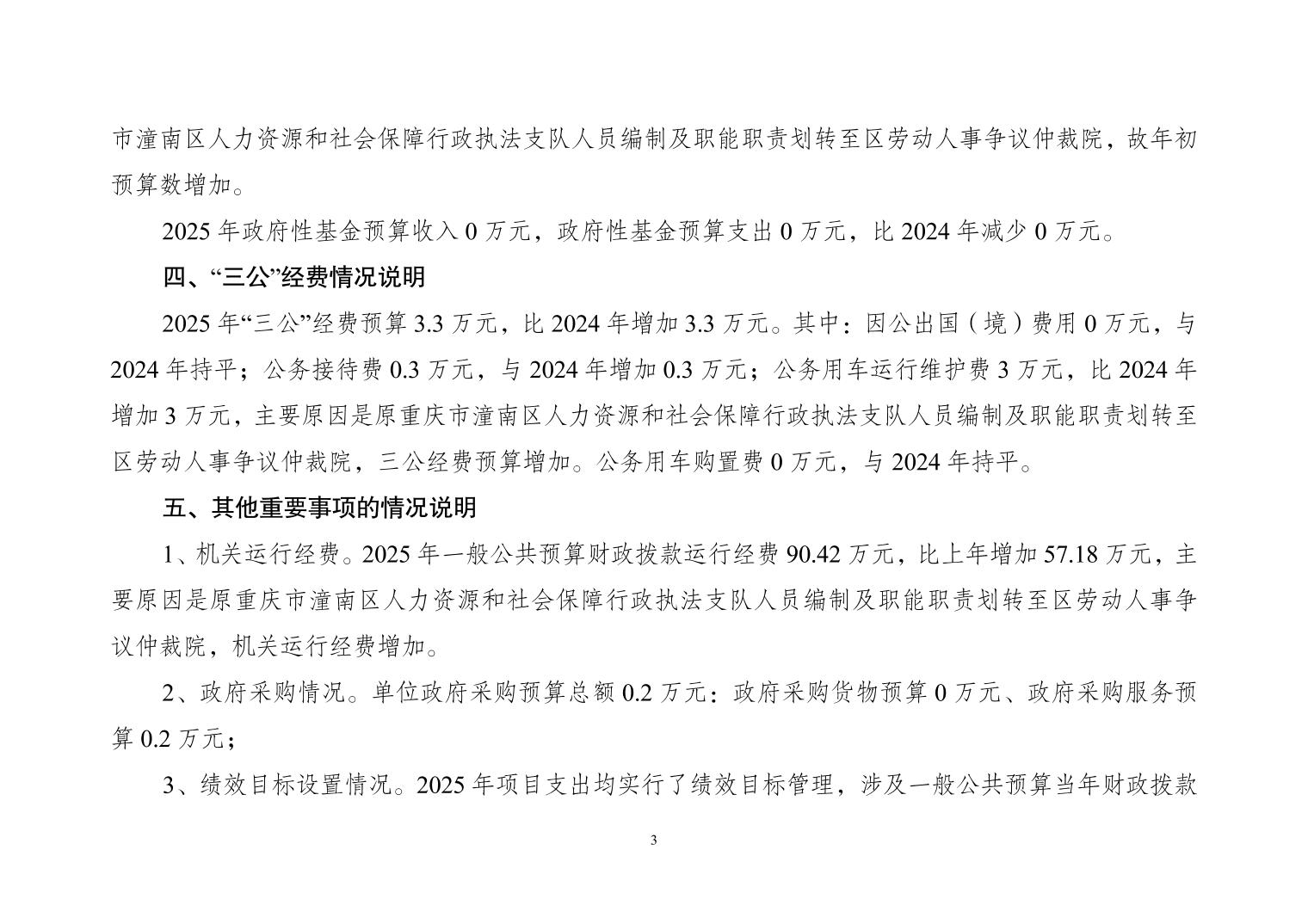 重庆市潼南区劳动人事争议仲裁院2025年部门预算情况说明