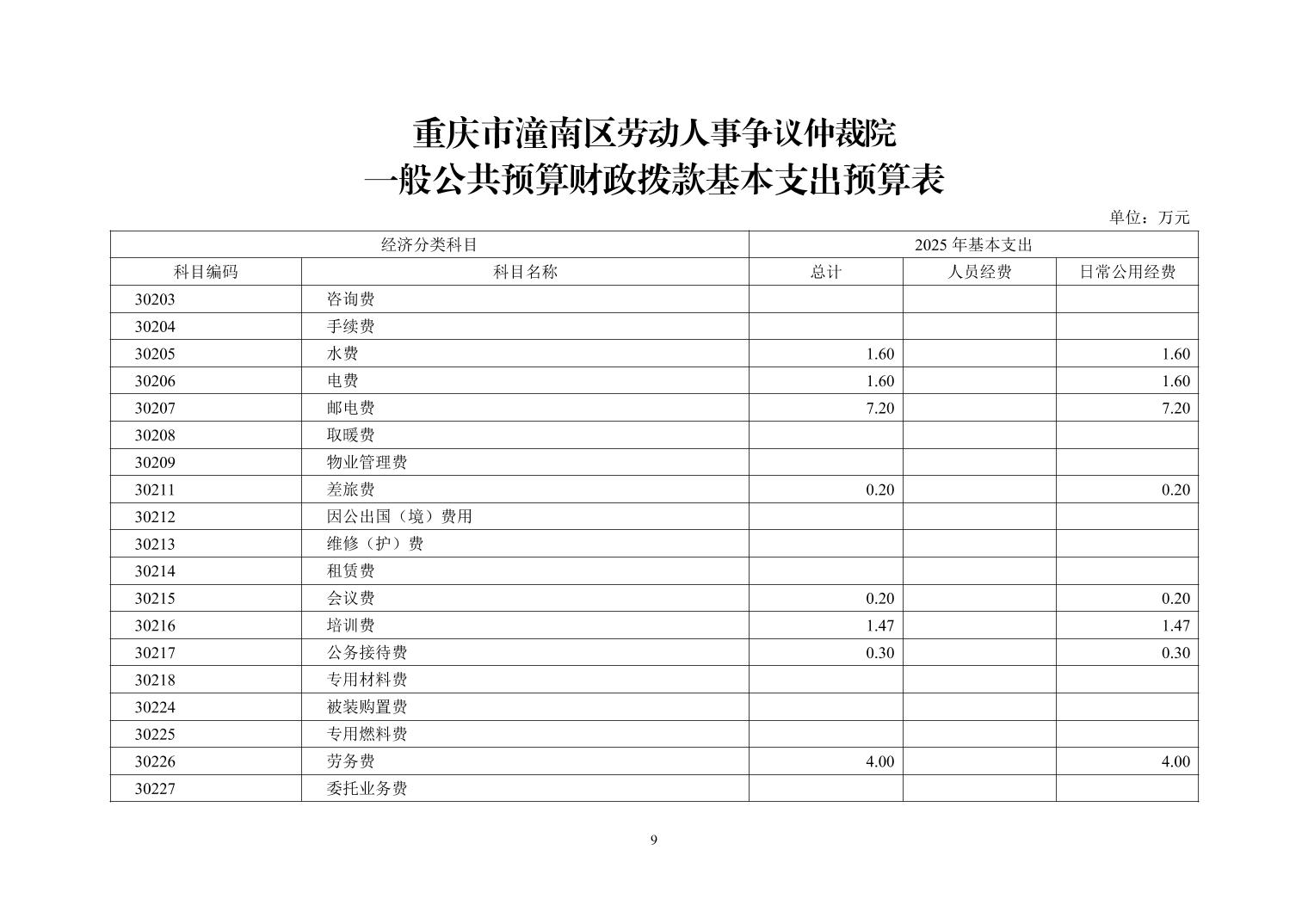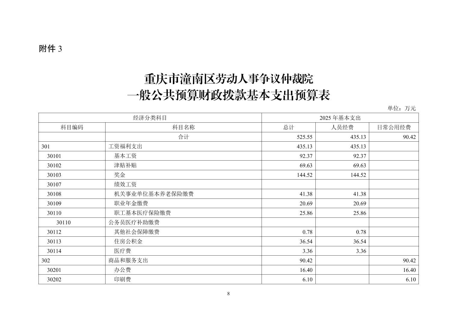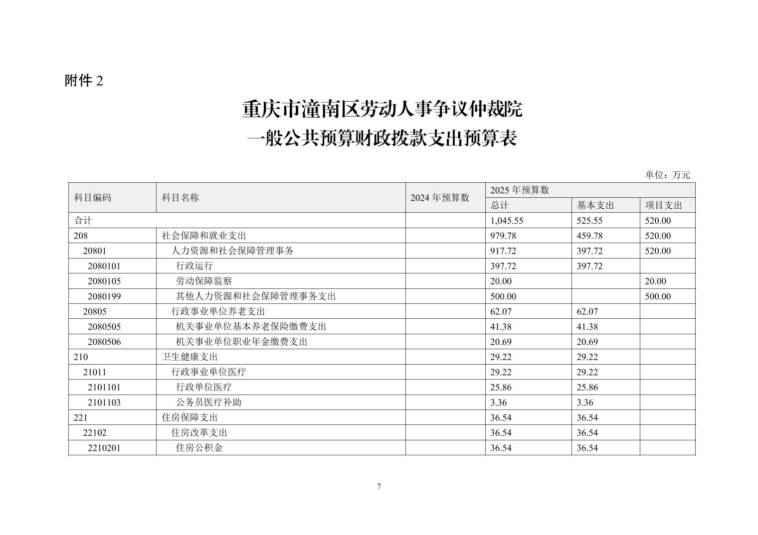重庆市潼南区劳动人事争议仲裁院2025年部门预算情况说明
