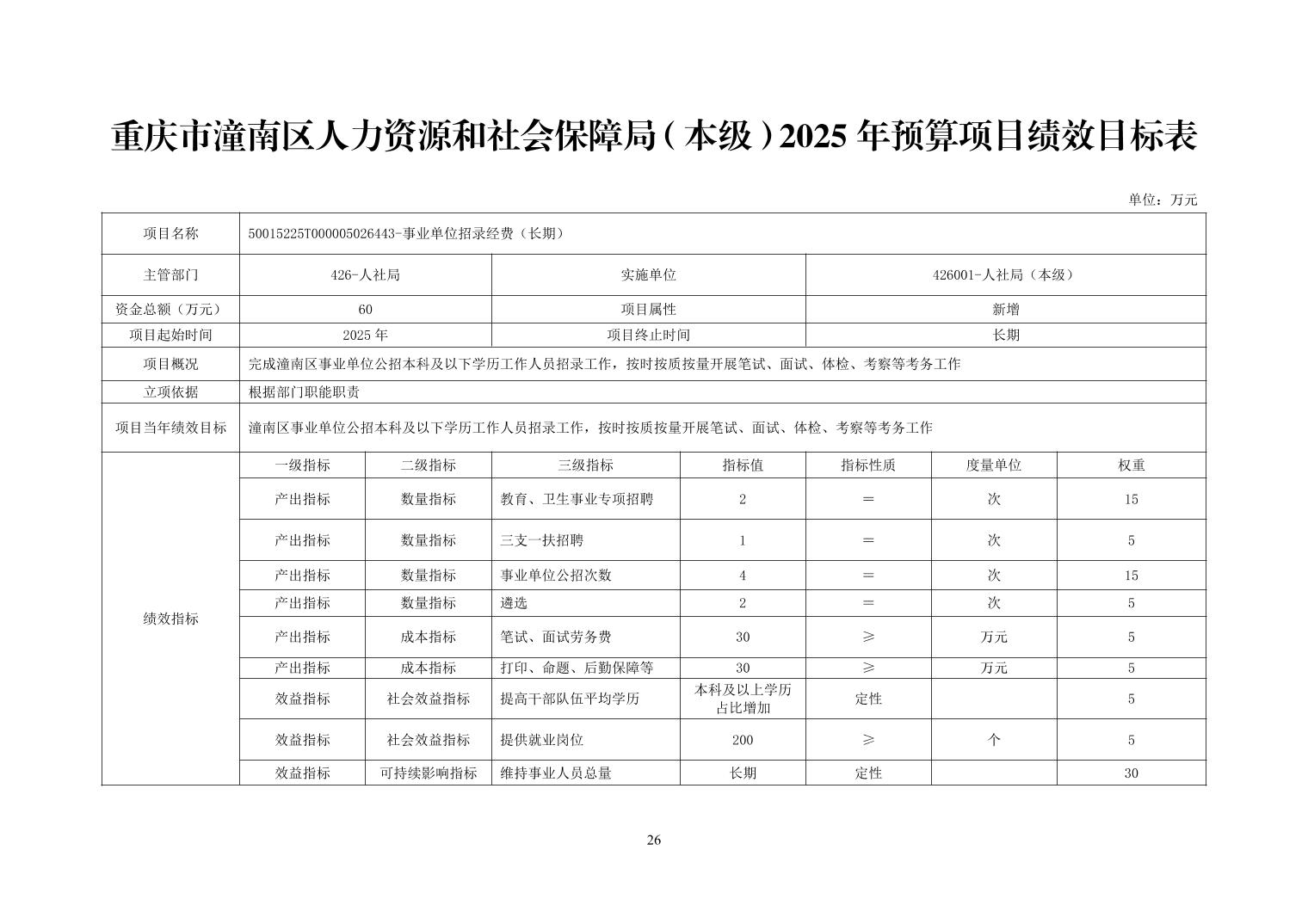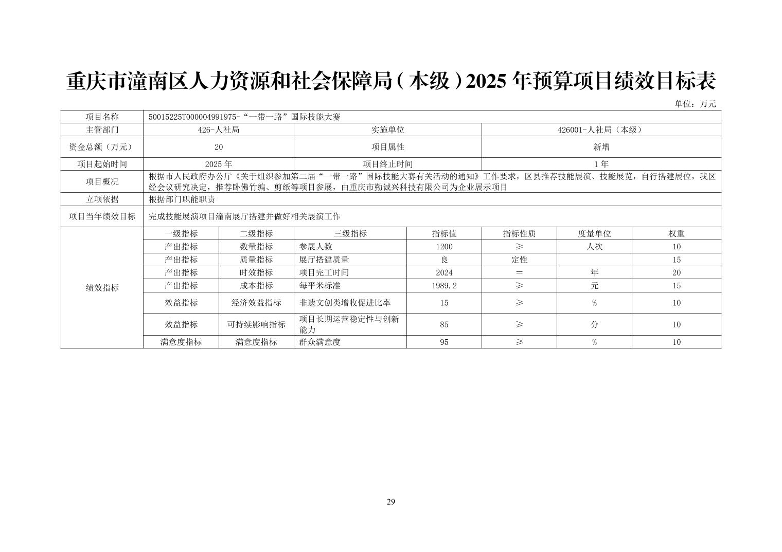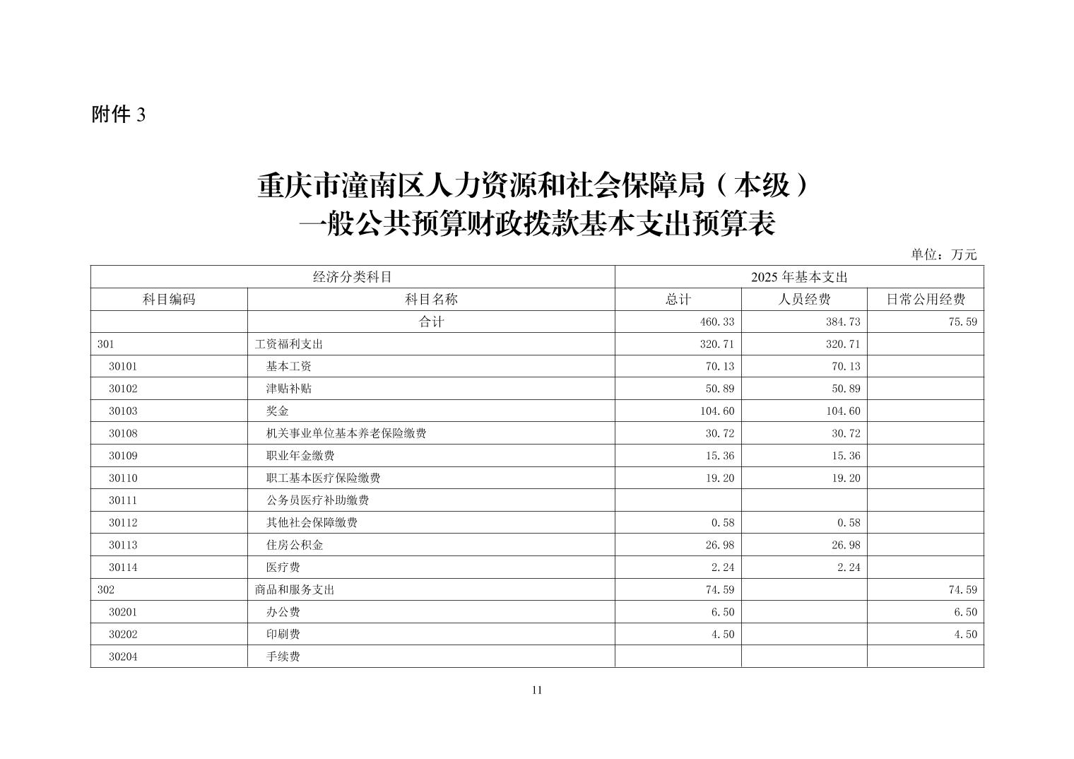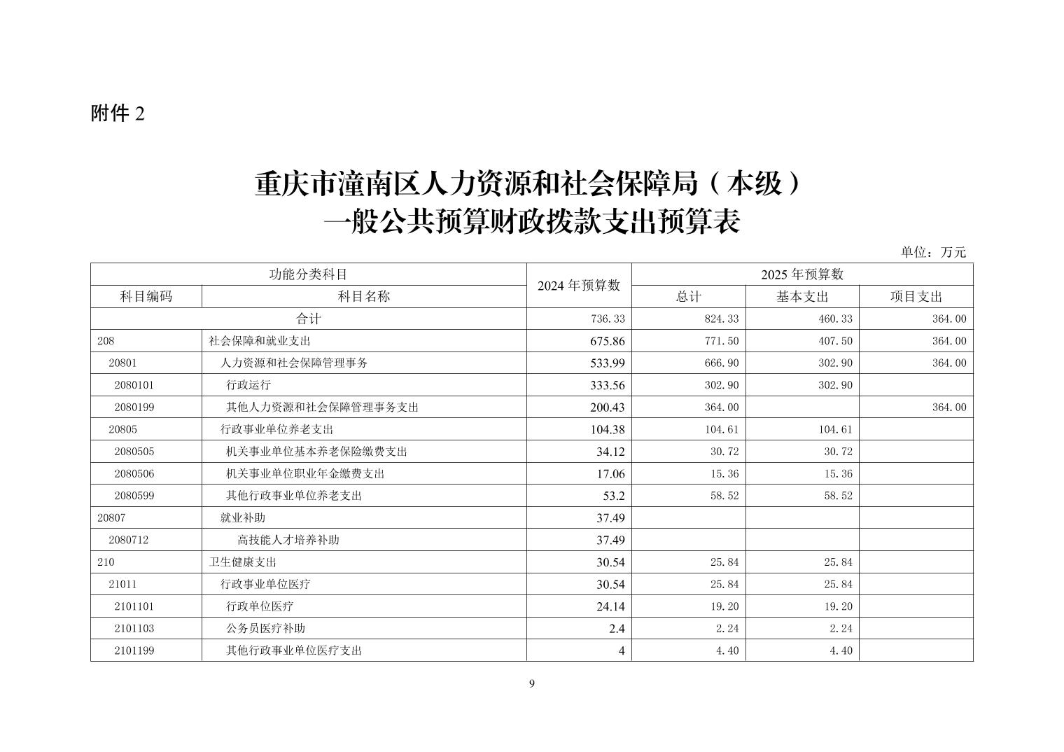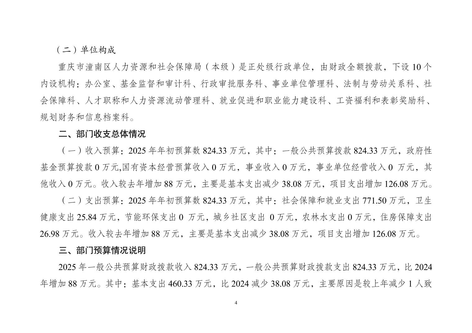 重庆市潼南区人力资源和社会保障局(本级)2025年部门预算情况说明