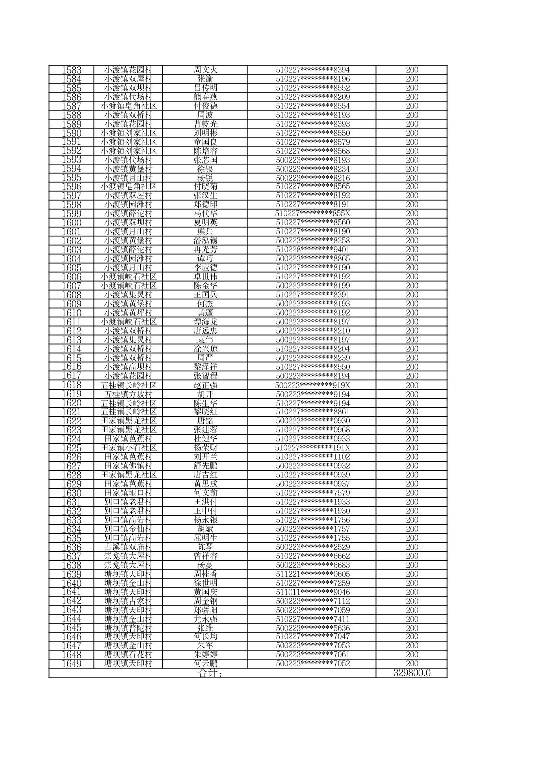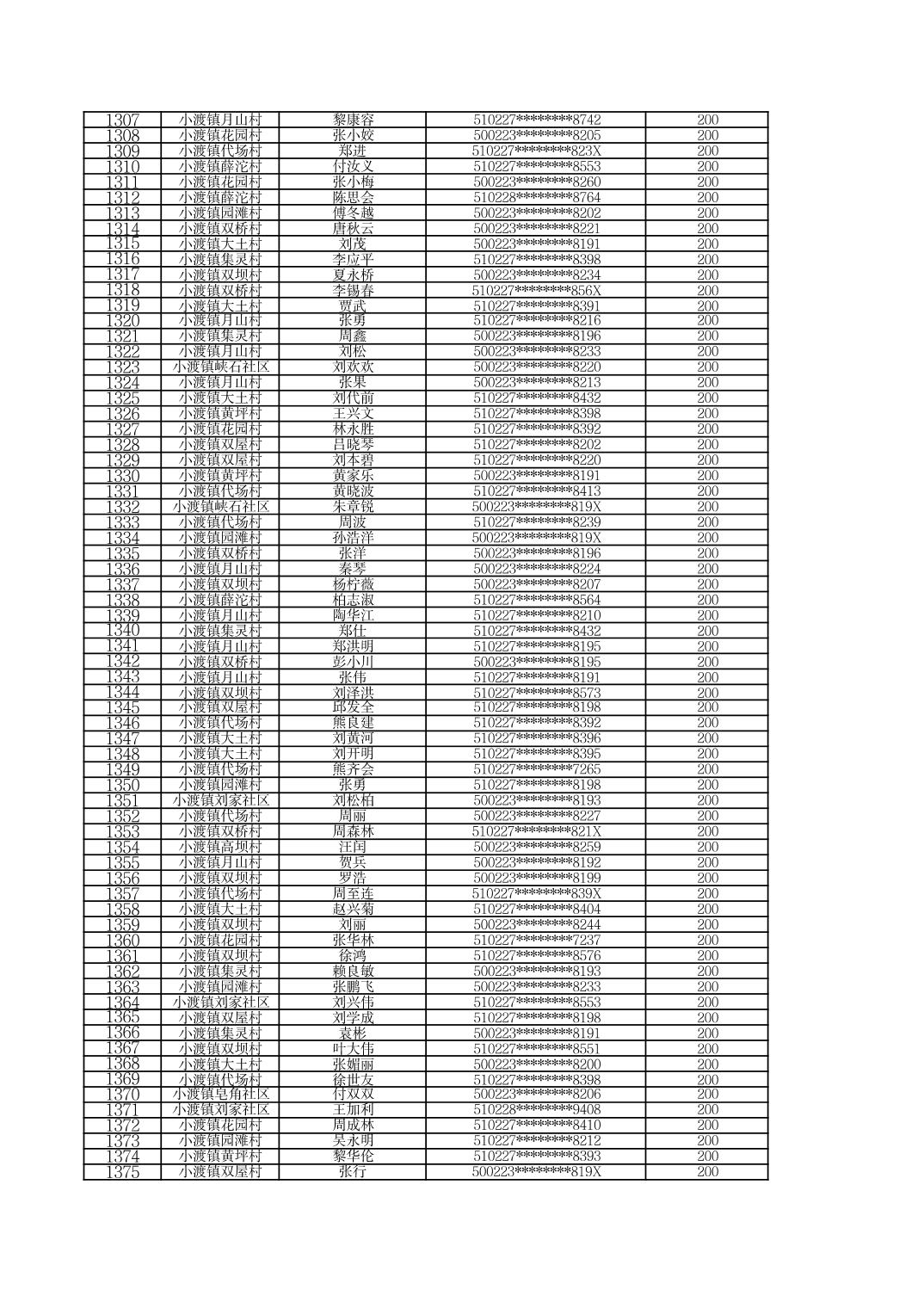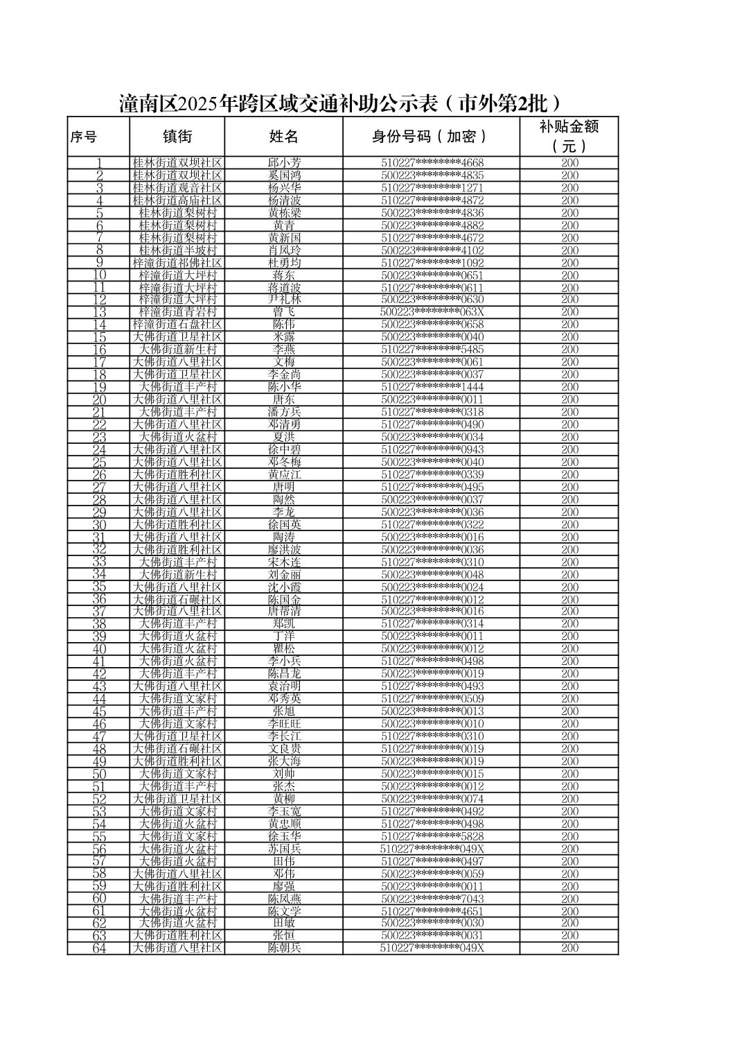 潼南区2025年跨区域交通补助公示表(市外第2批)