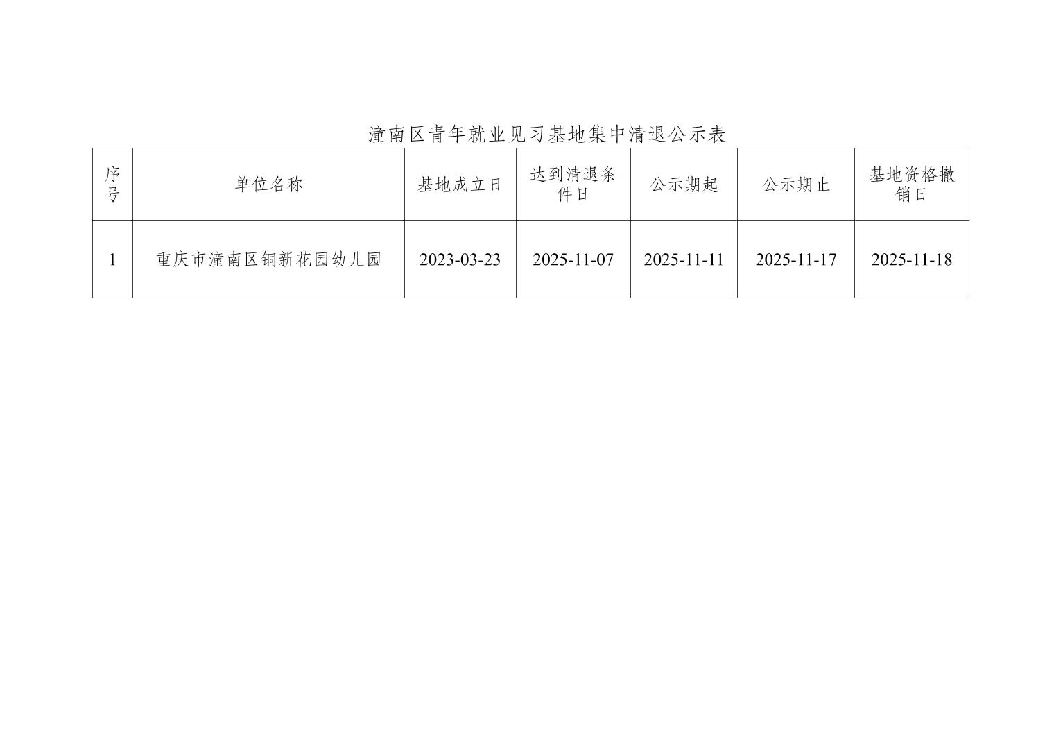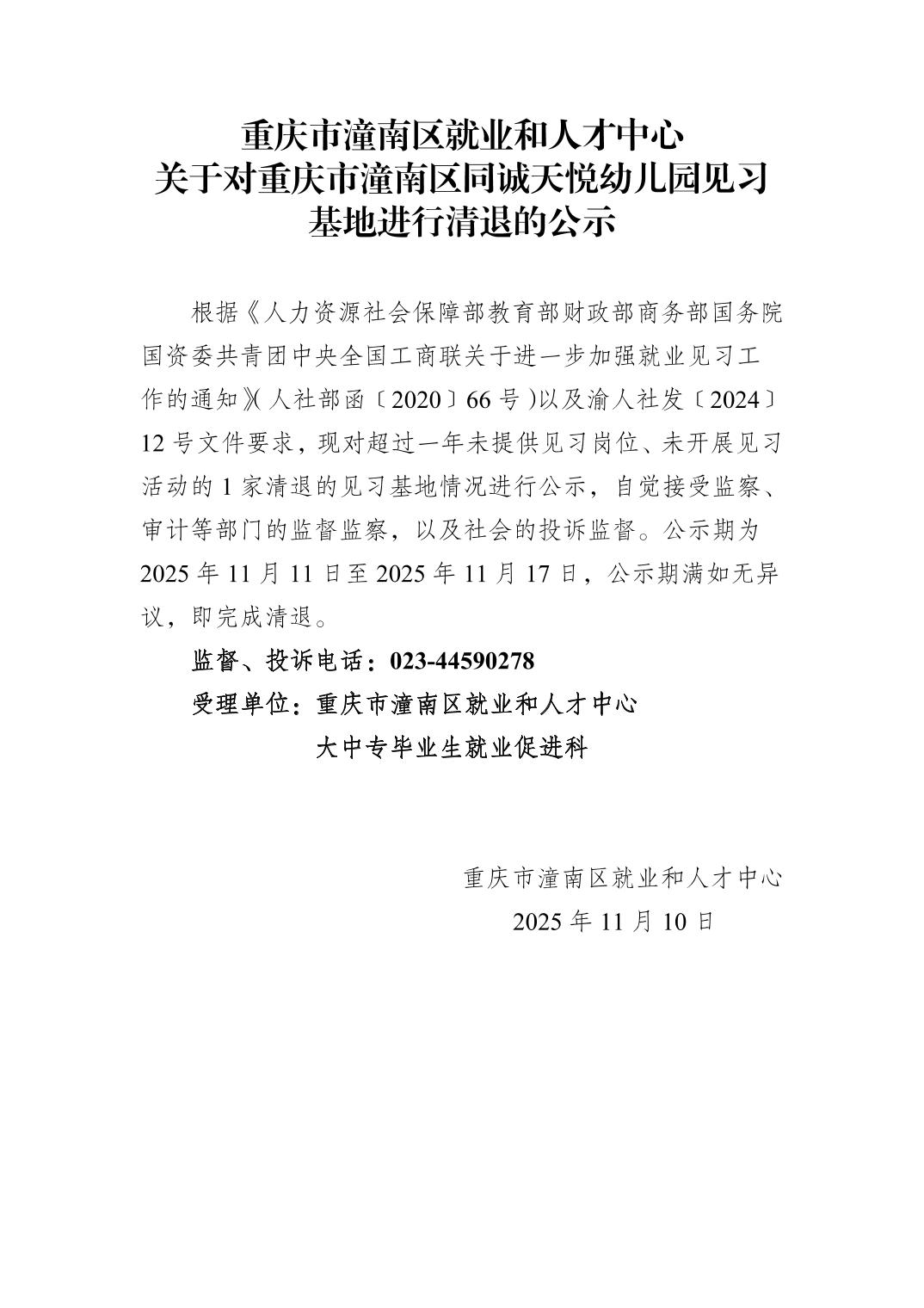 重庆市潼南区就业和人才中心关于对重庆市潼南区同诚天悦幼儿园见习基地进行清退的公示
