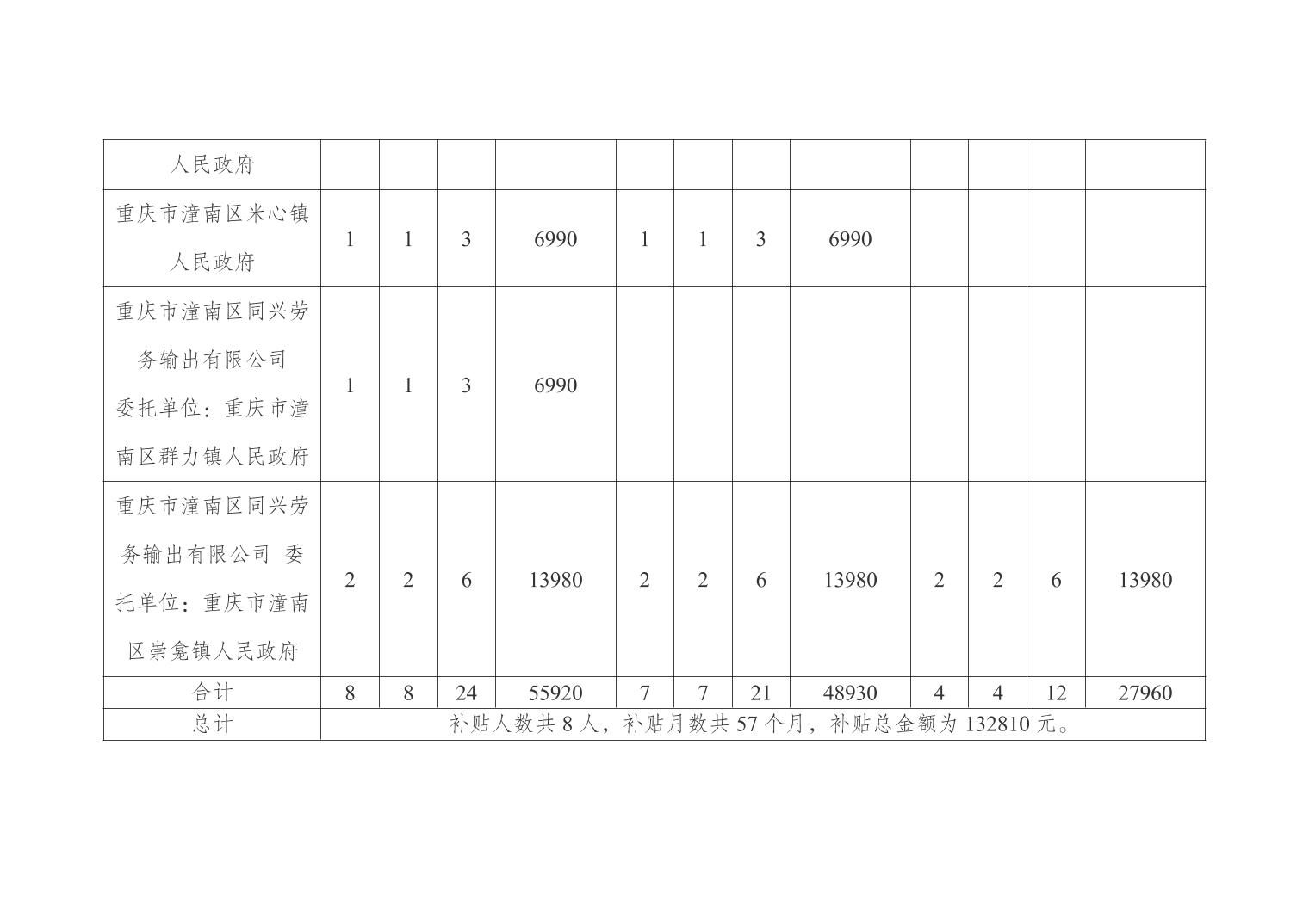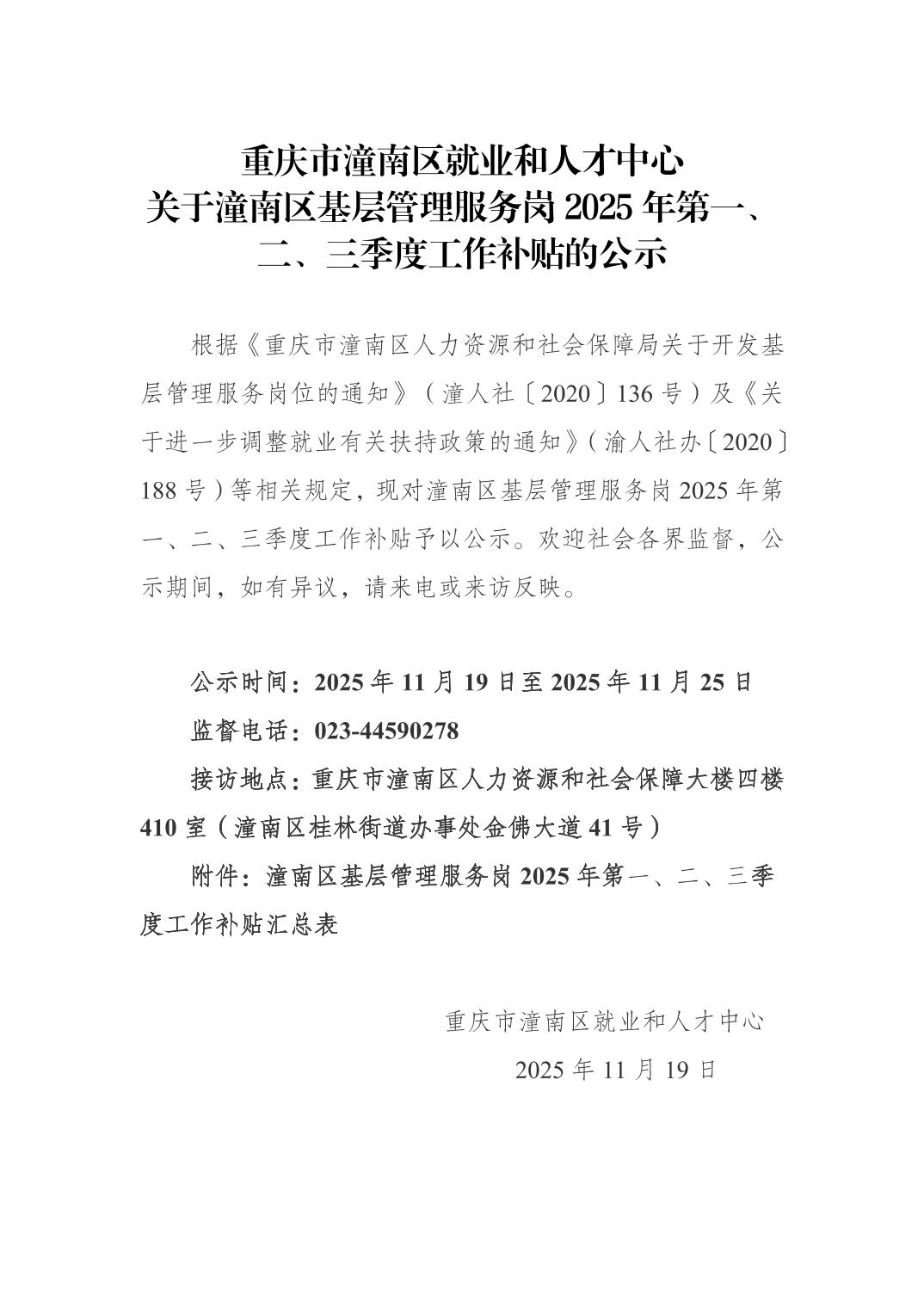 重庆市潼南区就业和人才中心关于潼南区基层管理服务岗2025年第一、二、三季度工作补贴的公示