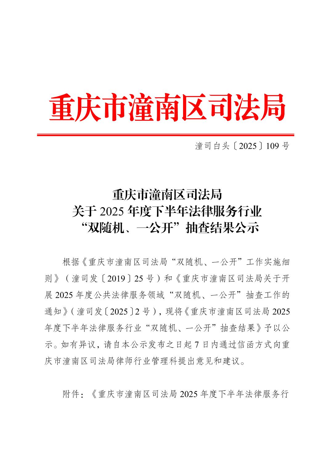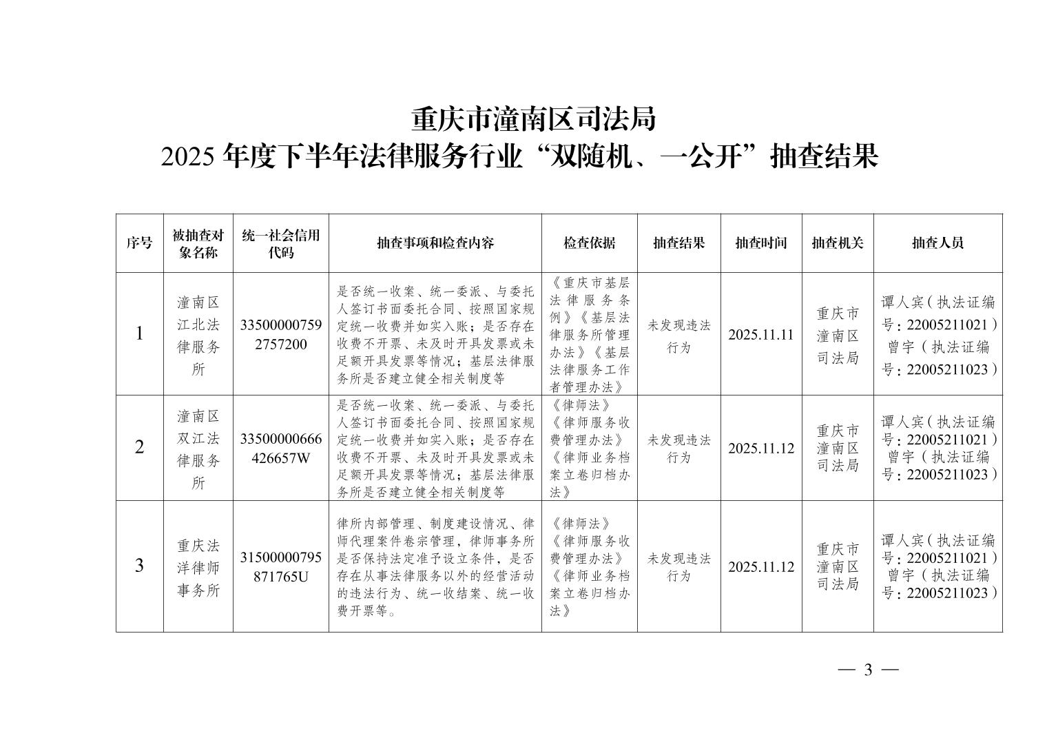 关于2025年度下半年法律服务行业 “双随机、一公开”抽查结果公示