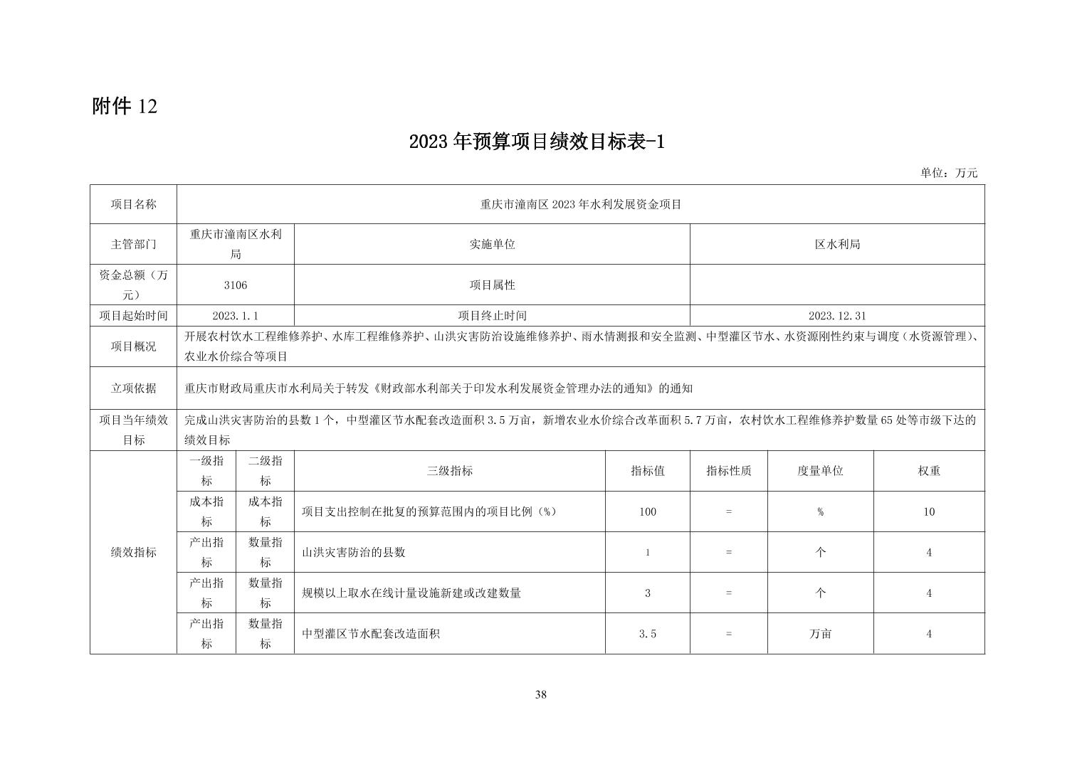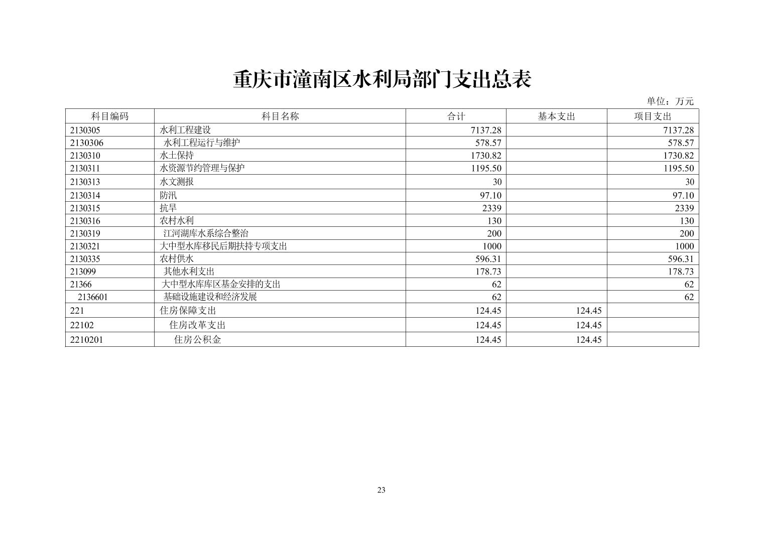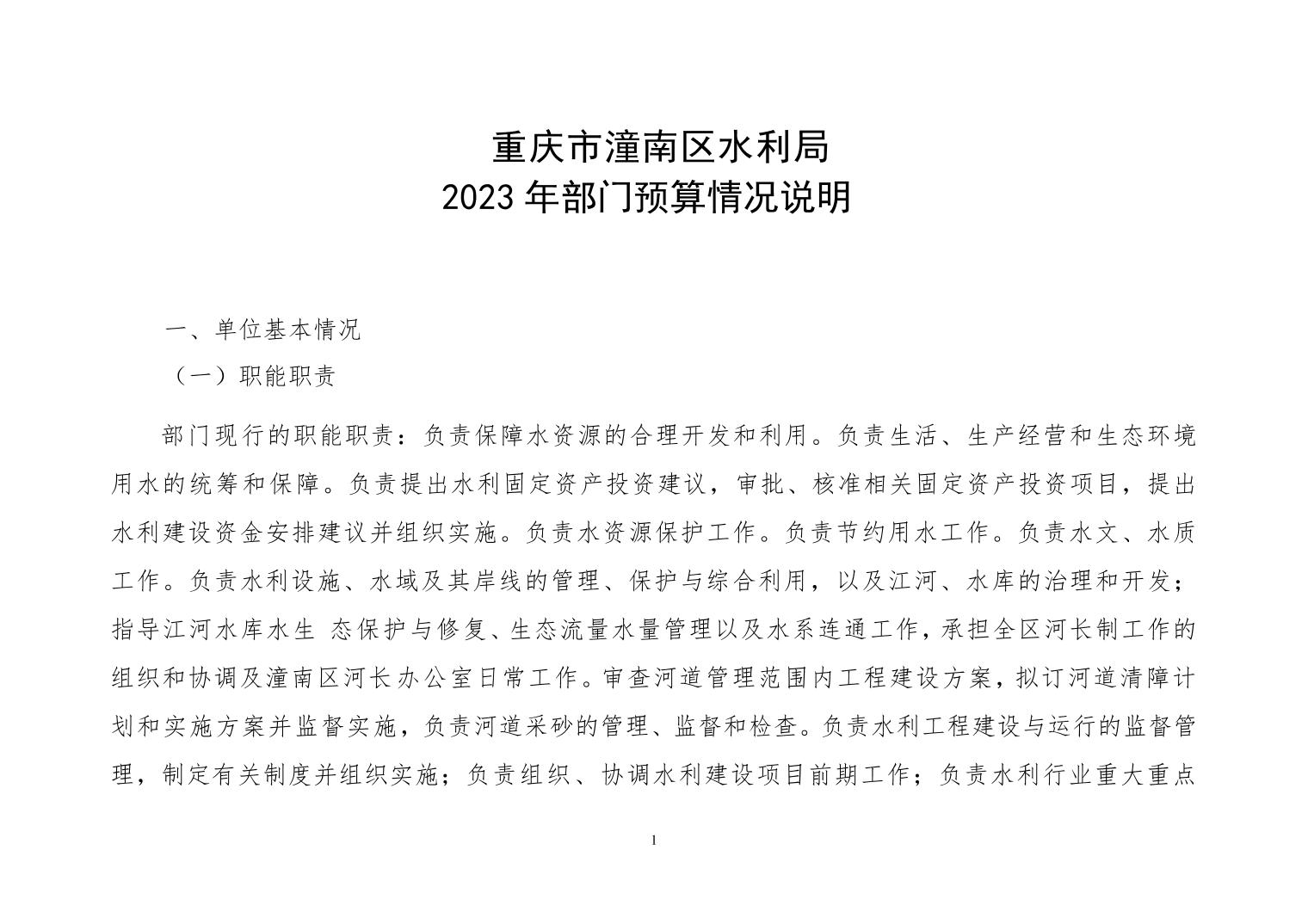 重庆市潼南区水利局2023年部门预算公开