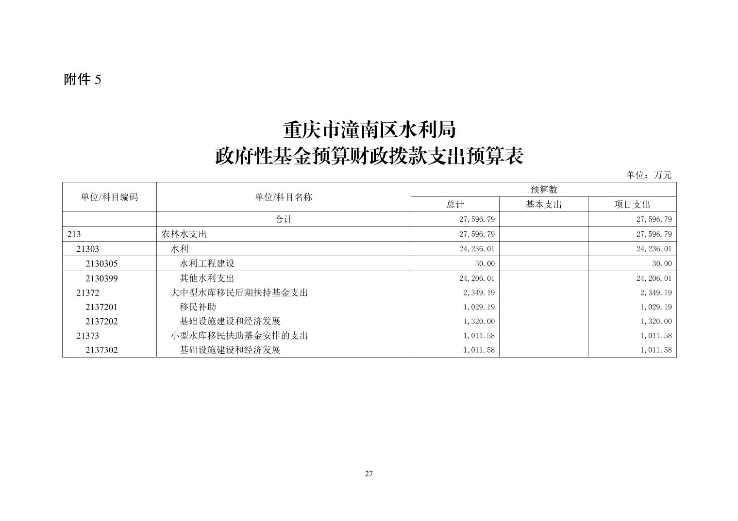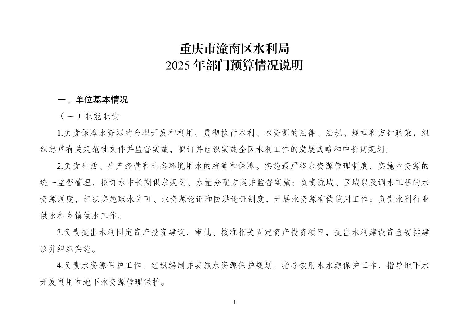 重庆市潼南区水利局2025年部门预算公开