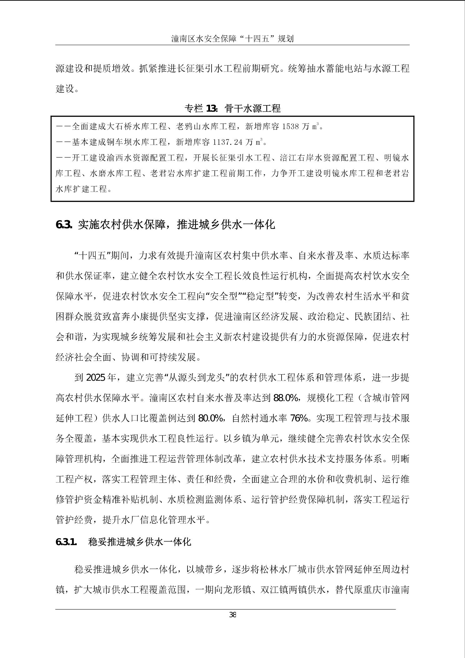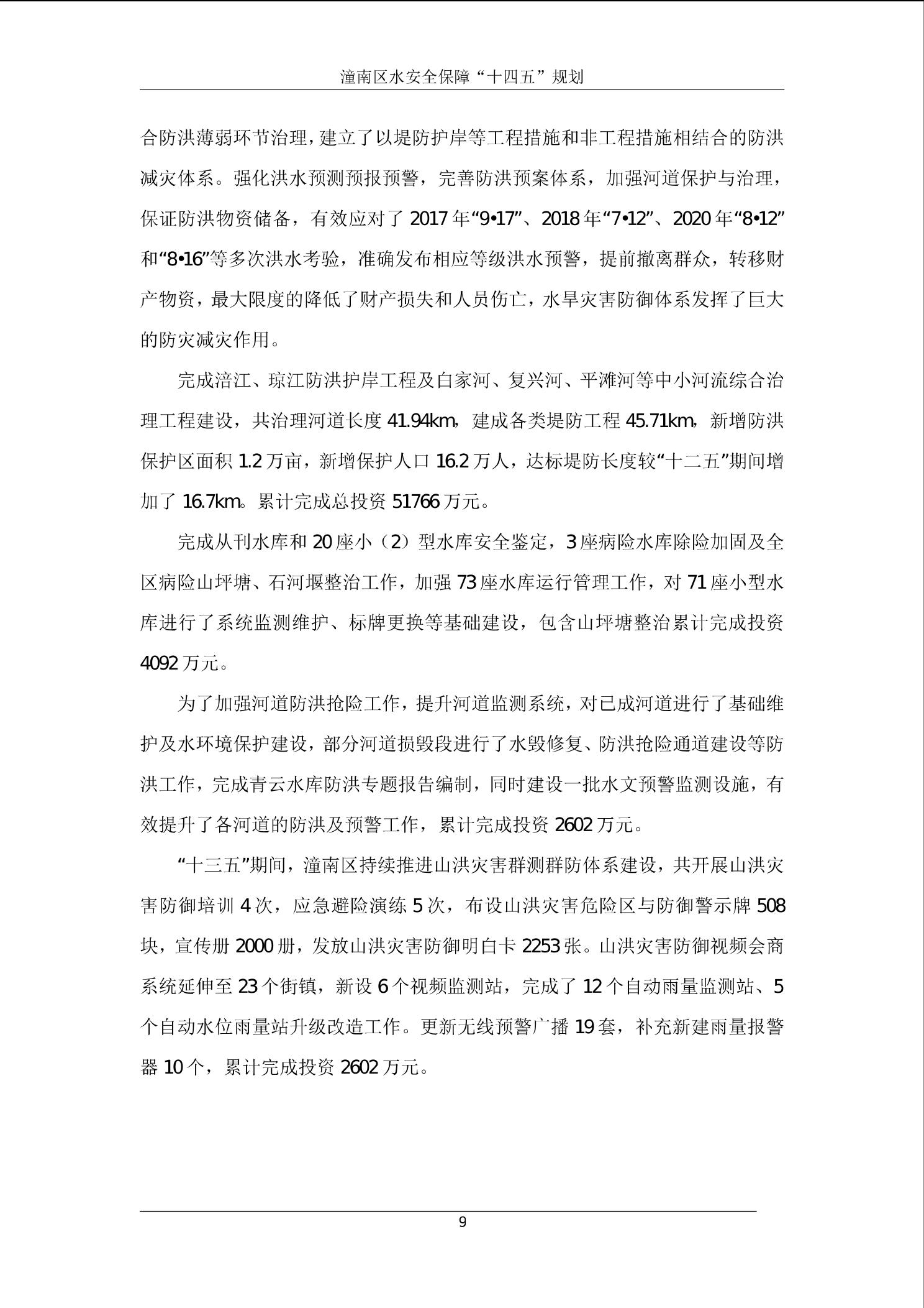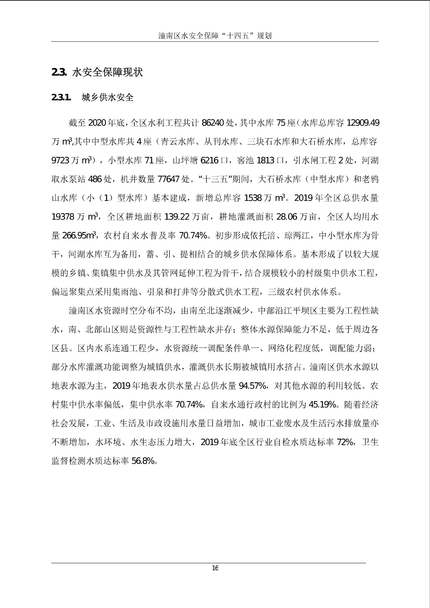 潼南府办发〔2021〕69号 重庆市潼南区人民政府办公室关于印发潼南区水安全保障“十四五”规划的通知