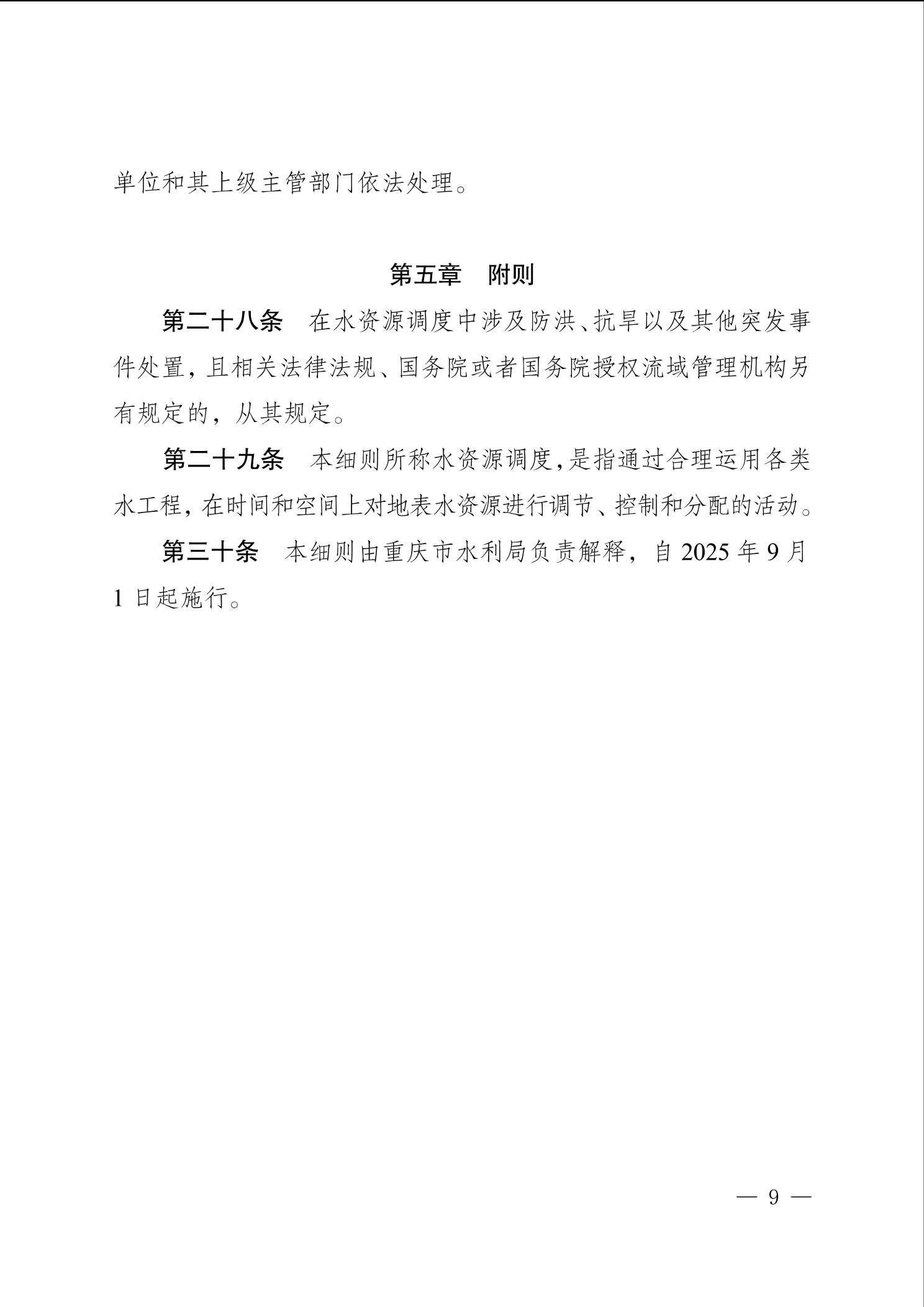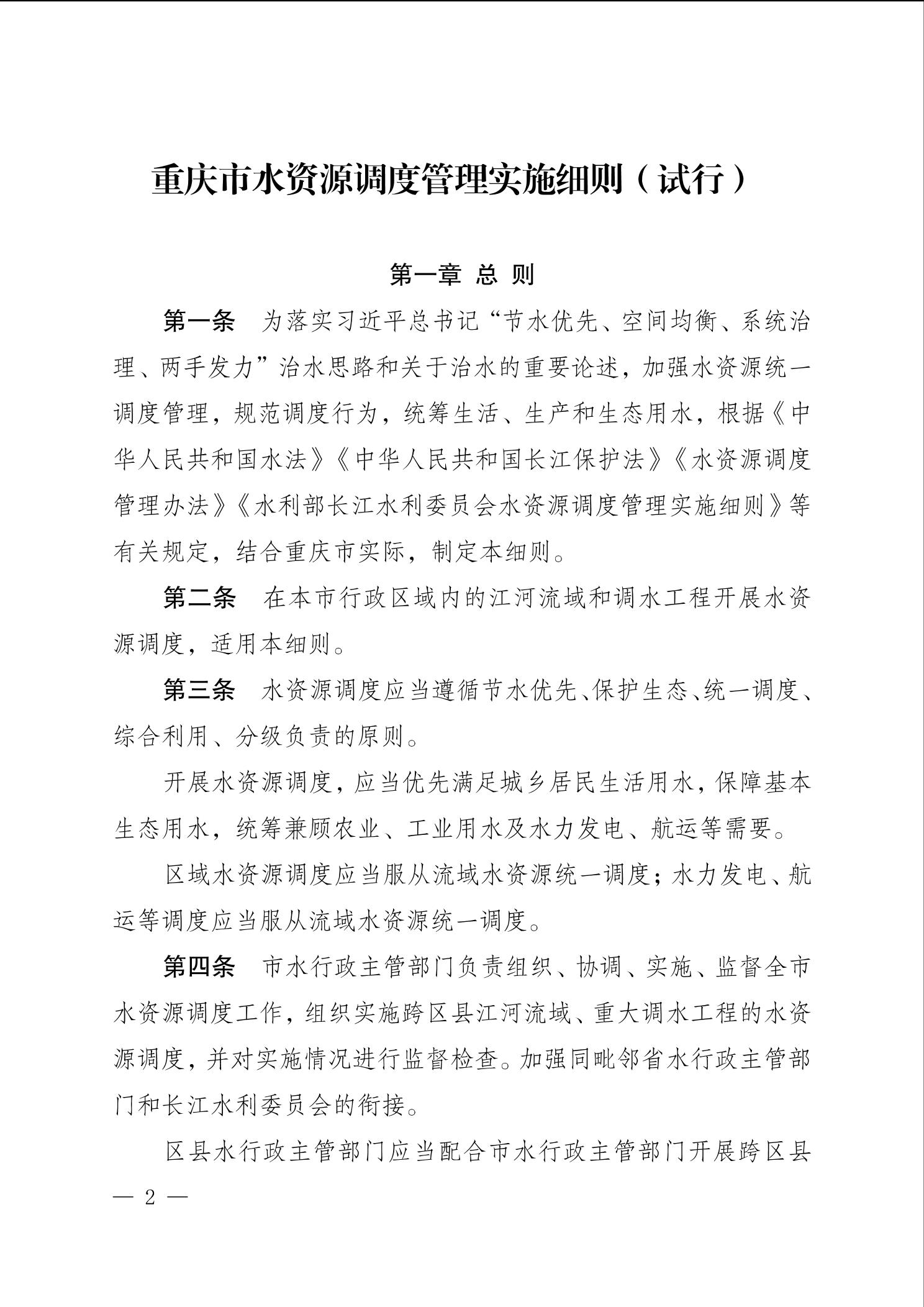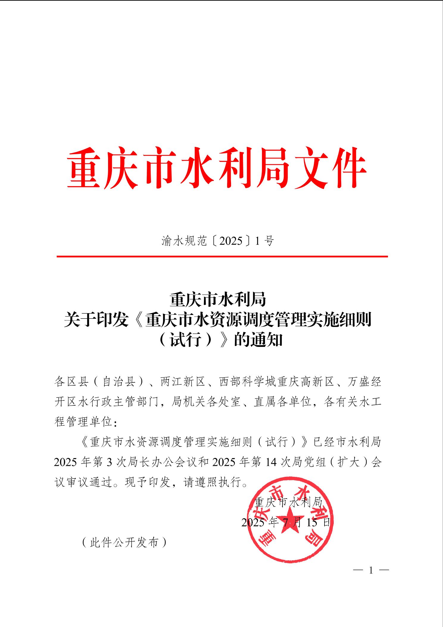 渝水规范〔2025〕1号重庆市水利局关于印发《重庆市水资源调度管理实施细则(试行)》的通知