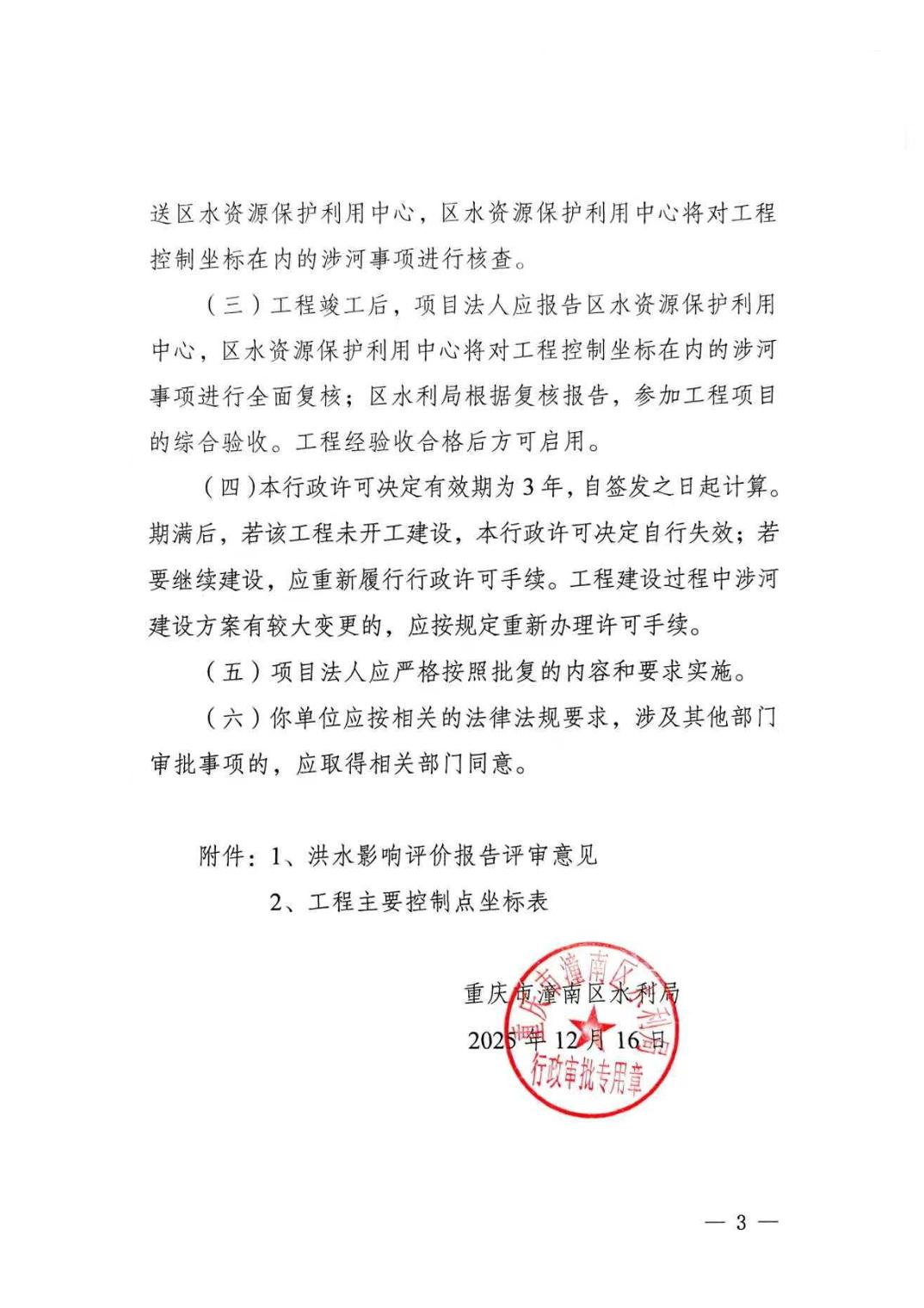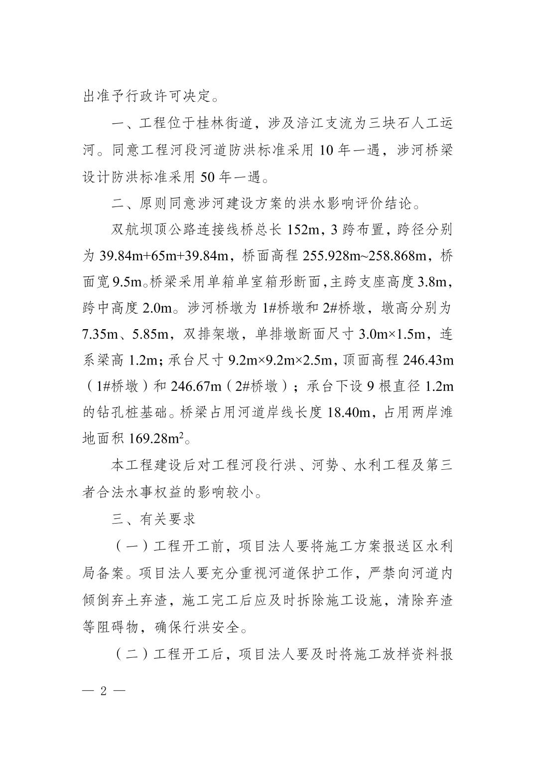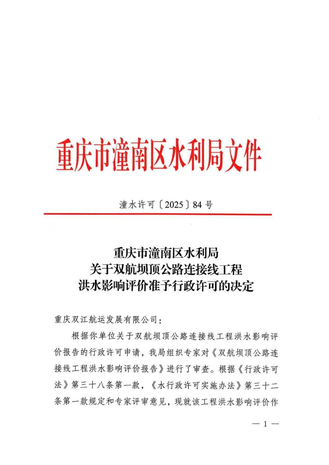 潼水许可〔2025〕84号关于双航坝顶公路连接线工程洪水影响评价准予行政许可的决定