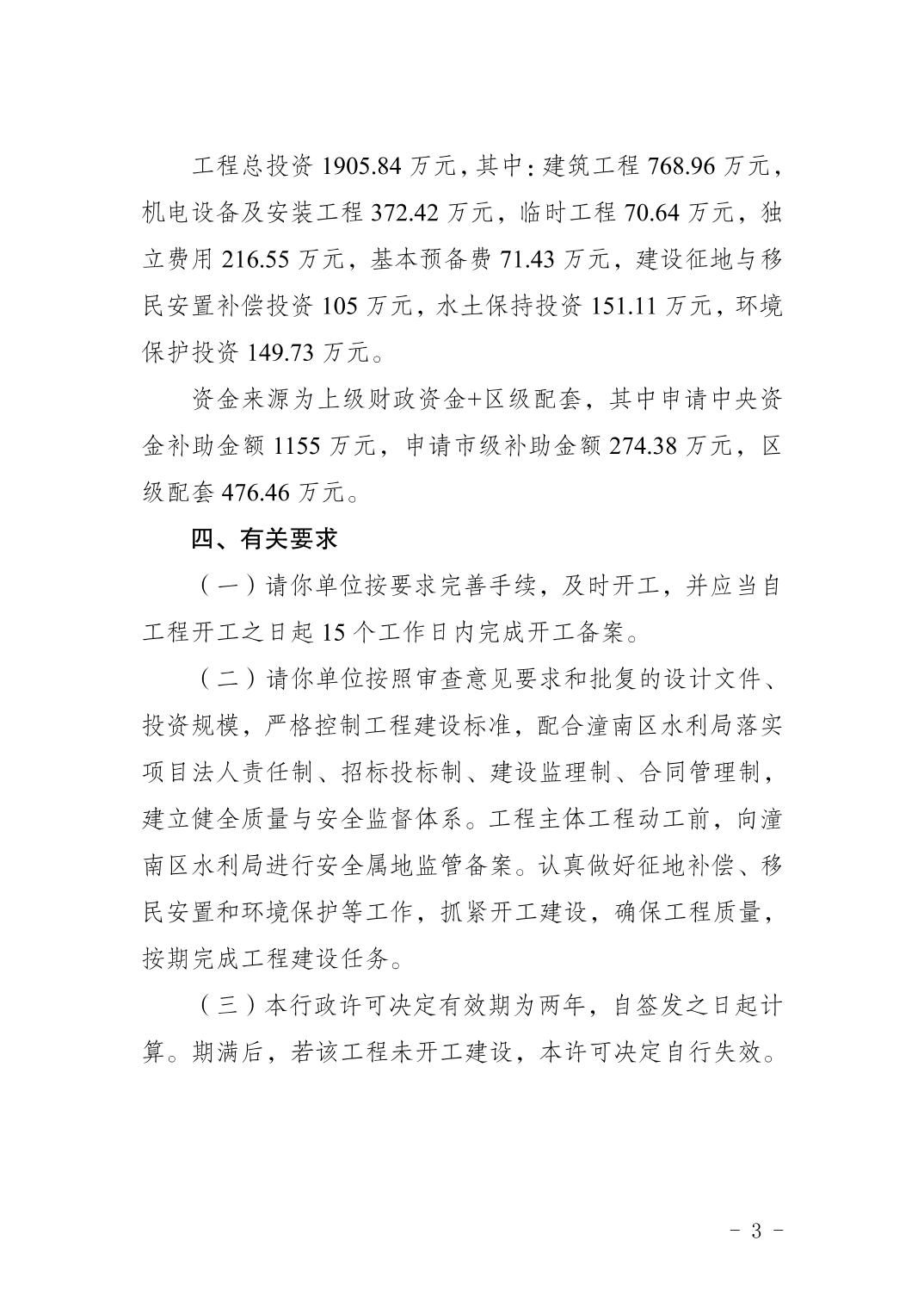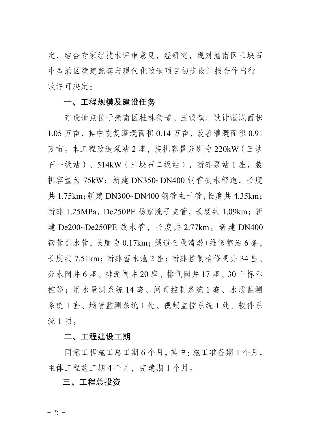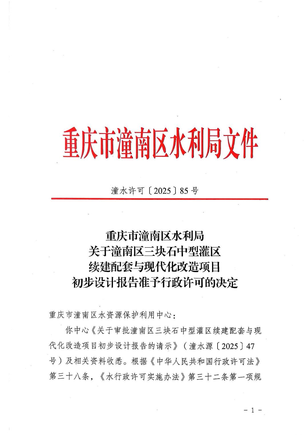 潼水许可〔2025〕85号关于潼南区三块石中型灌区续建配套与现代化改造项目准予行政许可的决定
