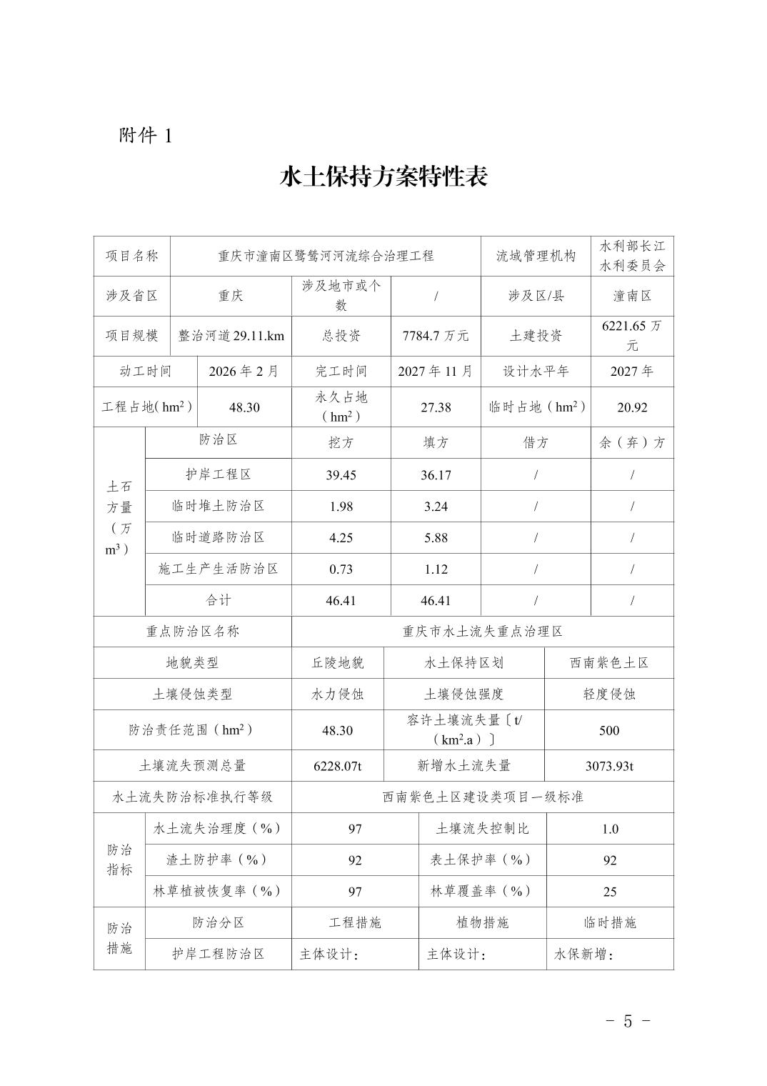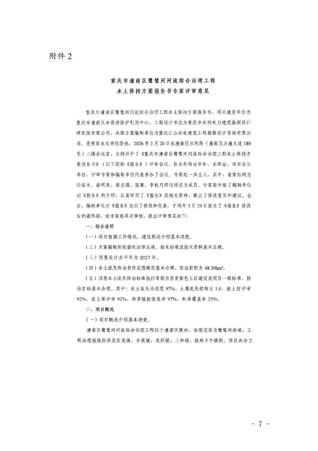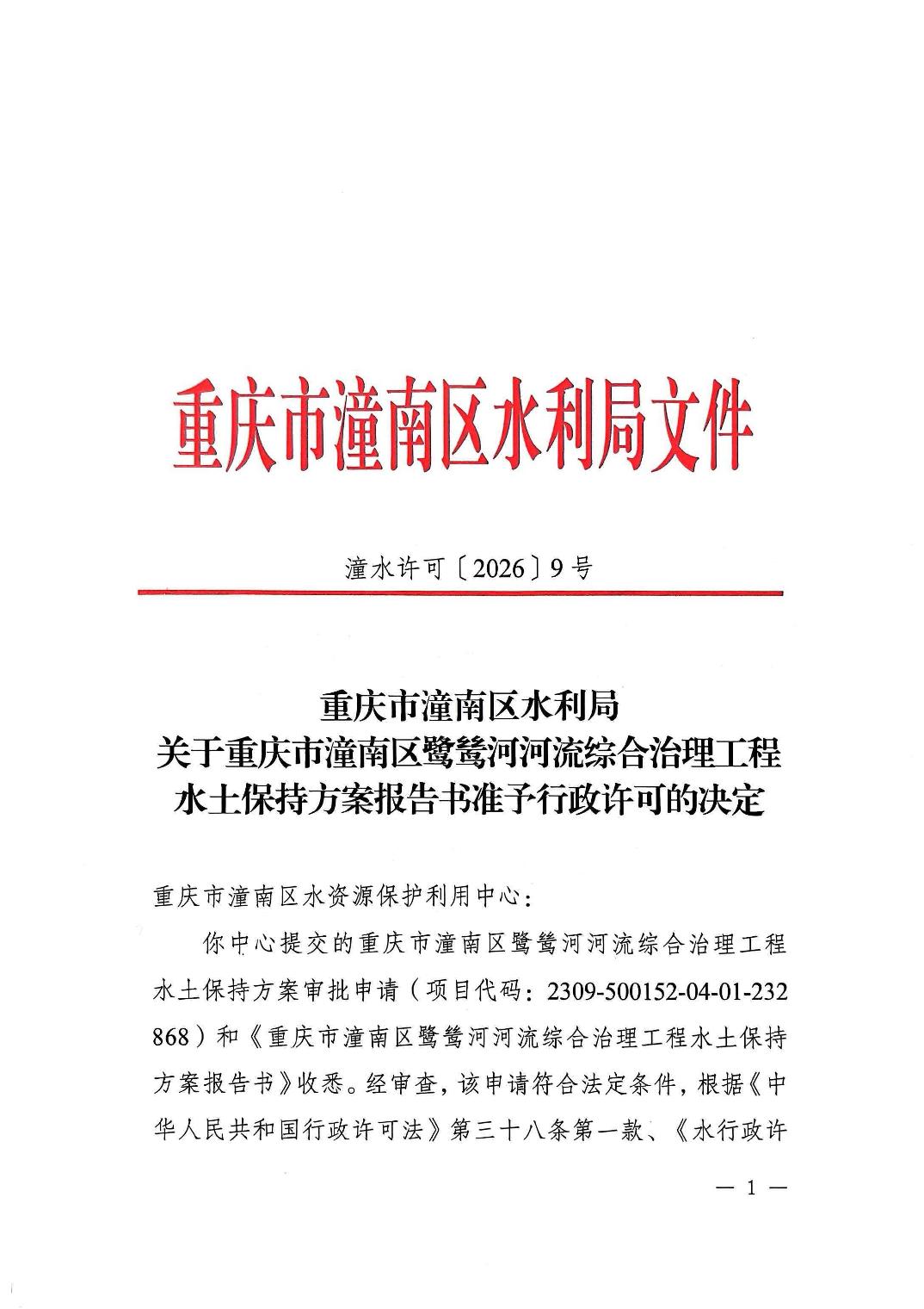 潼水许可〔2026〕9号关于重庆市潼南区鹭鸶河河流综合治理工程水土保持方案报告书准予行政许可的决定