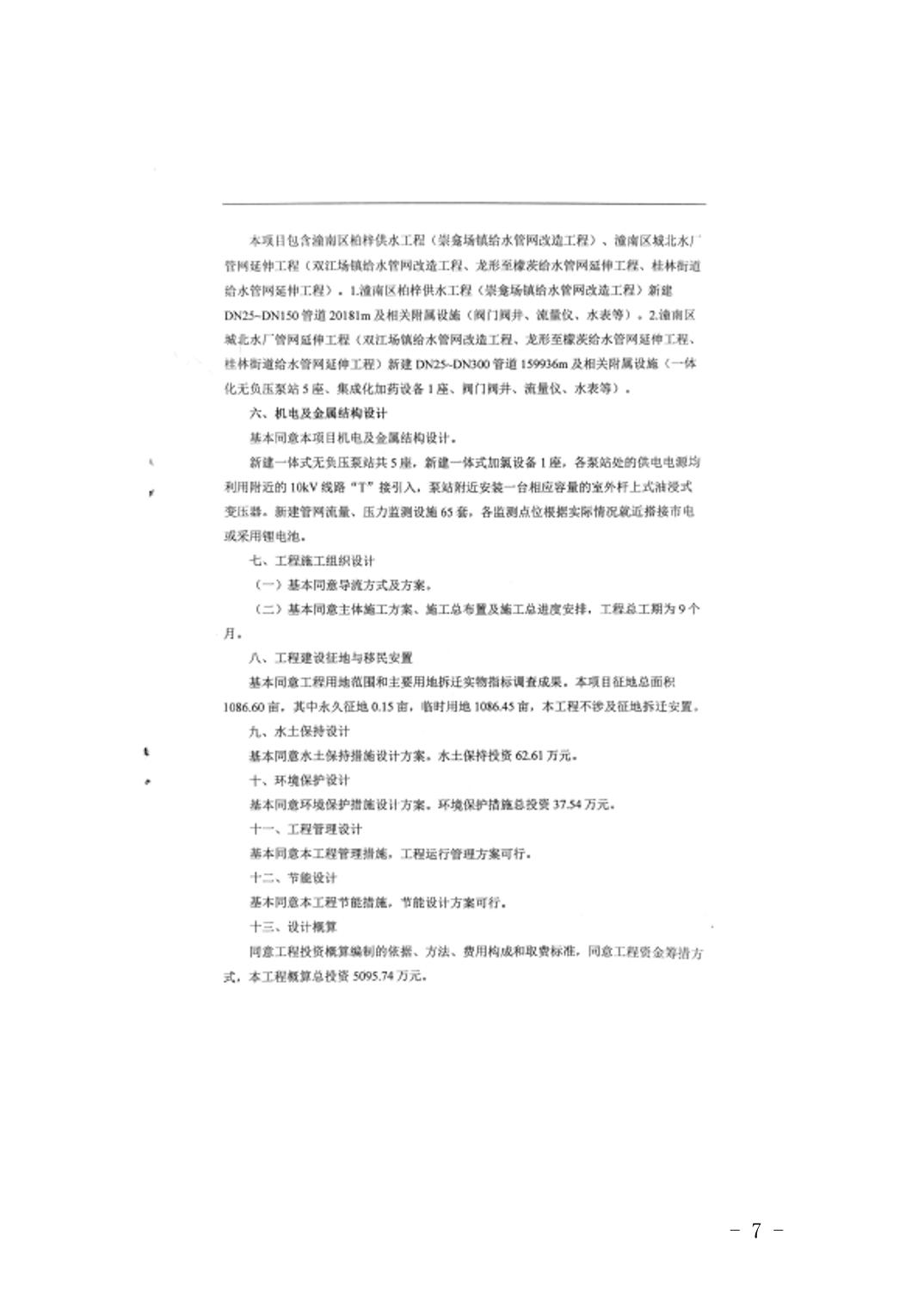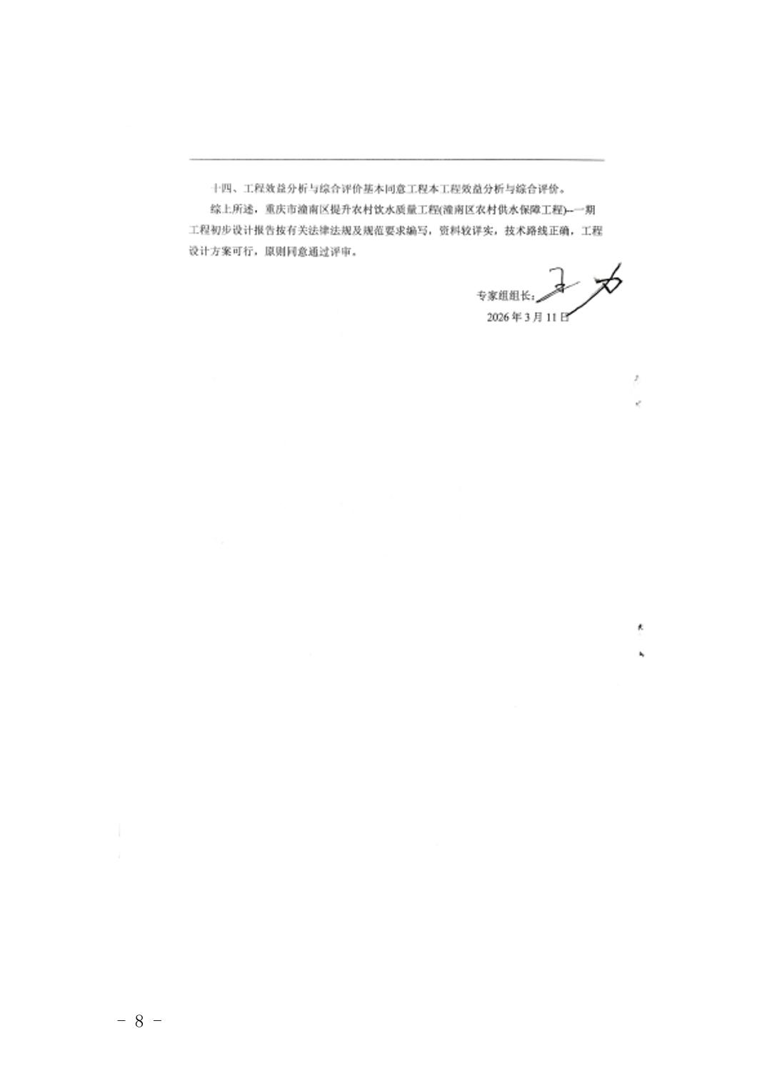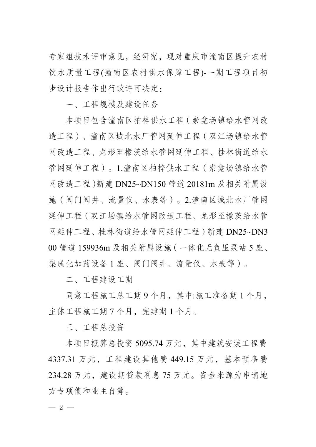 潼水许可〔2026〕11号关于重庆市潼南区提升农村饮水质量工程(潼南区农村供水保障工程)-一期工程项目初步设计报告准予行政许可的决定