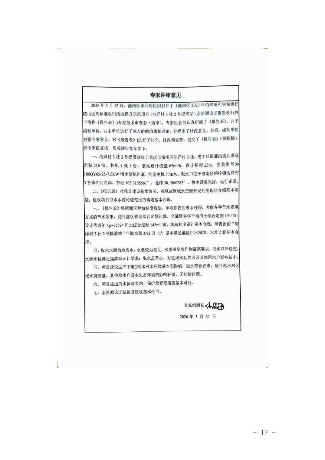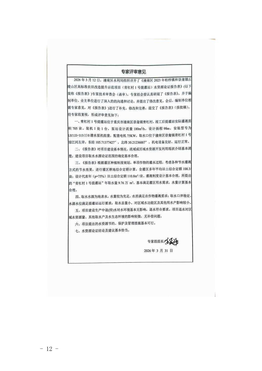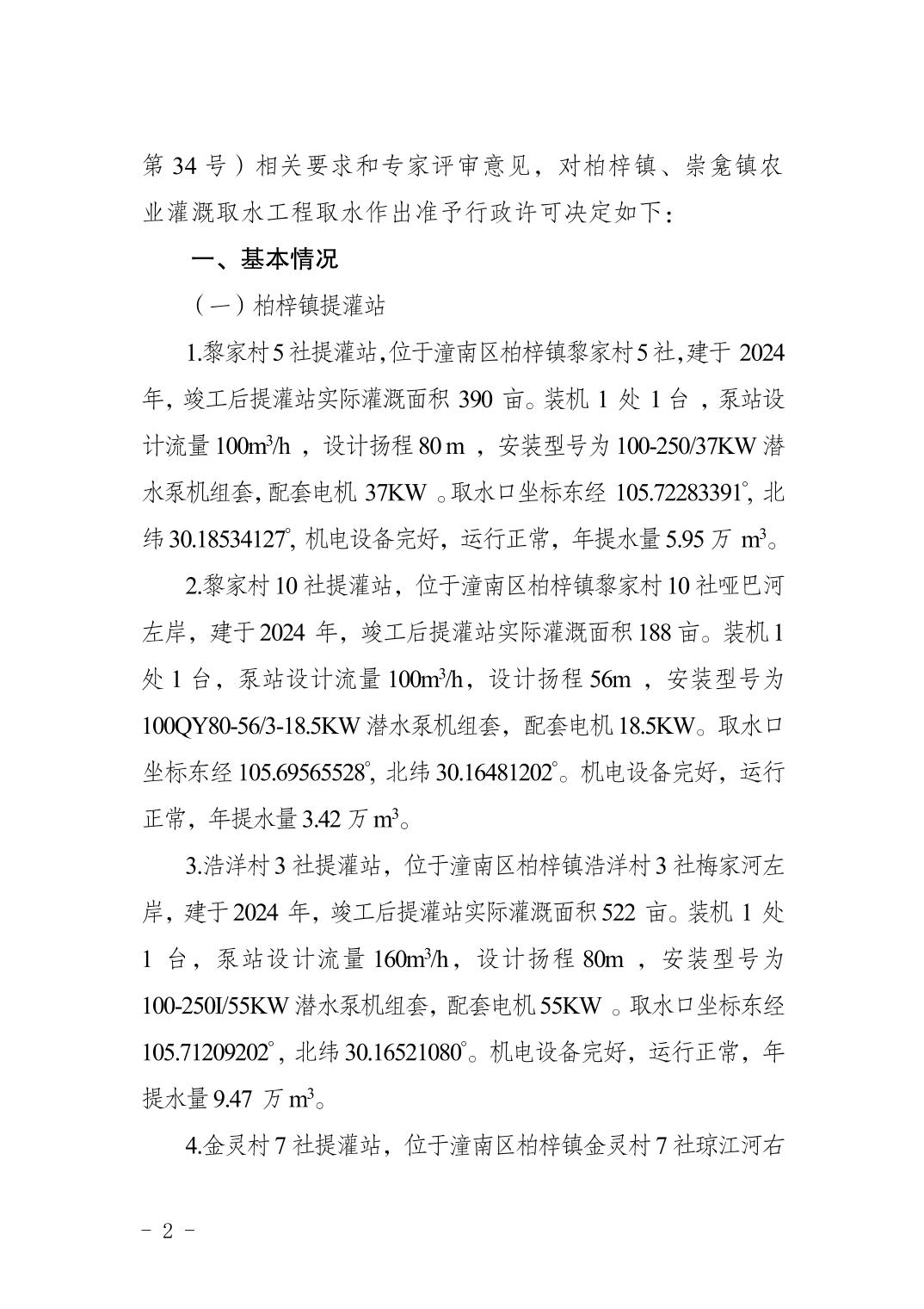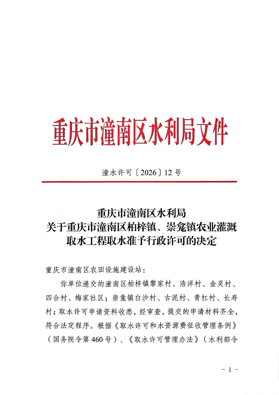 潼水许可〔2026〕12号关于重庆市潼南区柏梓镇、崇龛镇农业灌溉取水工程取水准予行政许可的决定