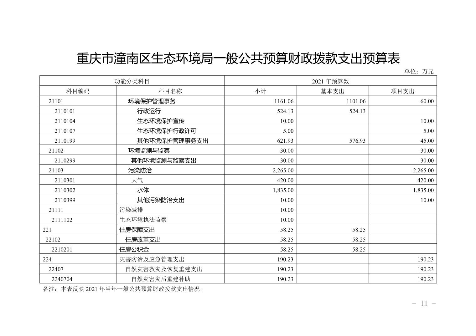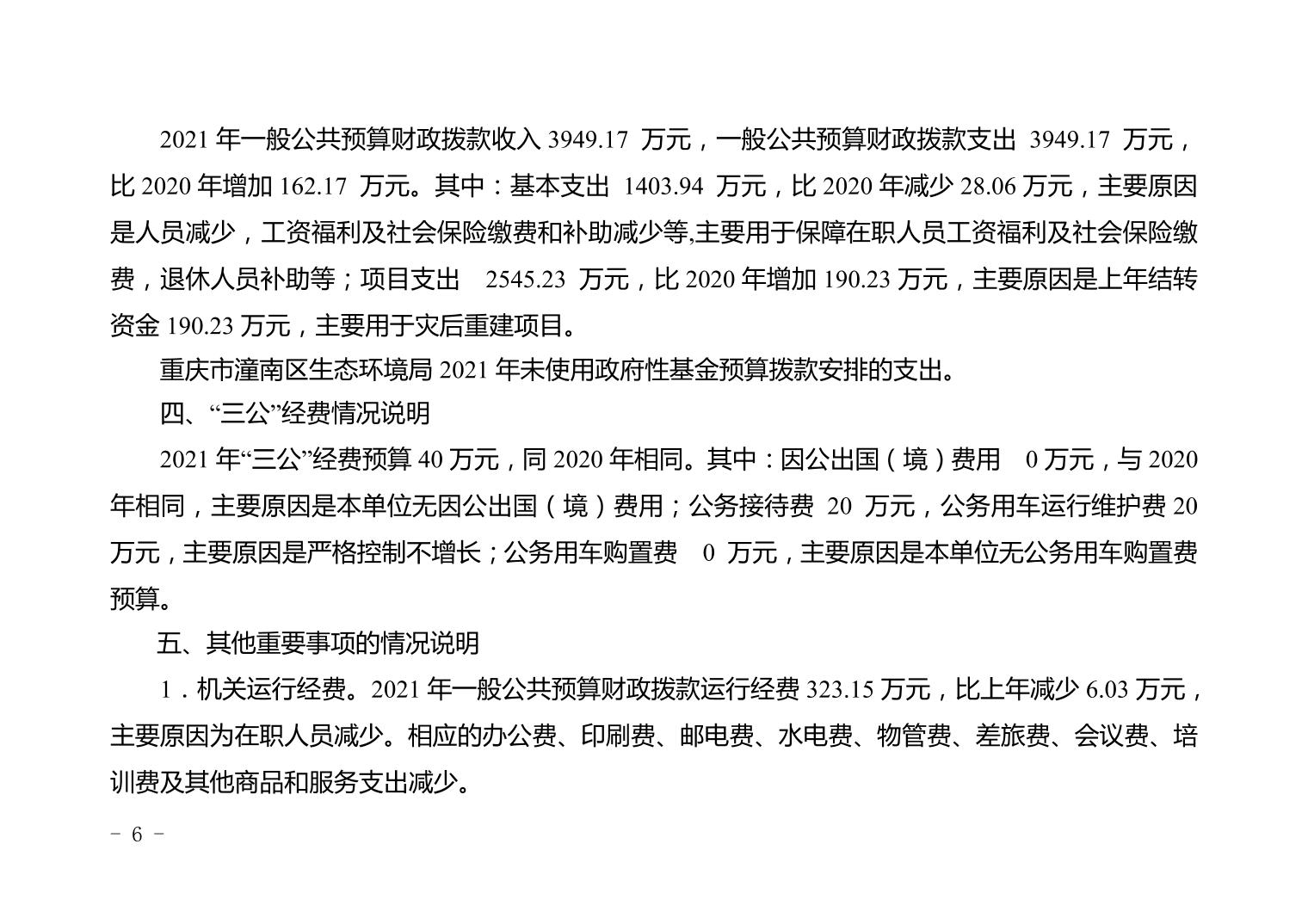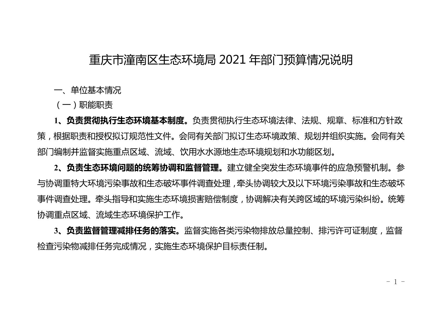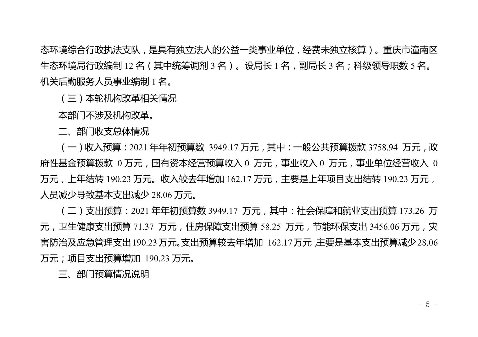 重庆市潼南区生态环境局2021年部门预算公开