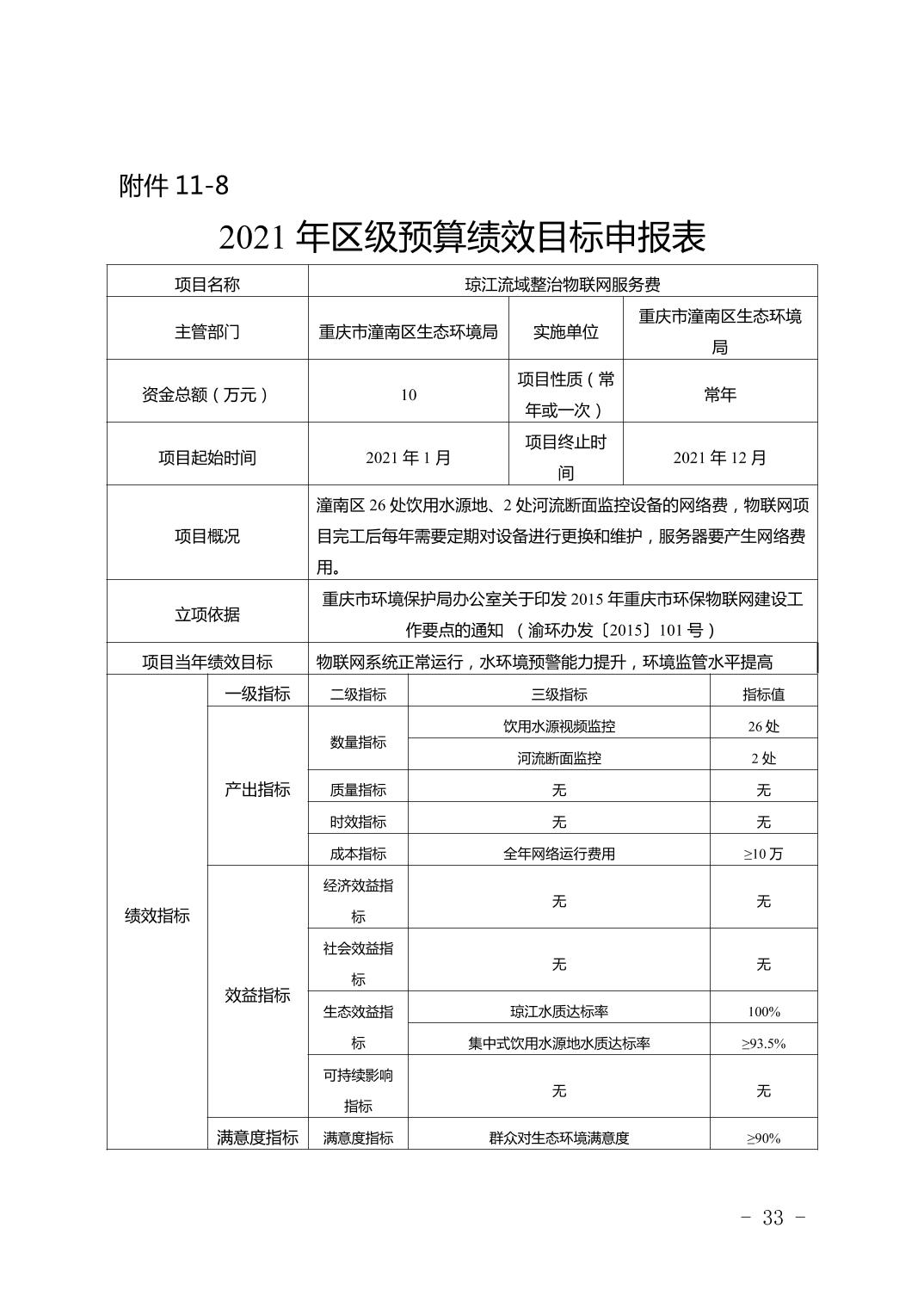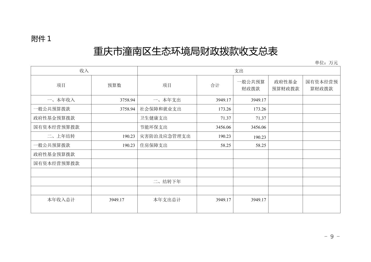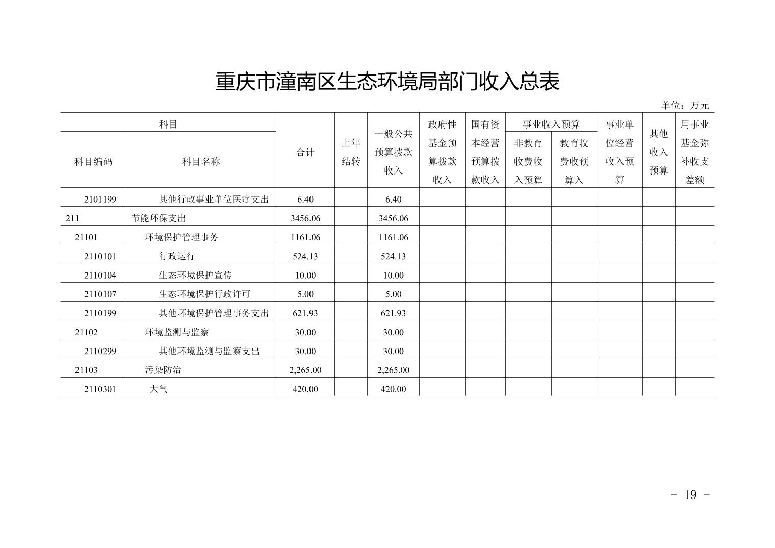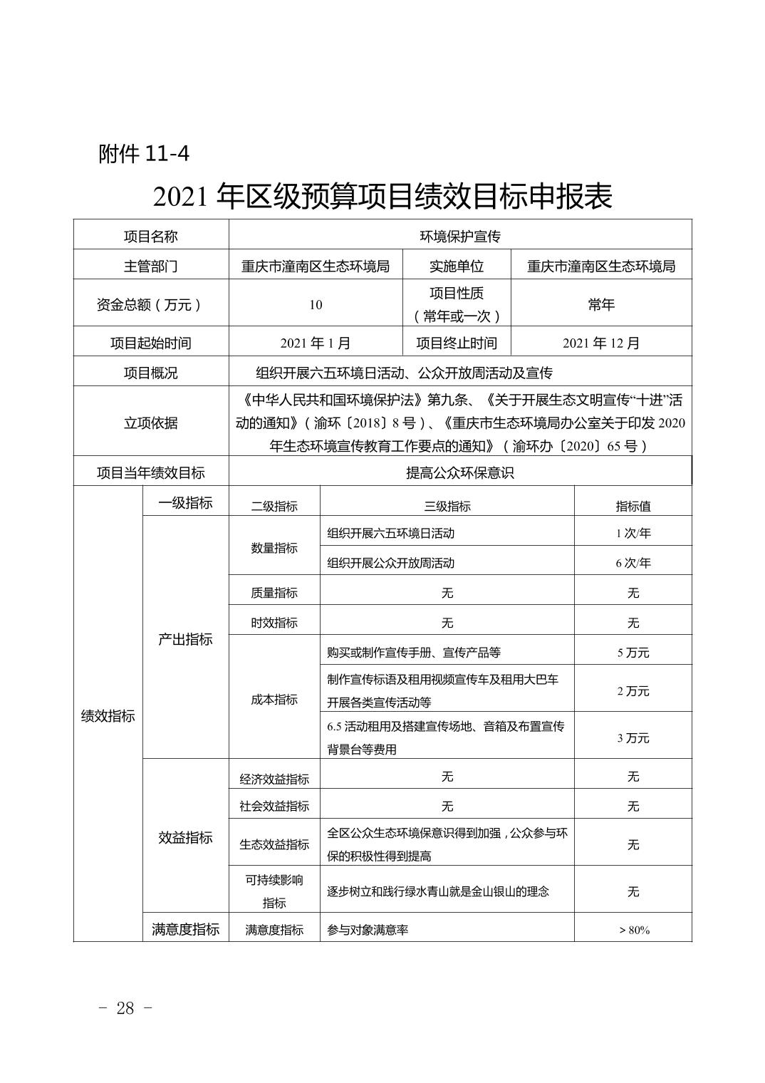 重庆市潼南区生态环境局2021年部门预算公开