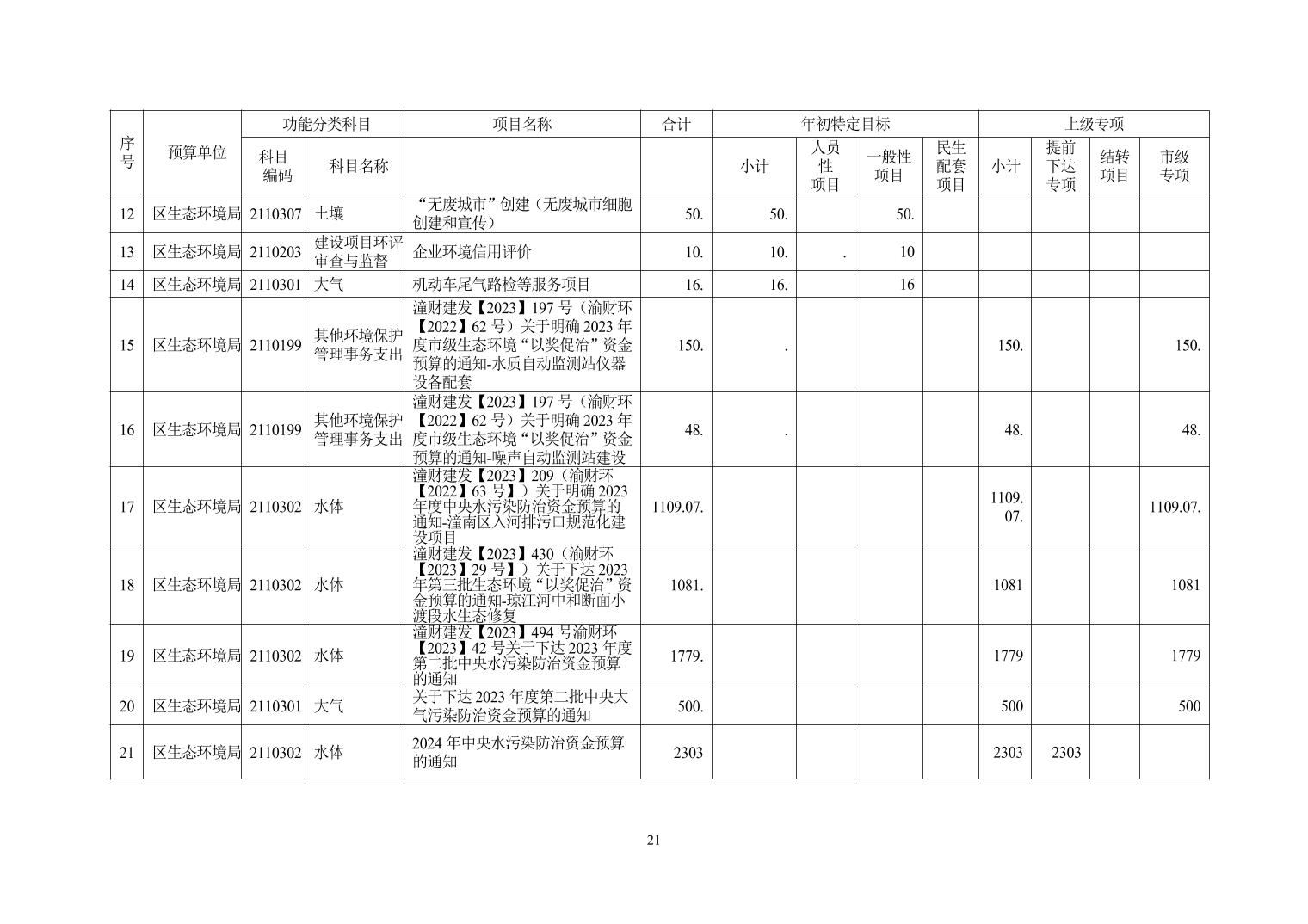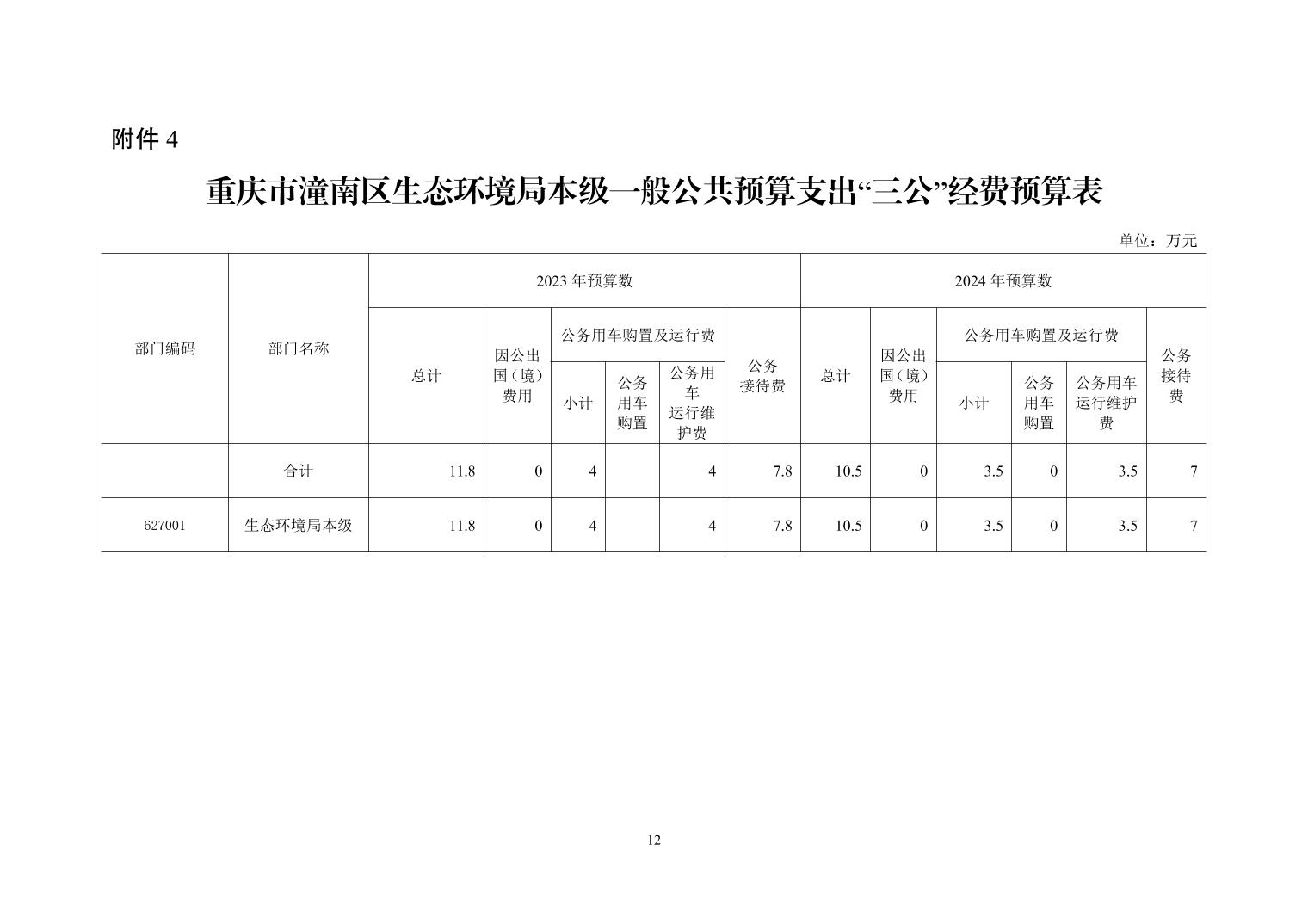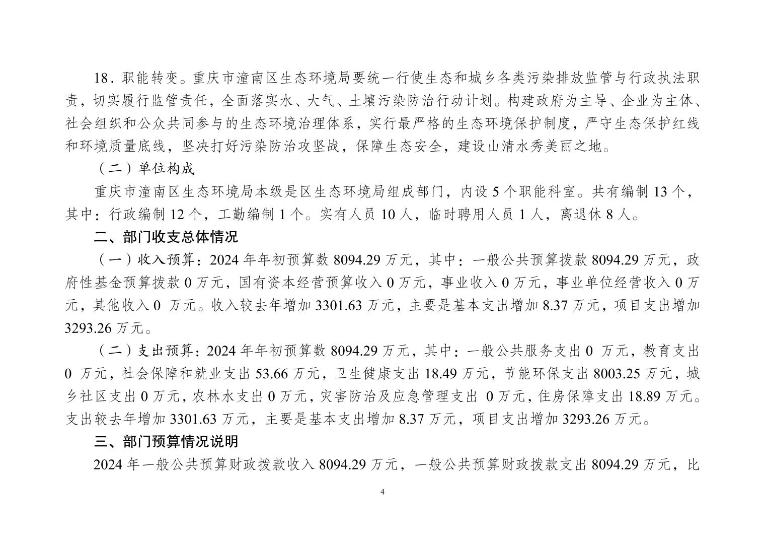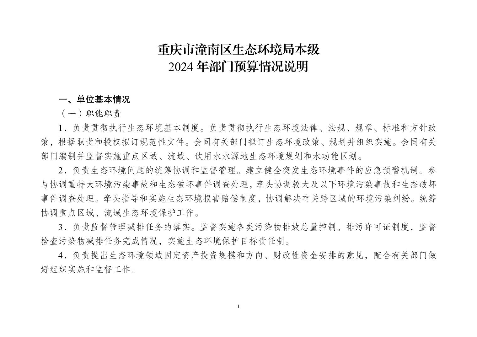 重庆市潼南区生态环境局本级2024年部门预算公开