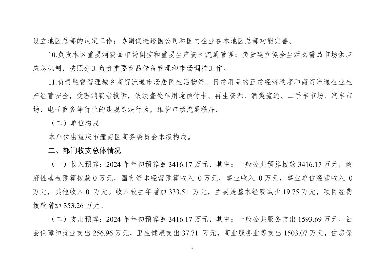 重庆市潼南区商务委员会(本级)2024年部门预算情况说明