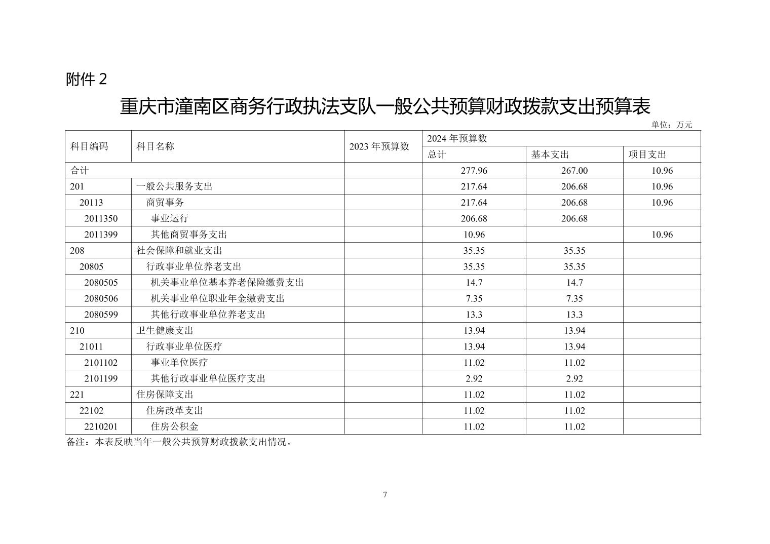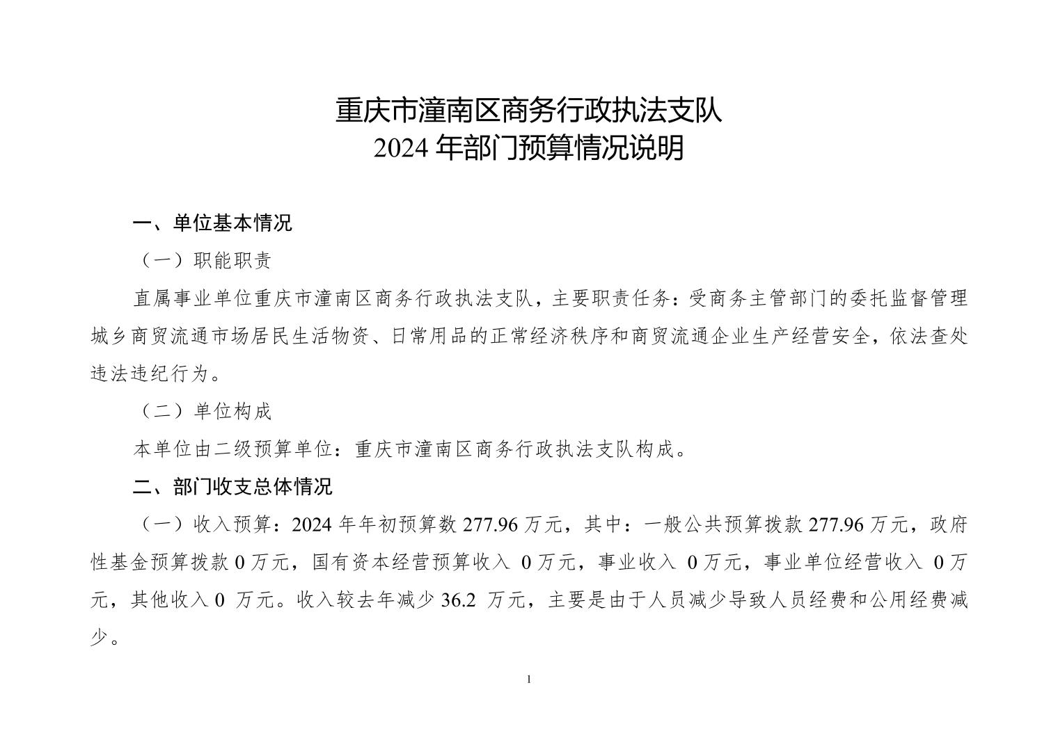 重庆市潼南区商务行政执法支队2024年部门预算情况说明