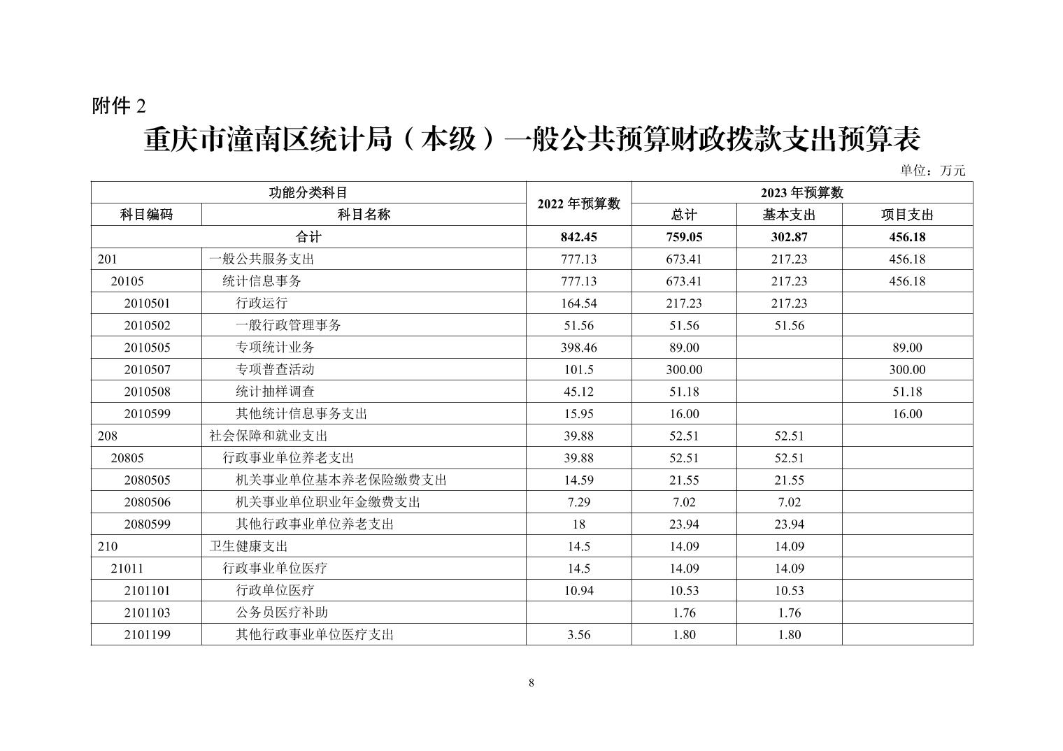 重庆市潼南区统计局(本级)2023年部门预算公开