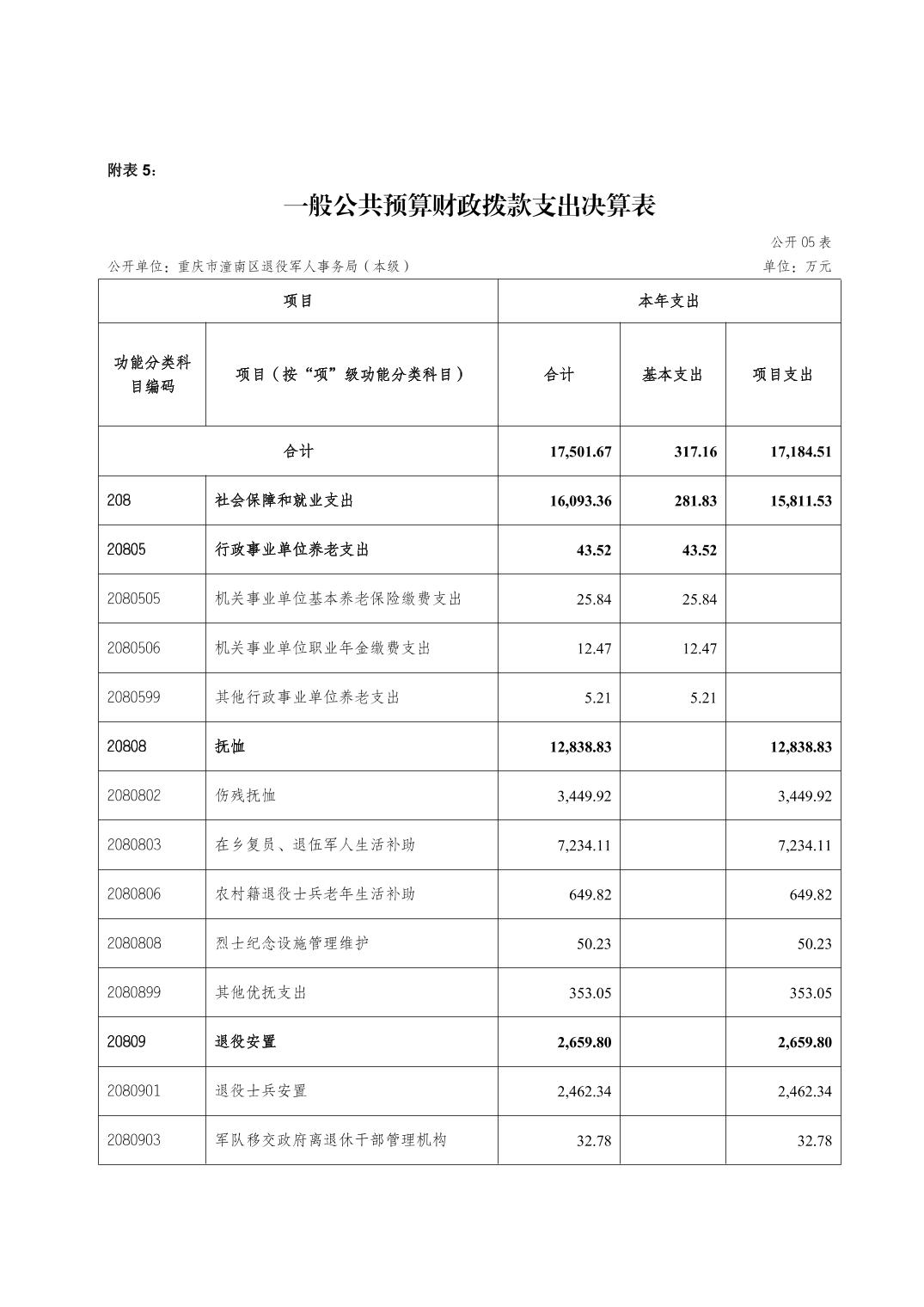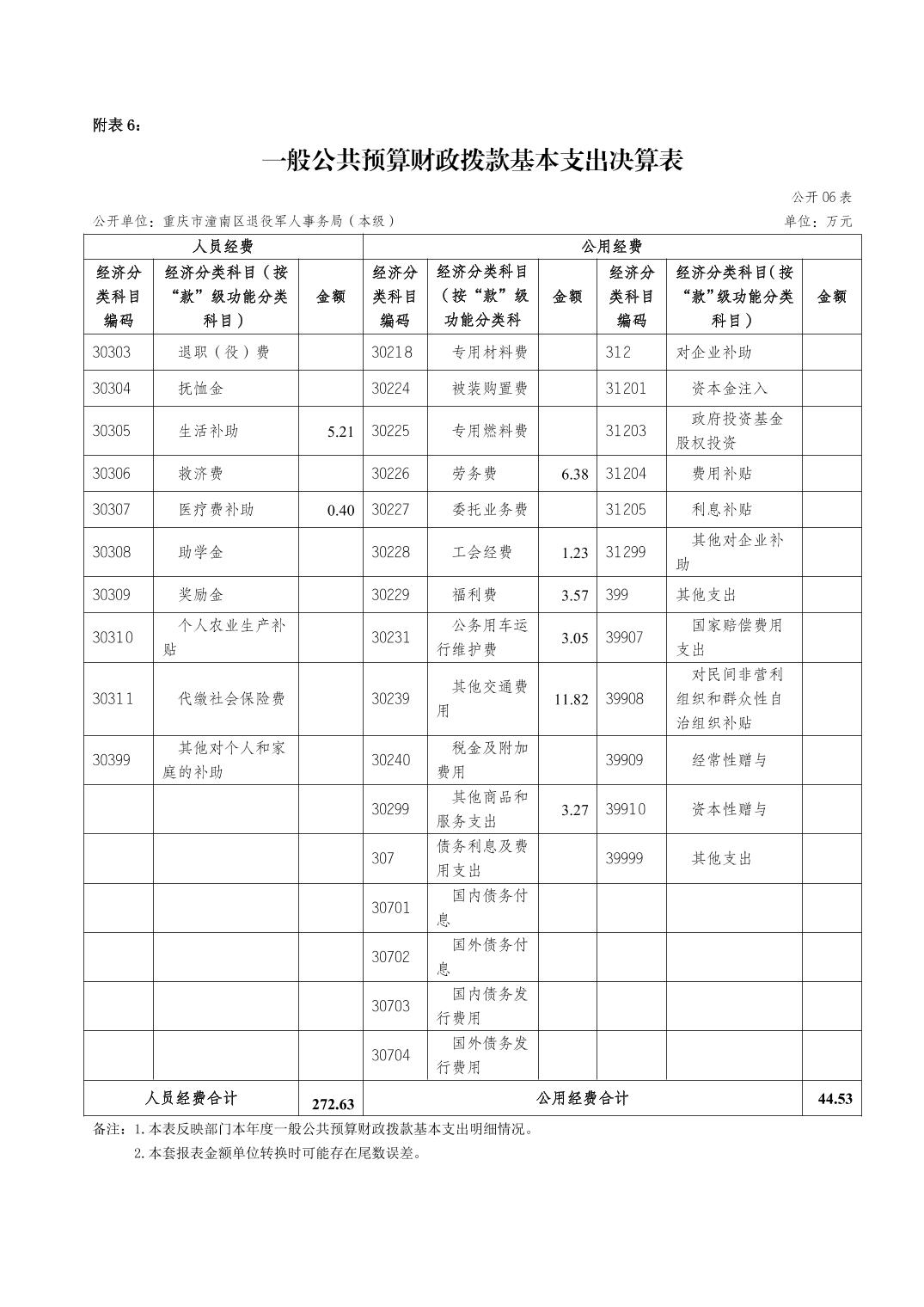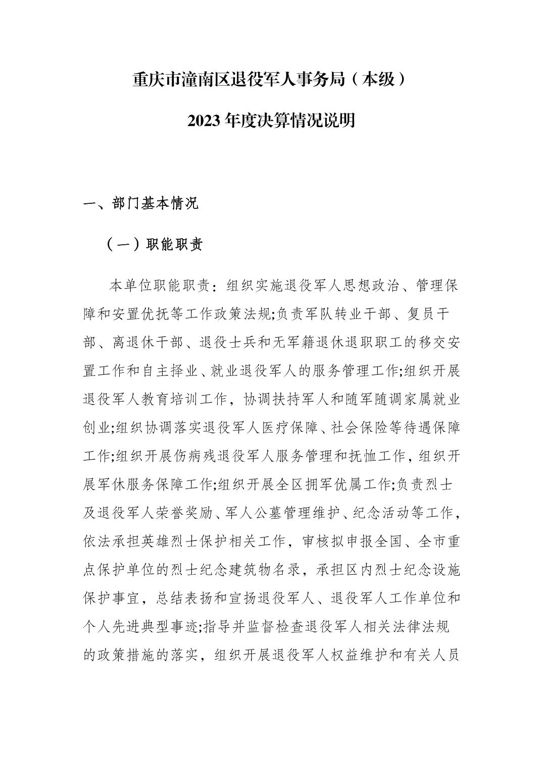 重庆市潼南区退役军人事务局(本级)2023年度部门决算公开