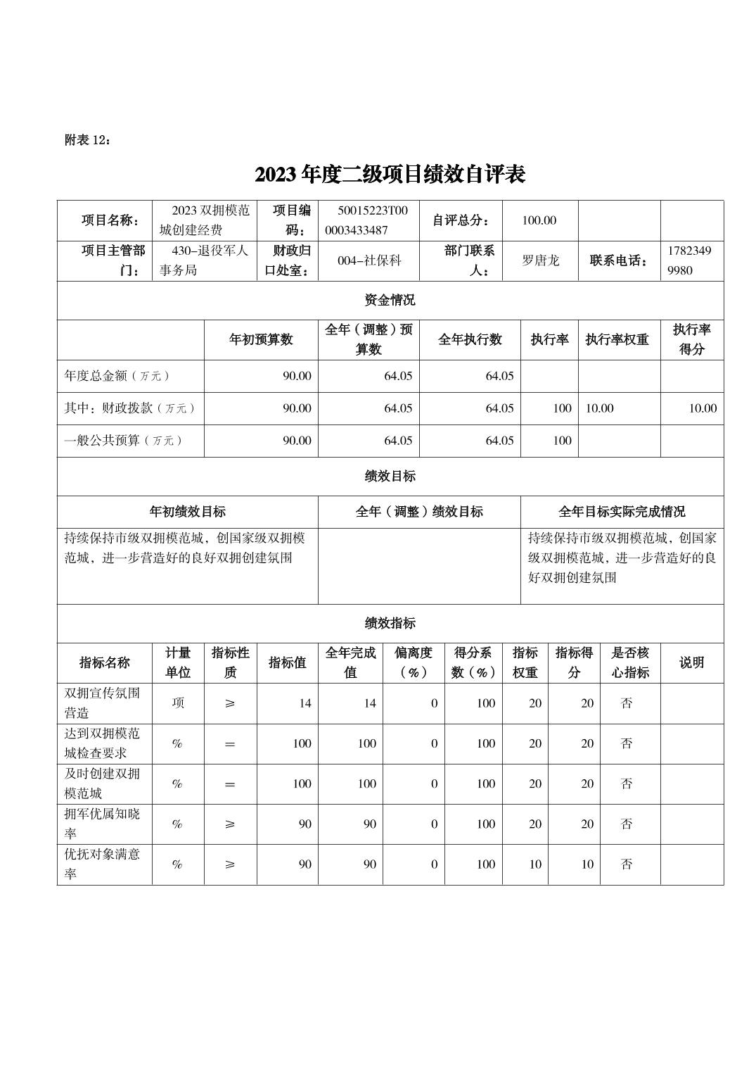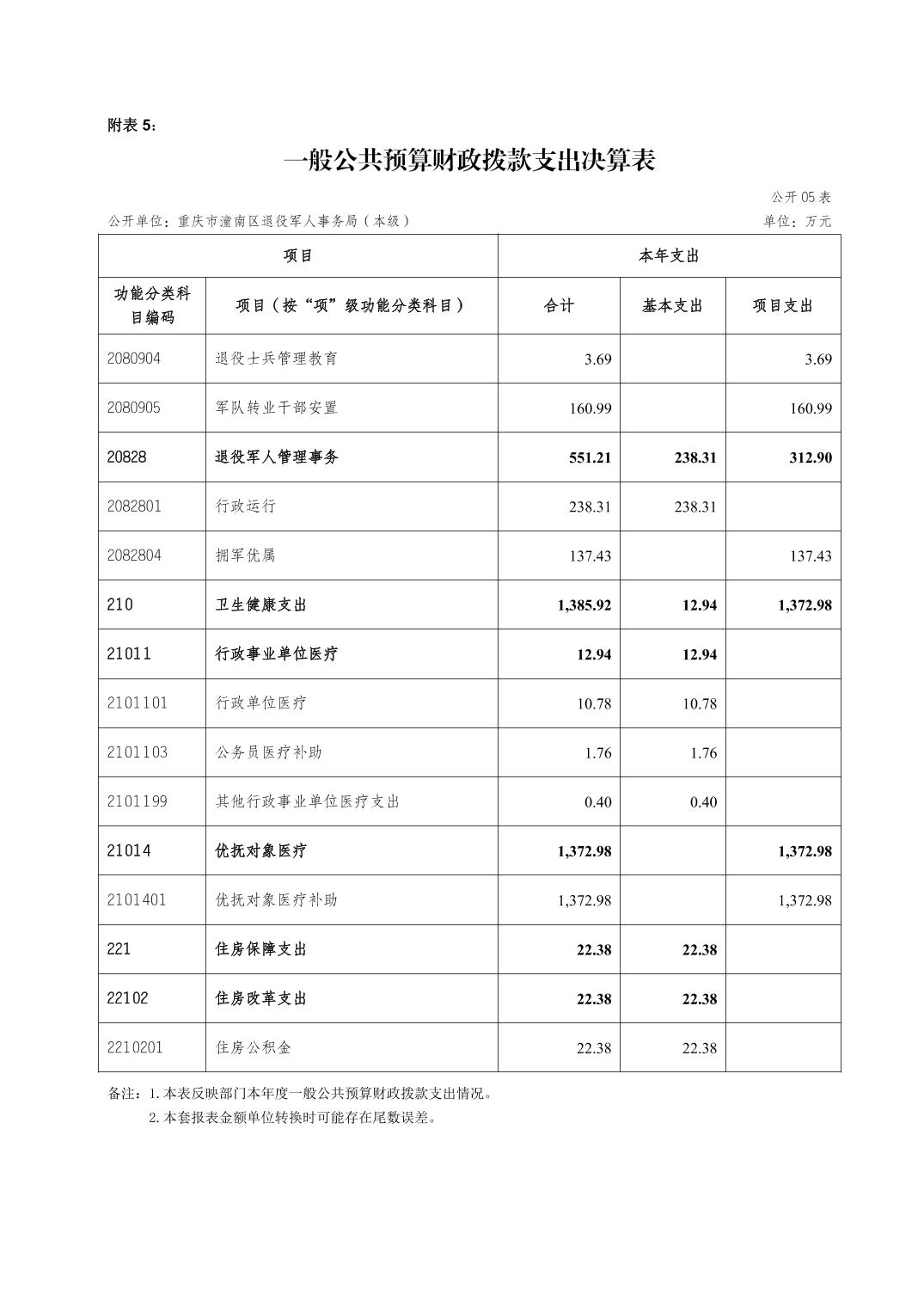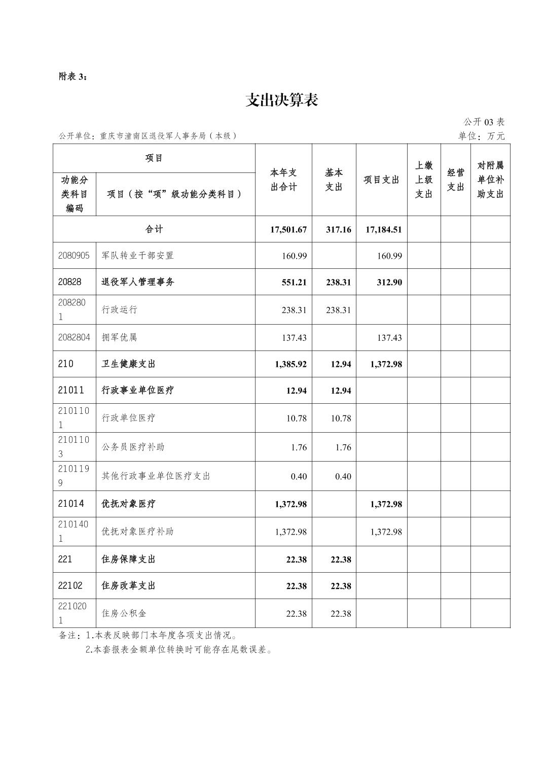 重庆市潼南区退役军人事务局(本级)2023年度部门决算公开