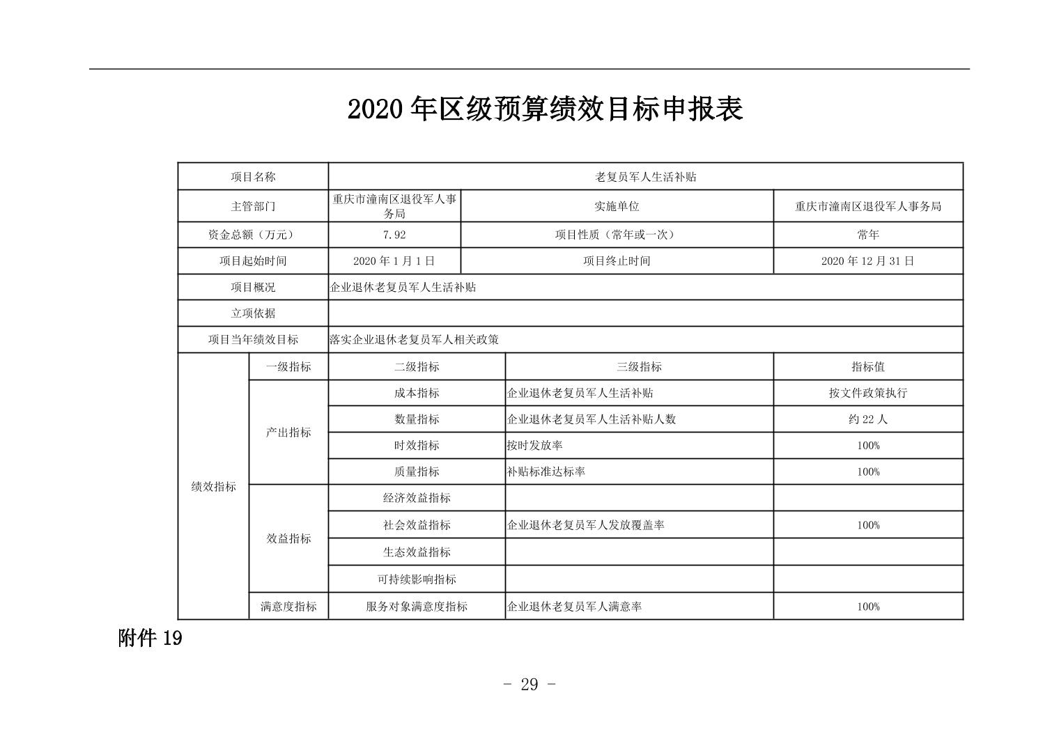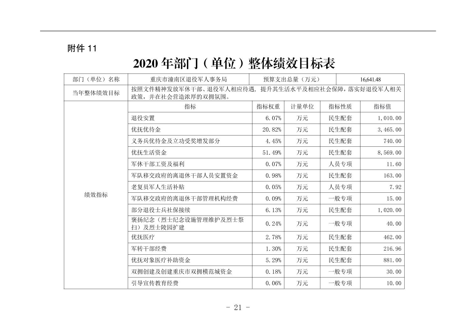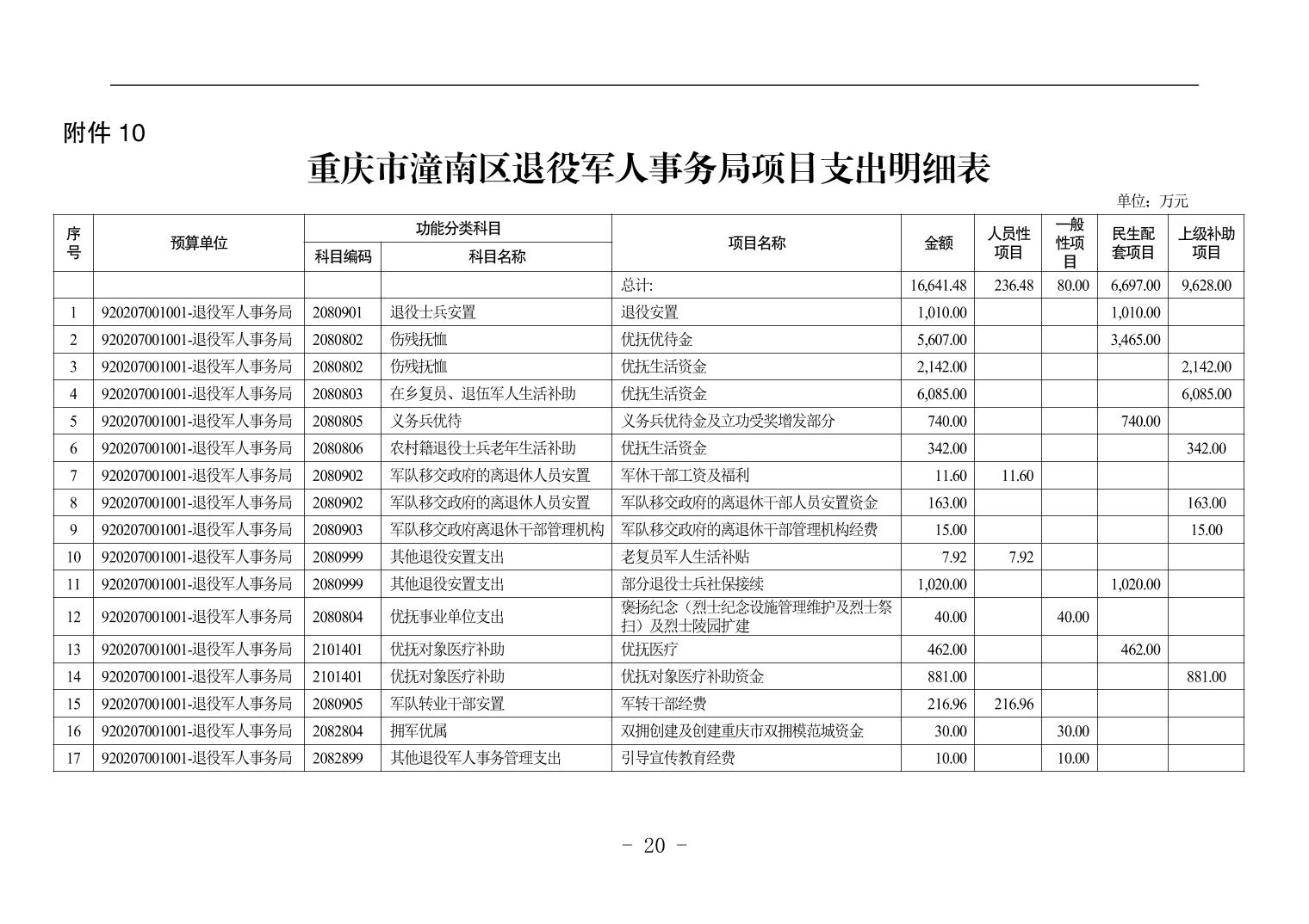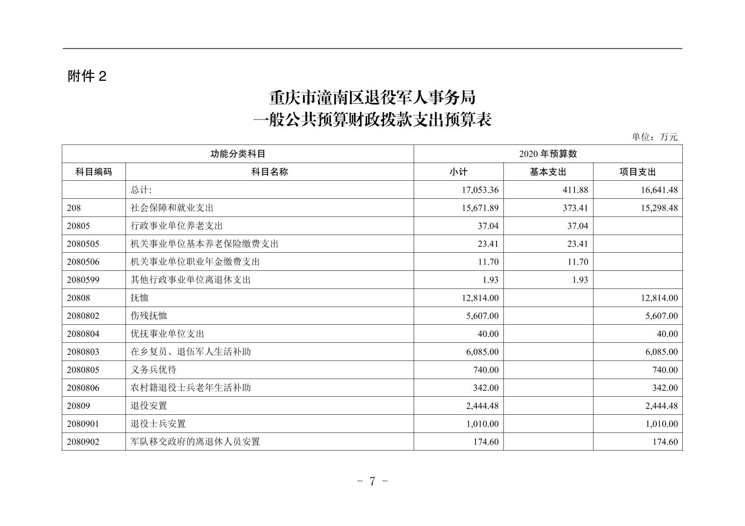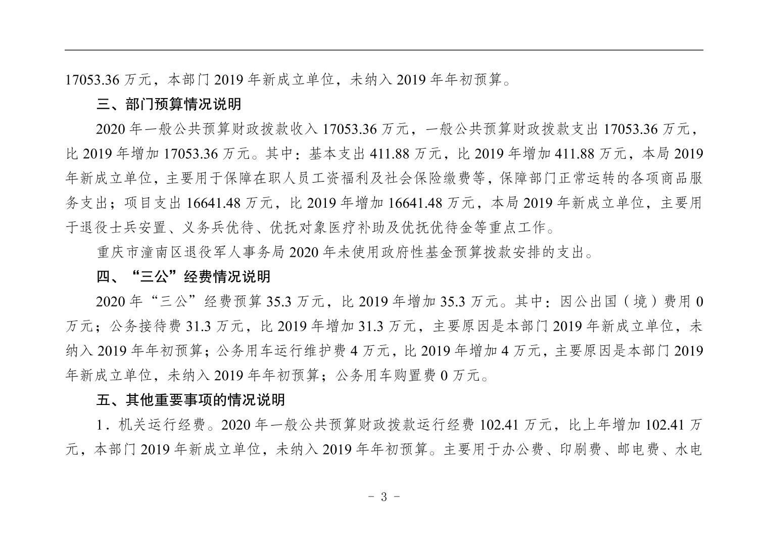 重庆市潼南区退役军人事务局2020年部门预算公开