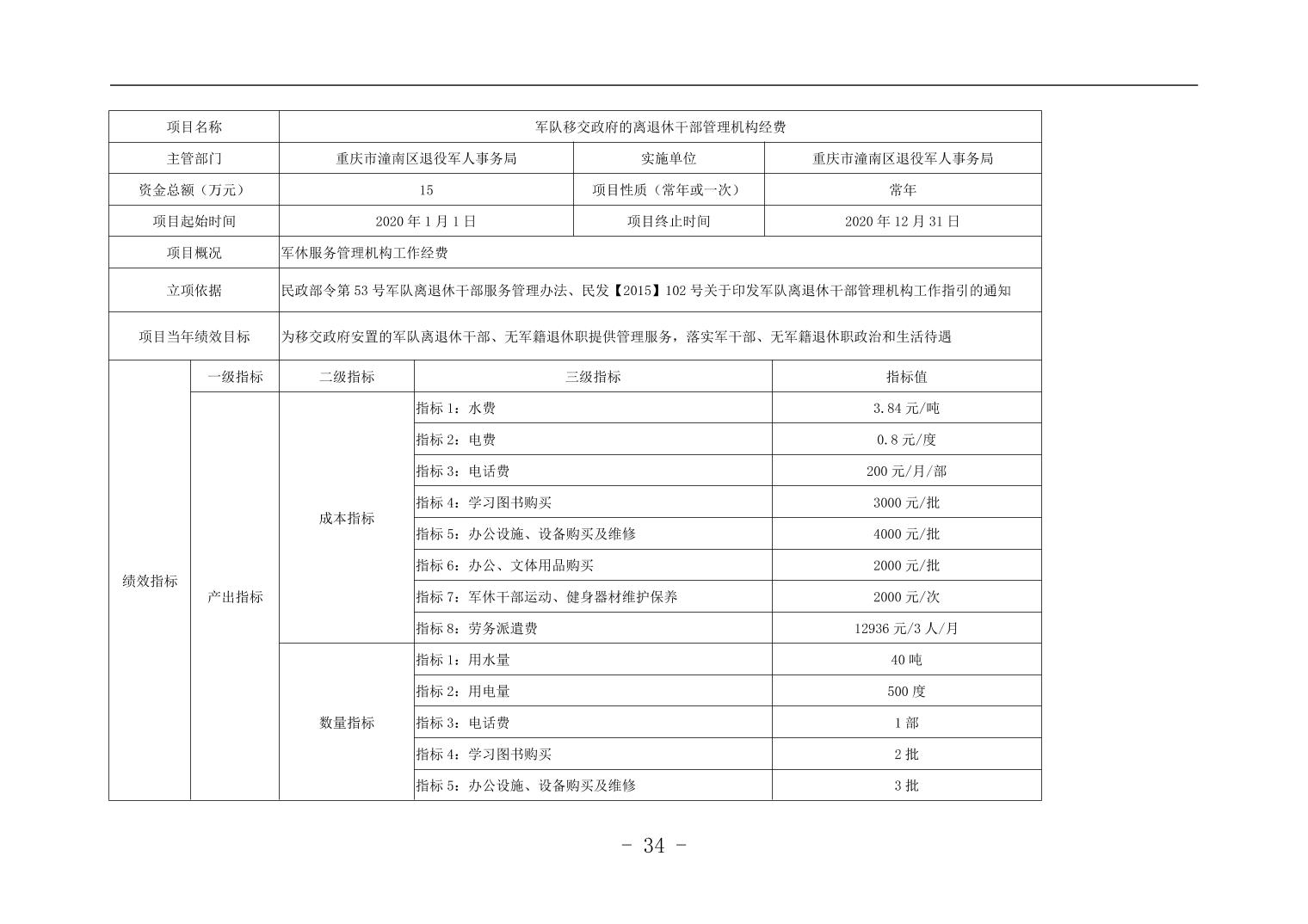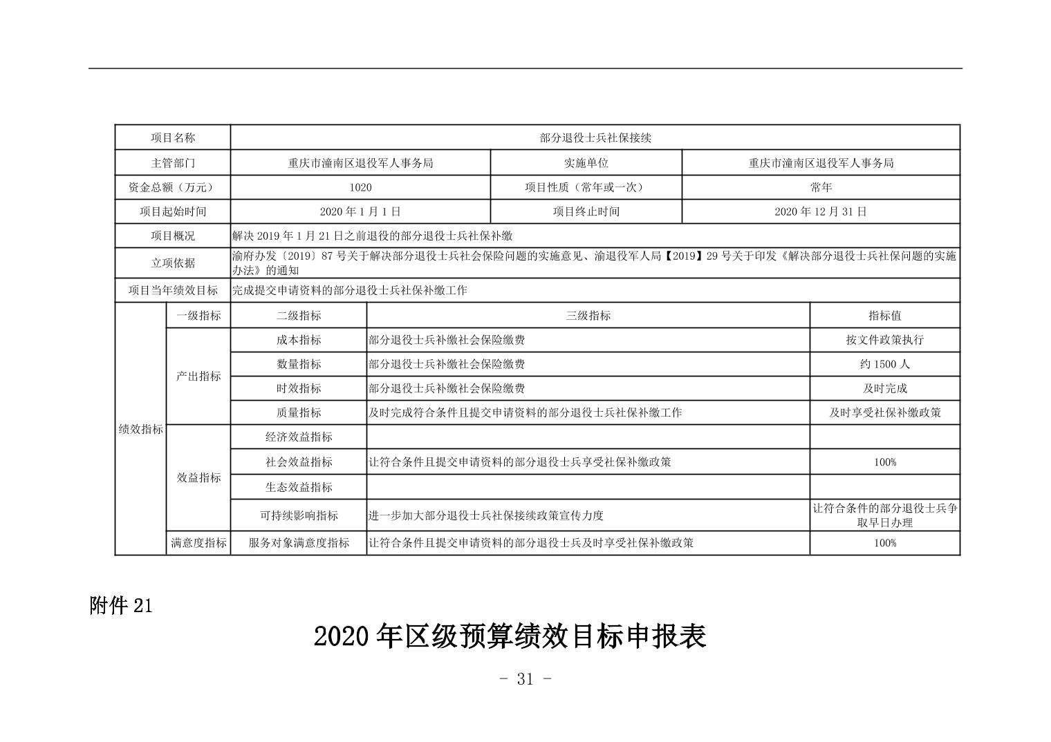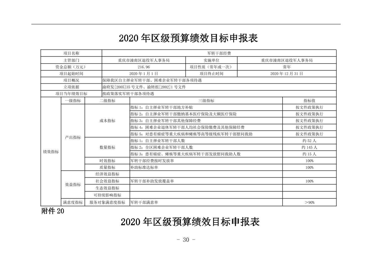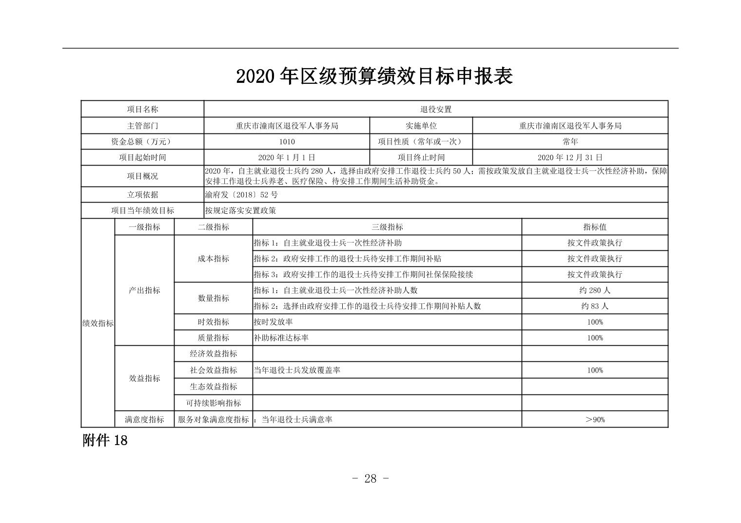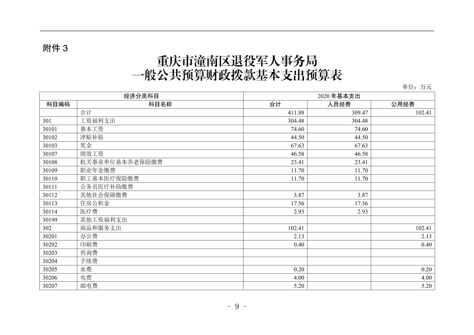 重庆市潼南区退役军人事务局2020年部门预算公开